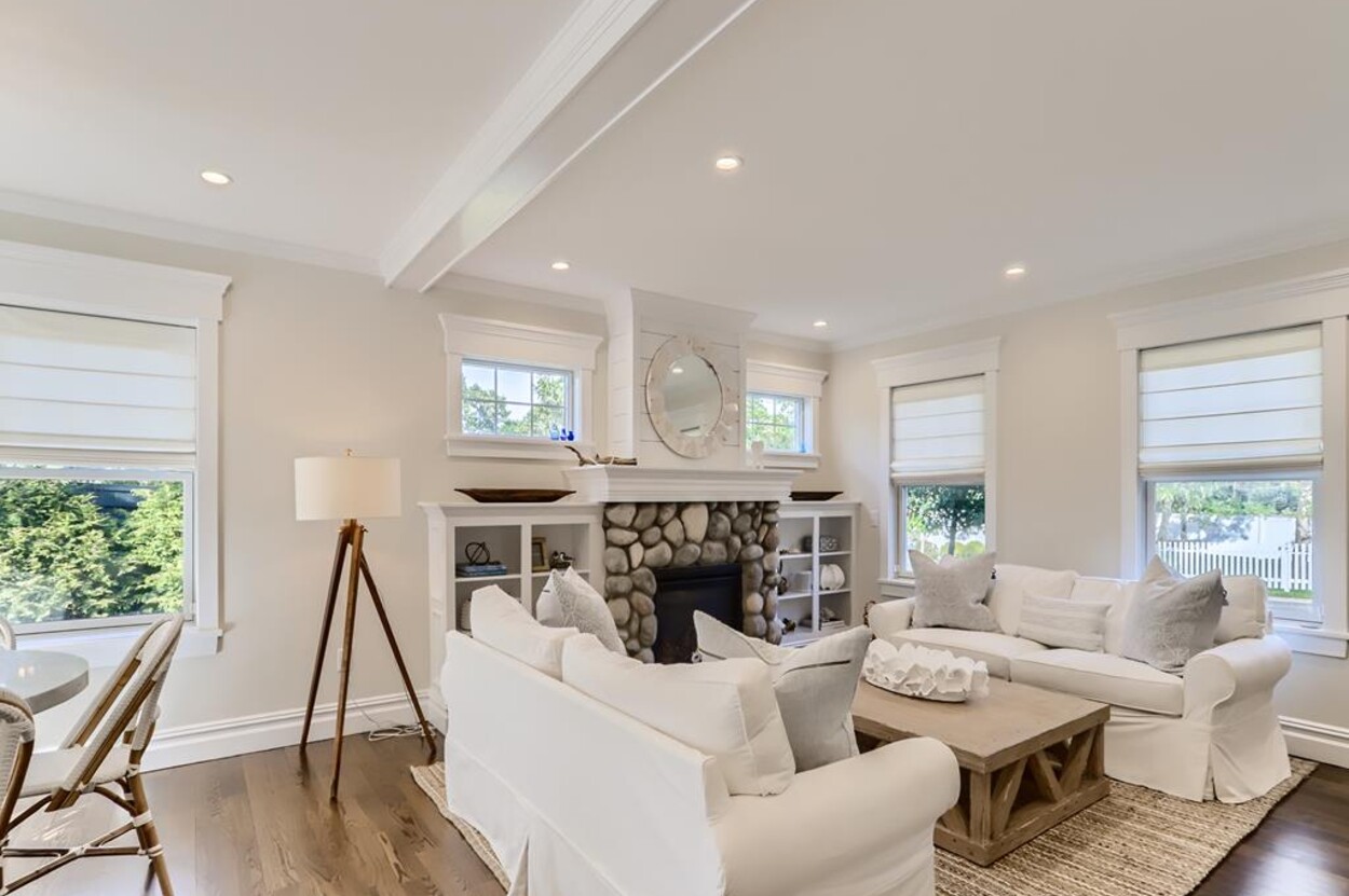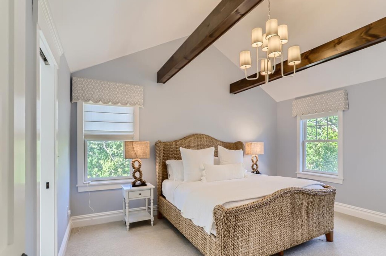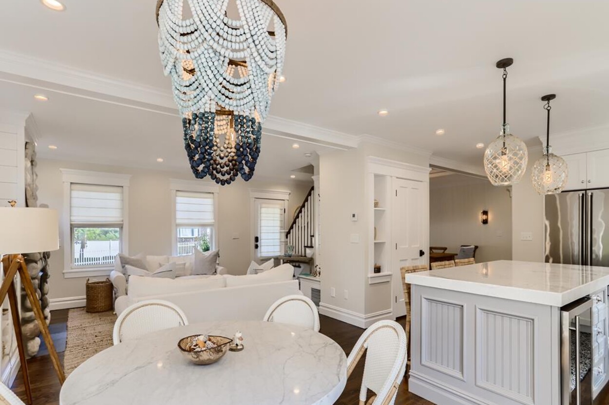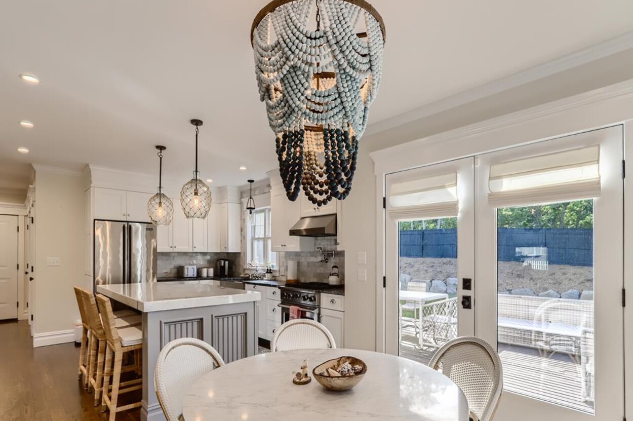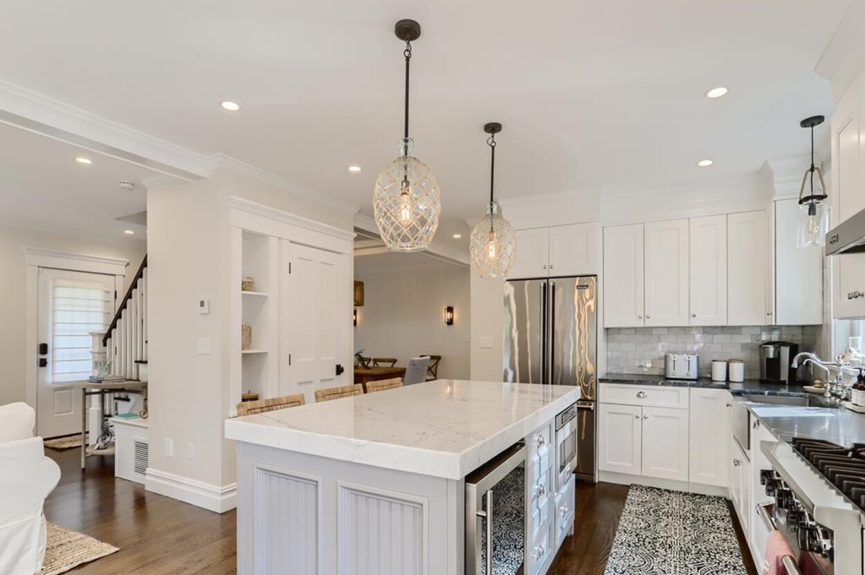 Close to town, this newly constructed Edgartown home offers gracious, elegant summer living. Professionally decorated with an open and spacious first floor featuring a chef s kitchen with Carrara marble and Viking appliances, a formal dining space, powder room, laundry and inviting living room with a gas fireplace. French doors off the kitchen open to a back deck, perfectly set up for outdoor entertaining. The large fenced backyard and outdoor shower are off the furnished deck. The second floor has a large primary bedroom with king sized bed and private ensuite bathroom, in addition there are two generous guest bedrooms, one with an ensuite bath, the other uses the well appointed hall bathroom. The second floor also offers a cozy TV space. Half a mile to Sengekontacket, boat launch & short drive or bike ride to downtown and State or South Beach this is a perfect location for summer visitors looking to enjoy all the best beach fun, shopping, and dining experience that the Vineyard has to offer!