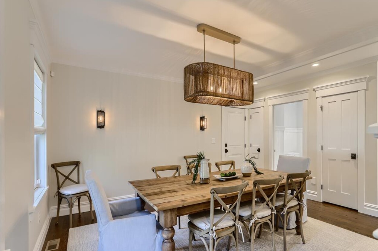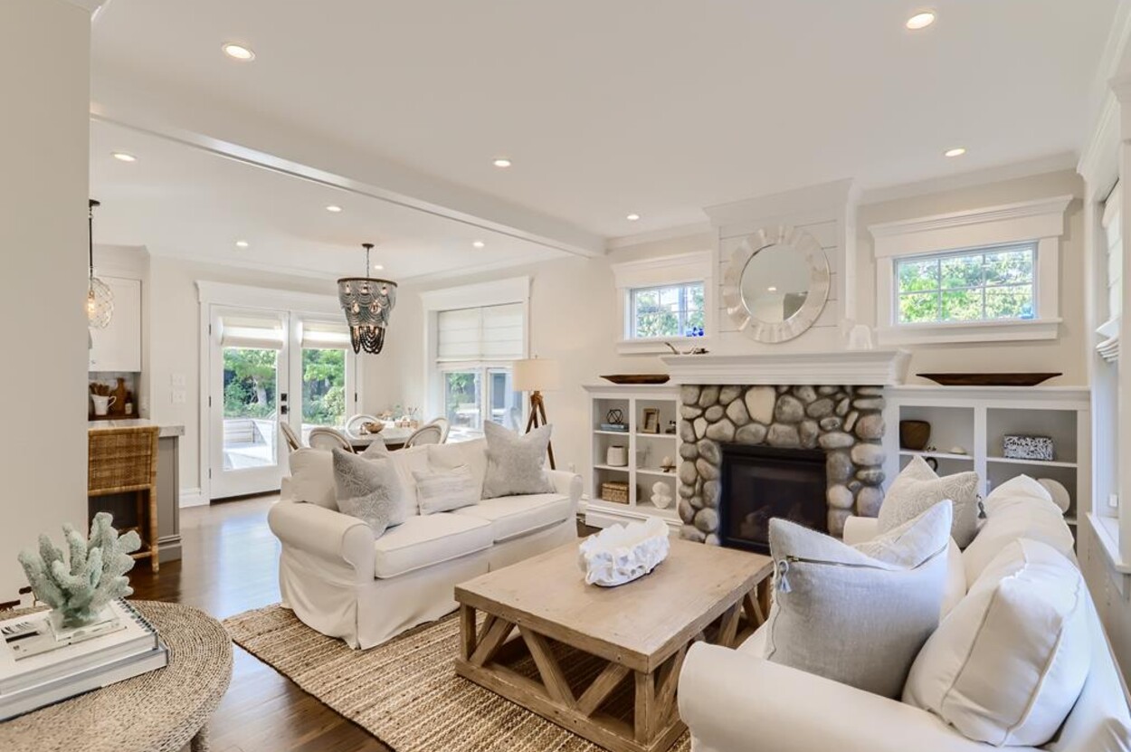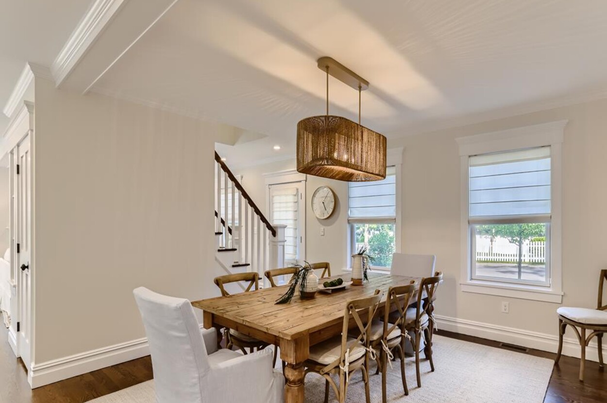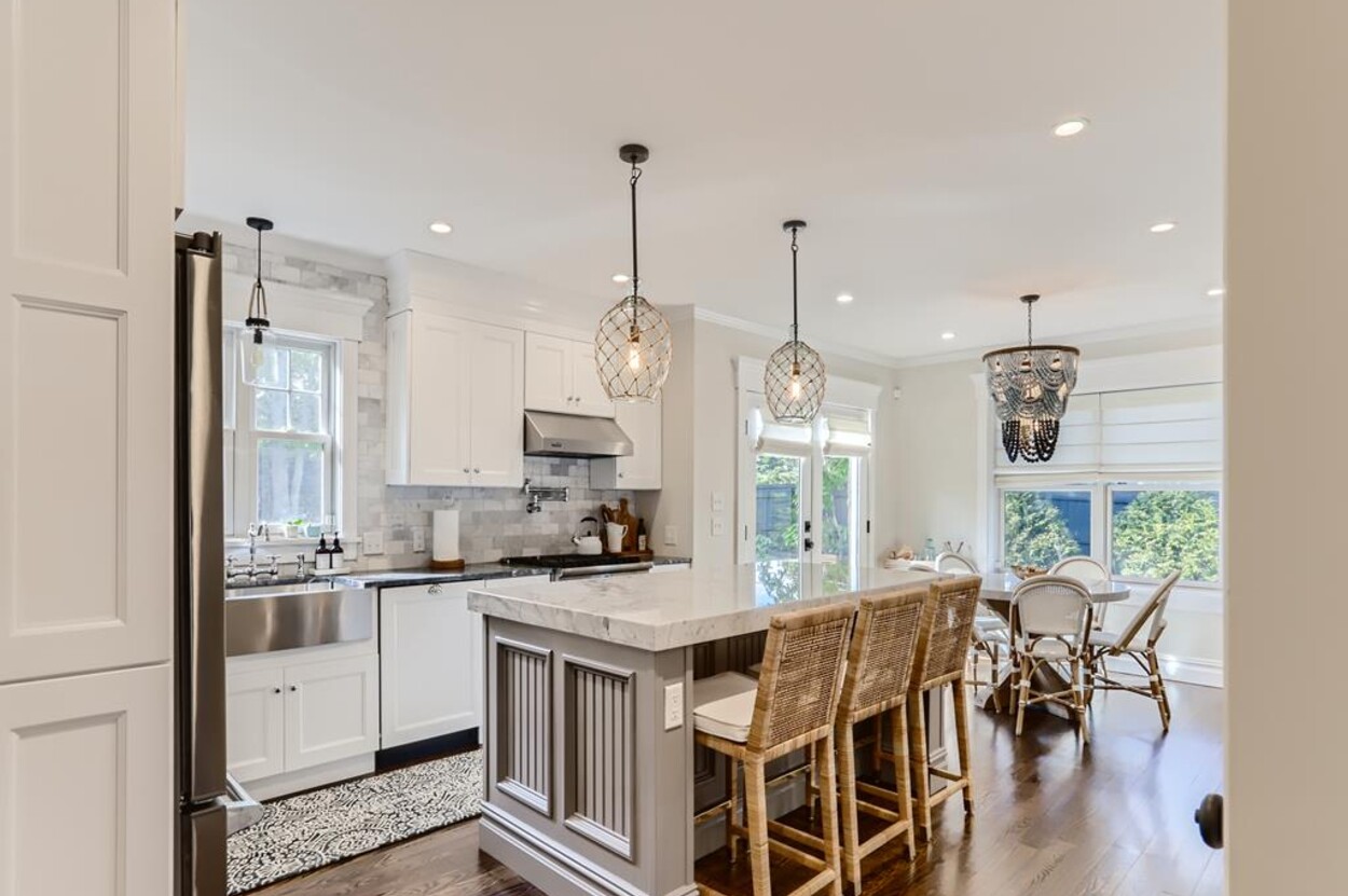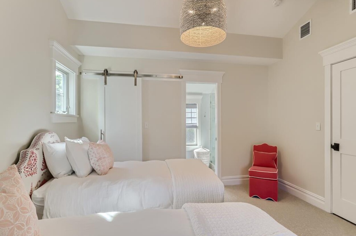 Close to town, this newly constructed Edgartown home offers gracious, elegant summer living. Professionally decorated with an open and spacious first floor featuring a chef s kitchen with Carrara marble and Viking appliances, a formal dining space, powder room, laundry and inviting living room with a gas fireplace. French doors off the kitchen open to a back deck, perfectly set up for outdoor entertaining. The large fenced backyard and outdoor shower are off the furnished deck. The second floor has a large primary bedroom with king sized bed and private ensuite bathroom, in addition there are two generous guest bedrooms, one with an ensuite bath, the other uses the well appointed hall bathroom. The second floor also offers a cozy TV space. Half a mile to Sengekontacket, boat launch & short drive or bike ride to downtown and State or South Beach this is a perfect location for summer visitors looking to enjoy all the best beach fun, shopping, and dining experience that the Vineyard has to offer!