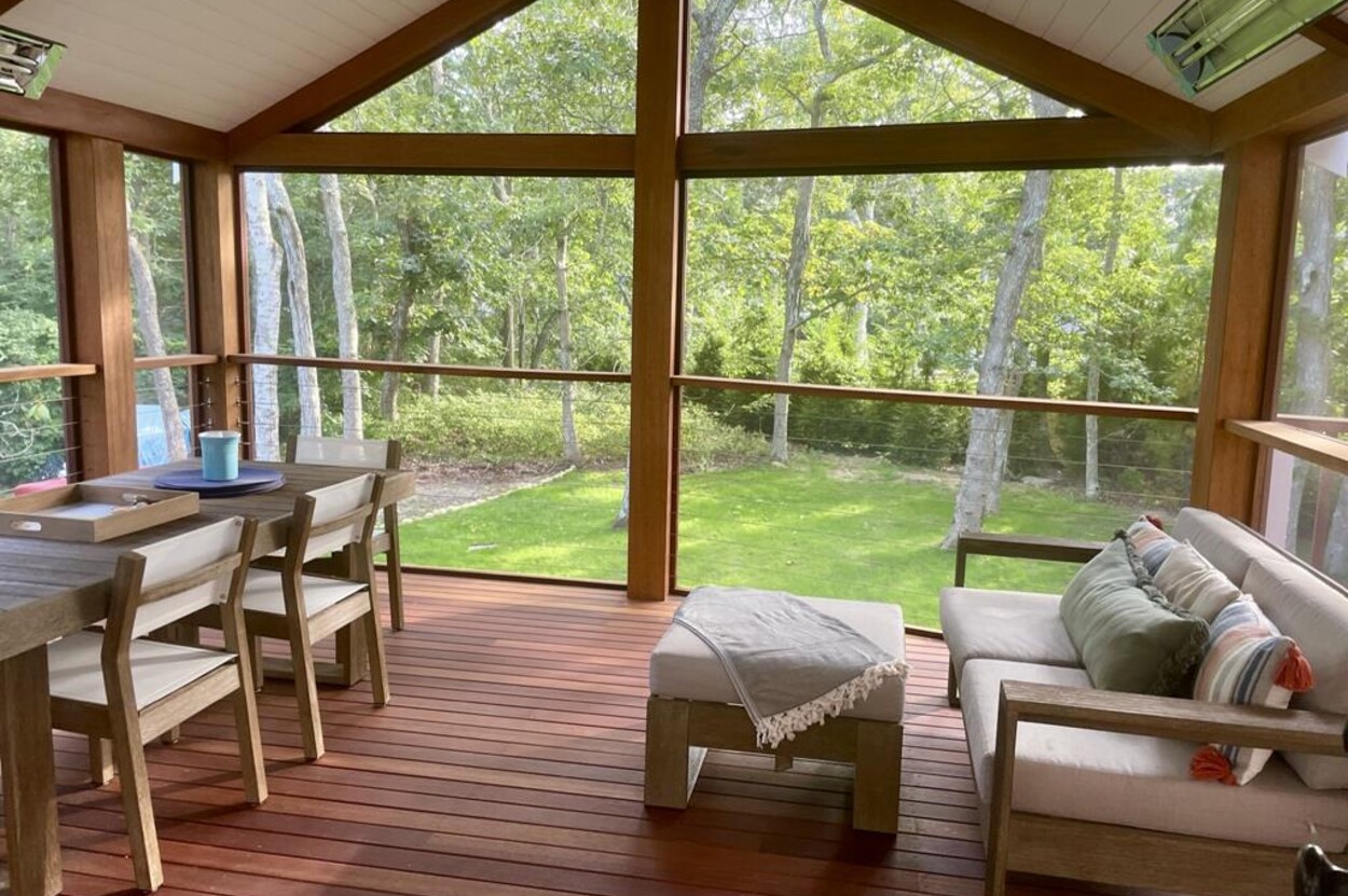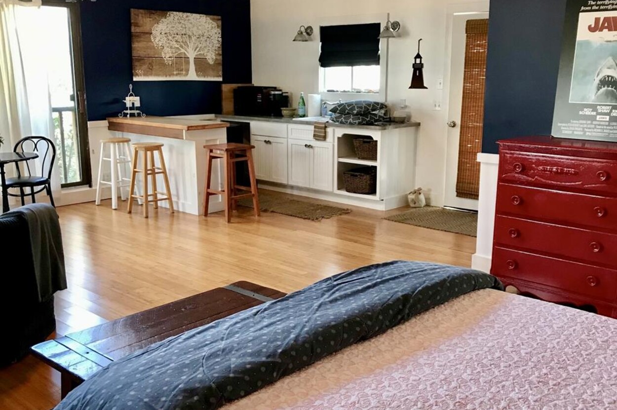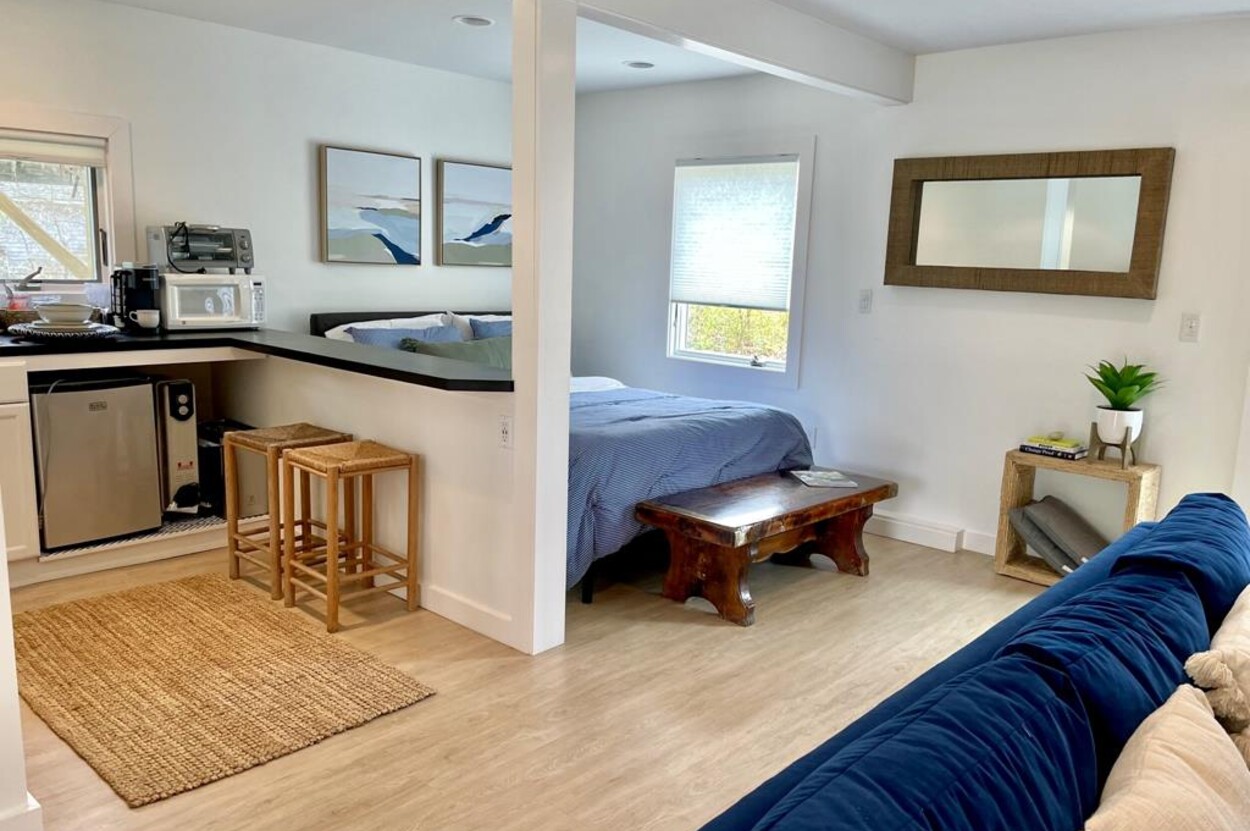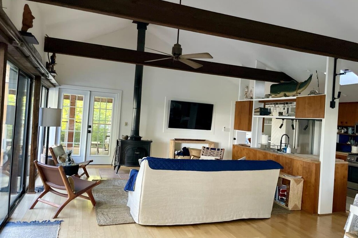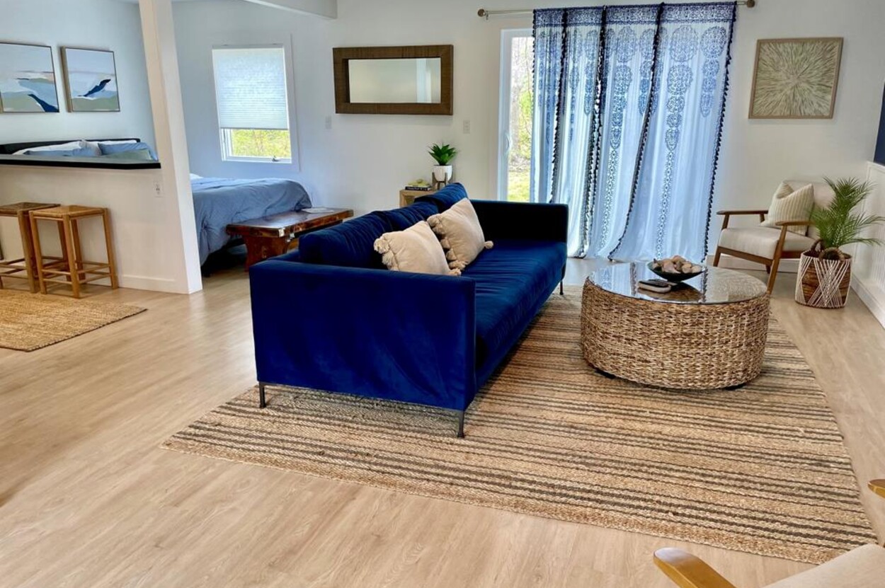 Reverse-style contemporary home located in the Harthaven neighborhood. The main house features three bedrooms and an open-concept kitchen, living, and dining room that is spacious and bright. The living room has floor-to-ceiling sliders that lead to a large cypress deck and screened porch, which is perfect for indoor-outdoor living. The property also includes a studio/guest house with two bedrooms, two full bathrooms, a kitchenette, and plenty of natural light. This space is perfect for families with multiple generations or as a separate office space. The property also boasts beautiful gardens and mature plantings, making it the perfect place to relax and unwind.