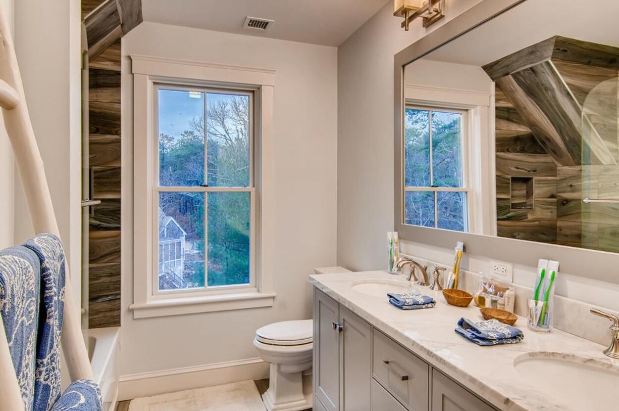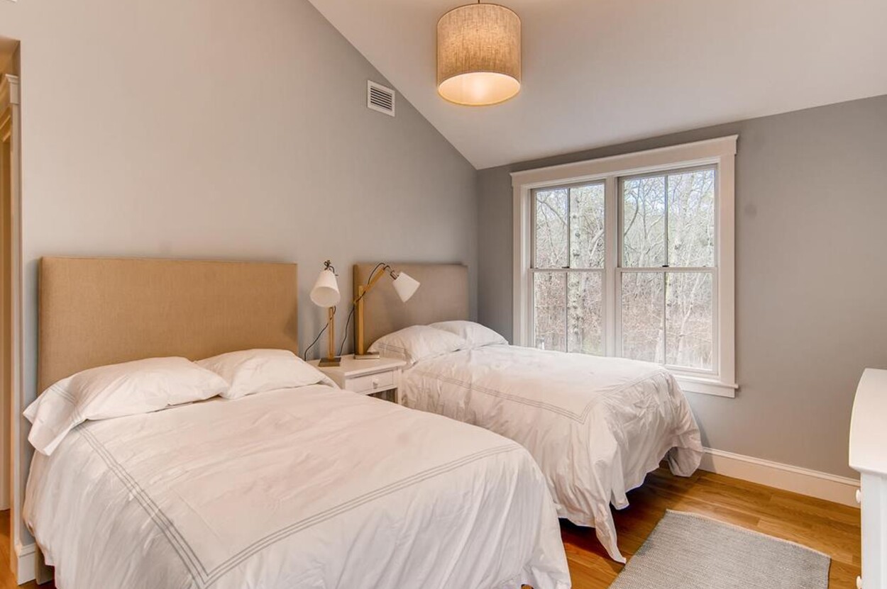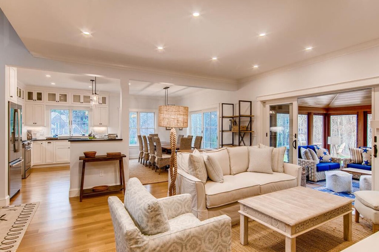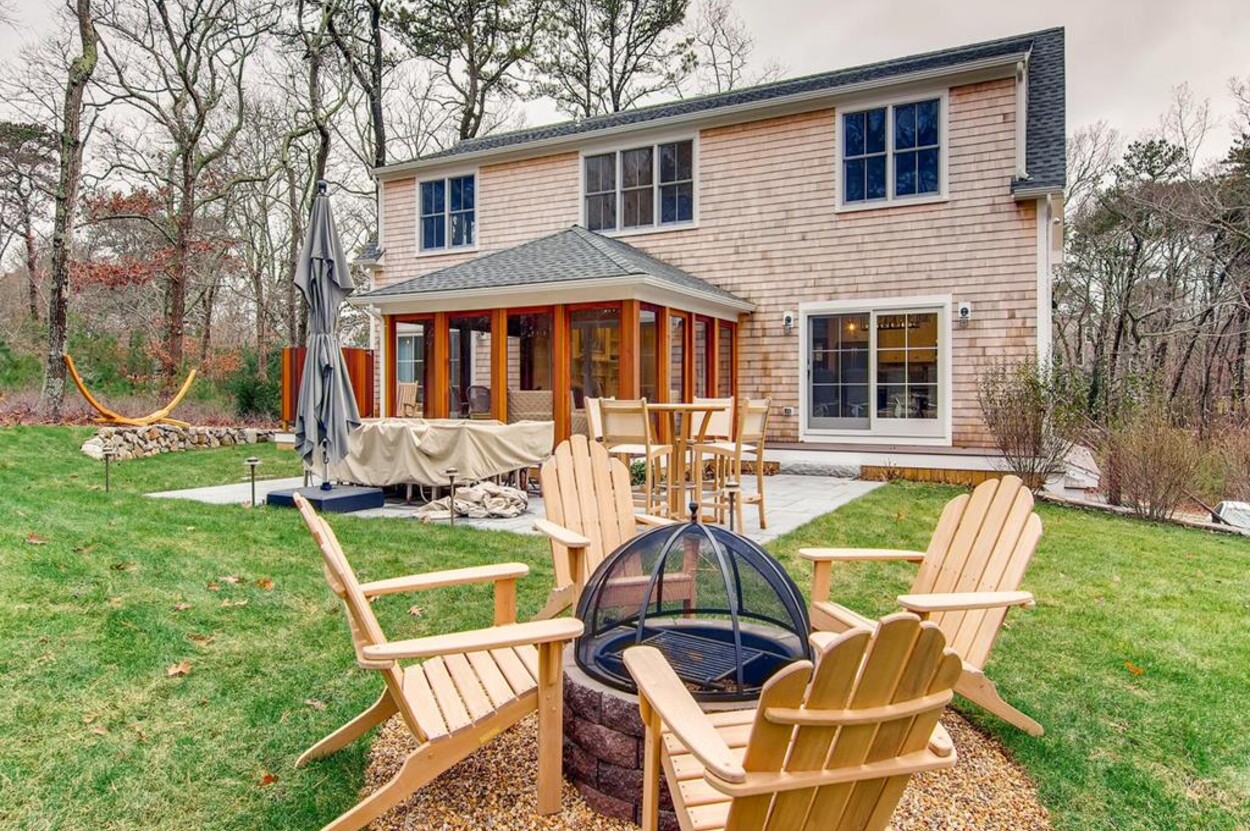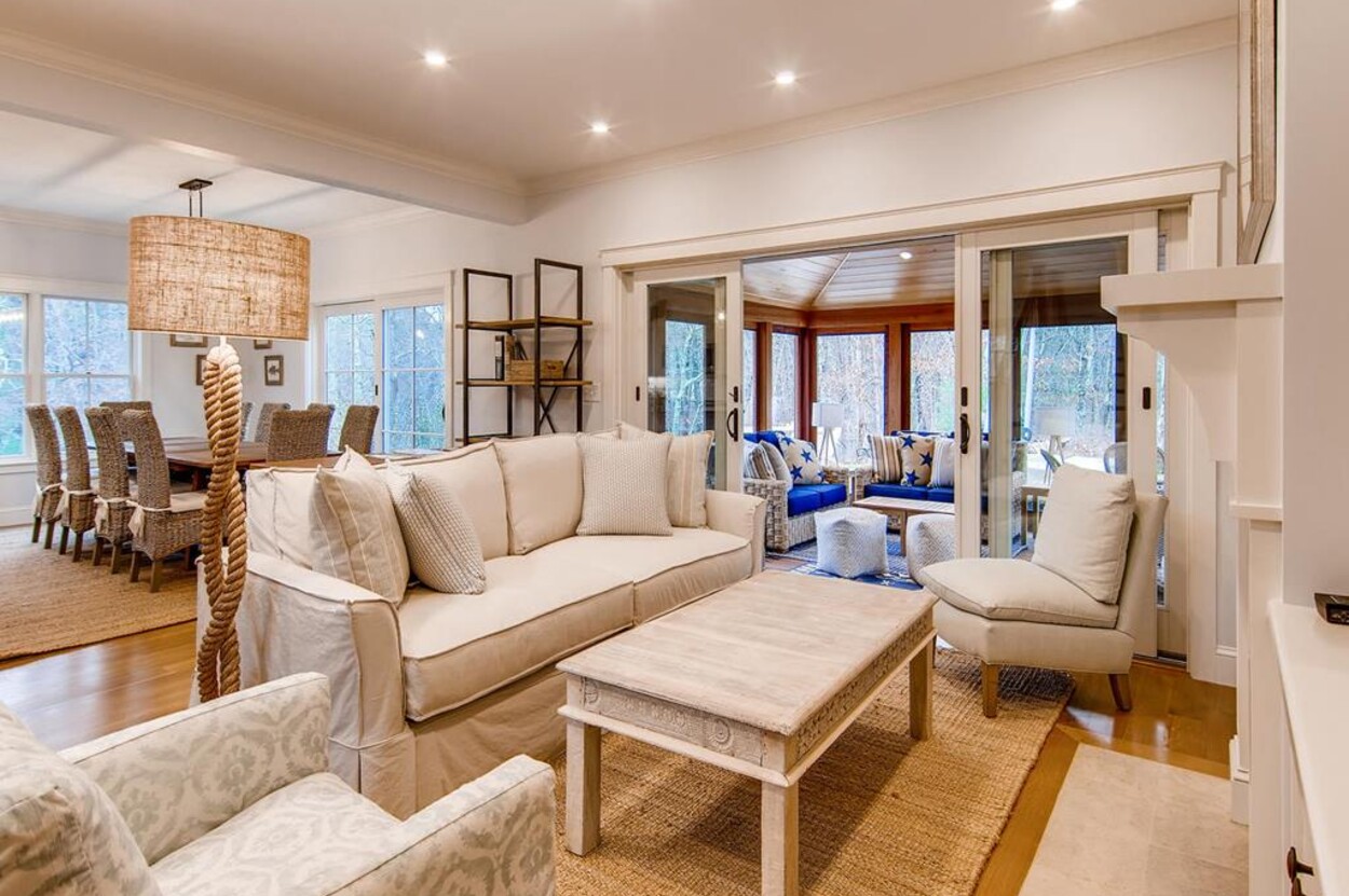 This lovely new home in Tashmoo Woods is beautifully furnished and equipped with expansive living space on three levels. The open floor plan kitchen/dining/living flows to the screened porch and out to the patio and yard. Two other areas for gathering include an office/TV room in second floor loft area and a family/game room with surround sound on the lower level. This rental includes the association pool and four tennis courts, all just a short walk away, plus the dock on Lake Tashmoo and beach access nearby. This property has everything you need for the perfect island getaway.