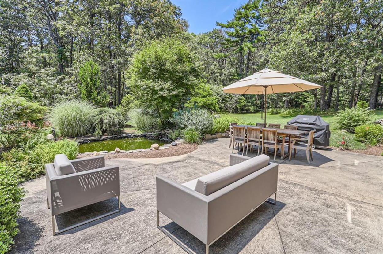 This home has central air conditioning in the main living area, and mini-splits in each bedroom. The stone terrace has outdoor furniture with patio table and chairs, and gas grill. There is a lovely Koi Pond off the patio area, please be aware for those with young children, must be monitored at all times for safety.