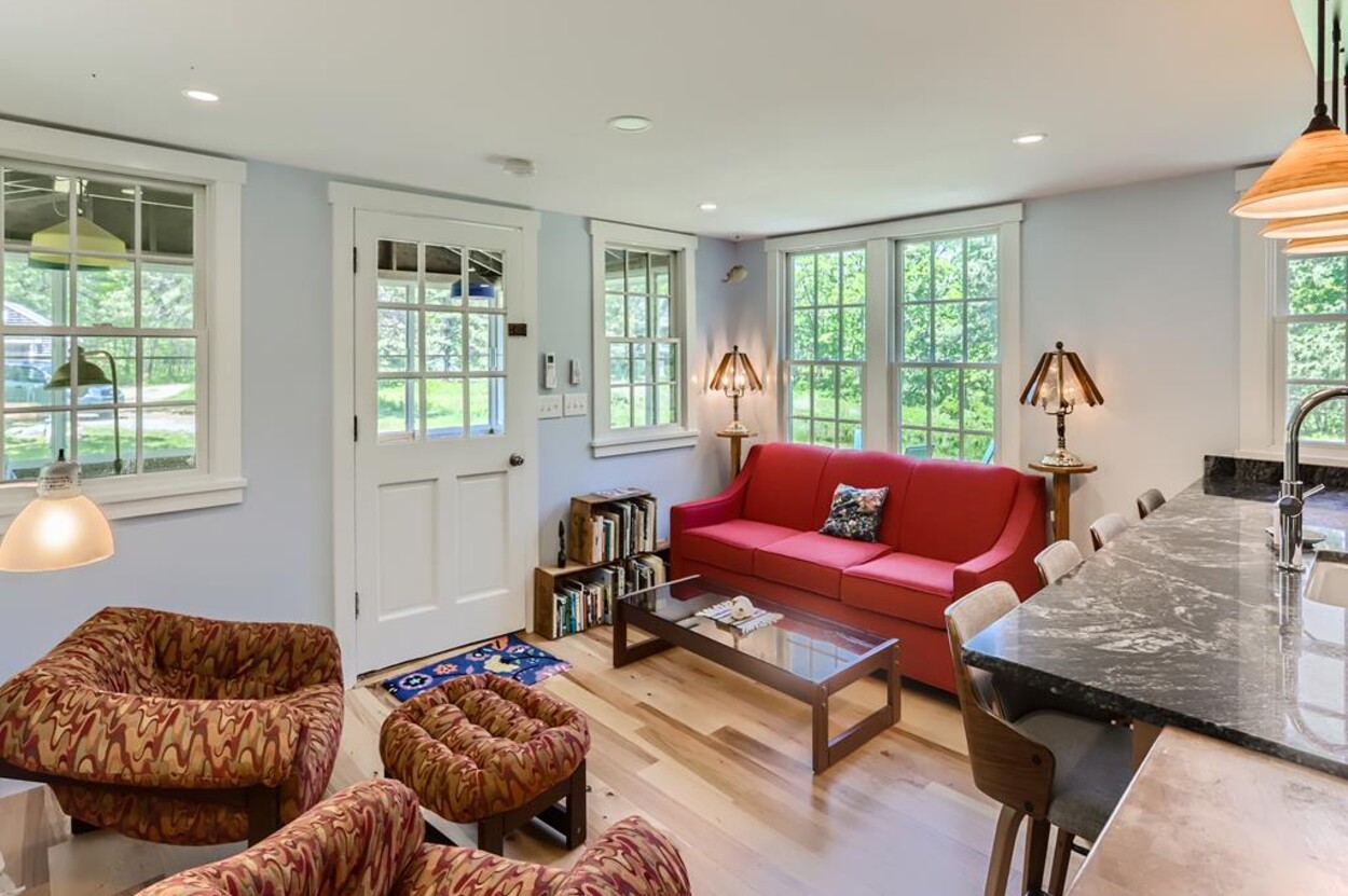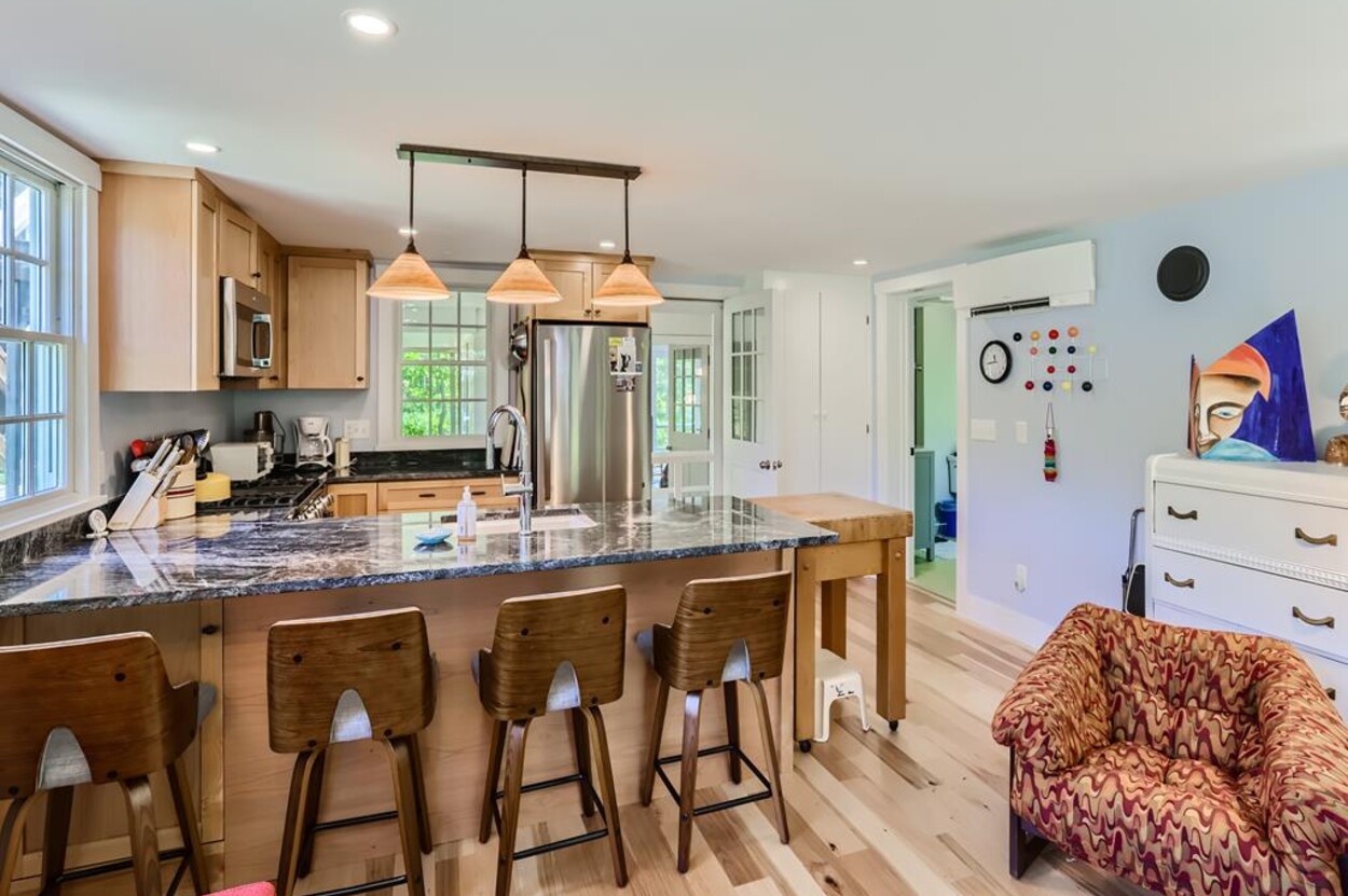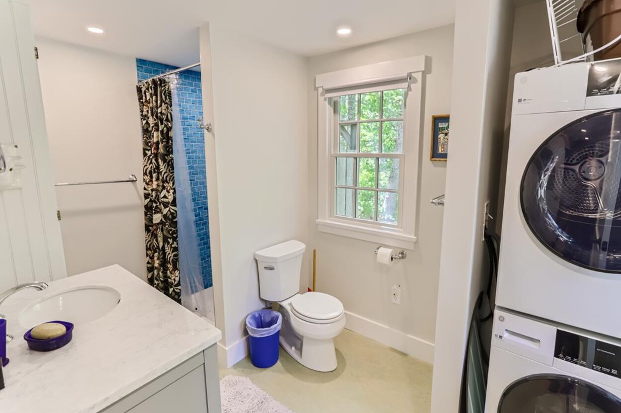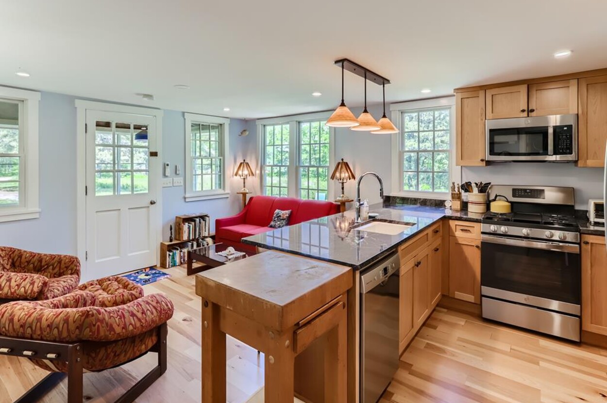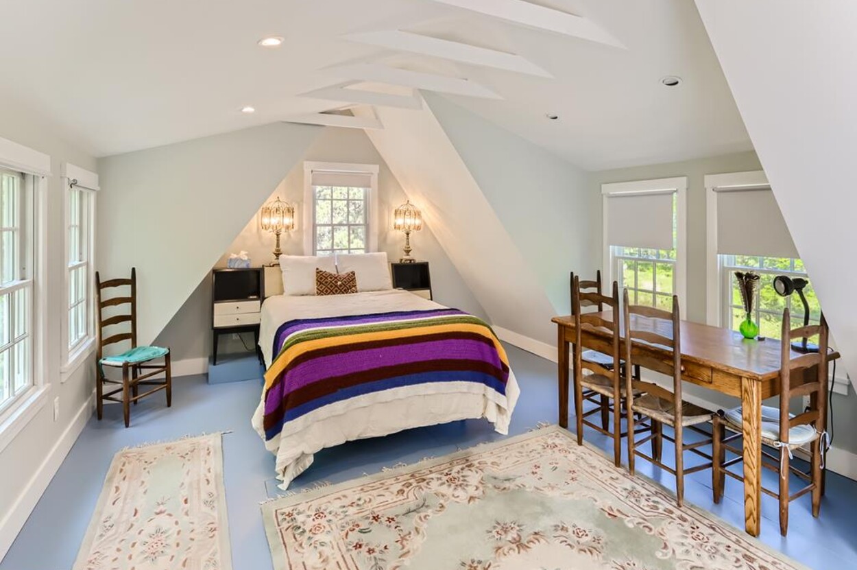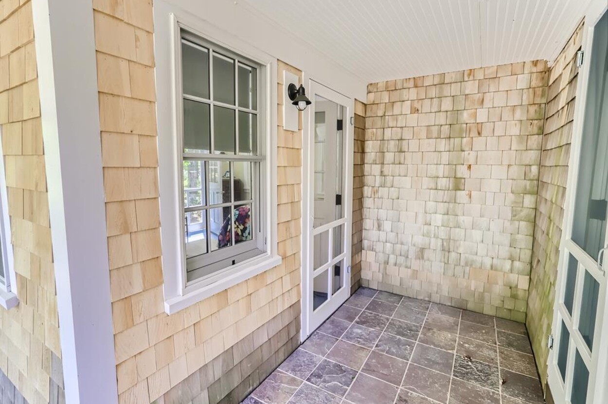 An Old Vineyard “camp” lovingly updated as a guest cottage in 2023, in the historic, rural Red Coat Hill area, not too far from town. Surrounded by 8 acres of meadows and woods, across a field of sweet fern, blueberry, and sumac from the property’s main house. Coastal chic at the end of a country dirt road—one of the Vineyard’s famous Ancient Ways. The screened-in porch at the front of the house is perfect for feasts or quiet contemplation. The cottage has been freshly renovated with a new kitchen, 2 baths, and mini splits in all four rooms. The three bedrooms all have private outdoor entrances. The first-floor bedroom has two beds and is located across a slate-tiled breezeway from the main part of the house. On the second floor, the two additional bedrooms and bathroom are each accessible via private outdoor entrances off the deck. Note that the two upstairs bedrooms opening onto the deck are reached by a short flight of outdoor stairs. Tucked behind the house, a hammock invites you to engage in some relaxed forest bathing. Clean, tidy, quirky, and fun.