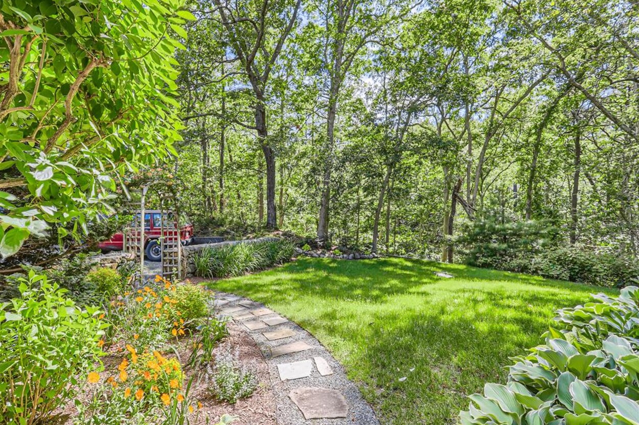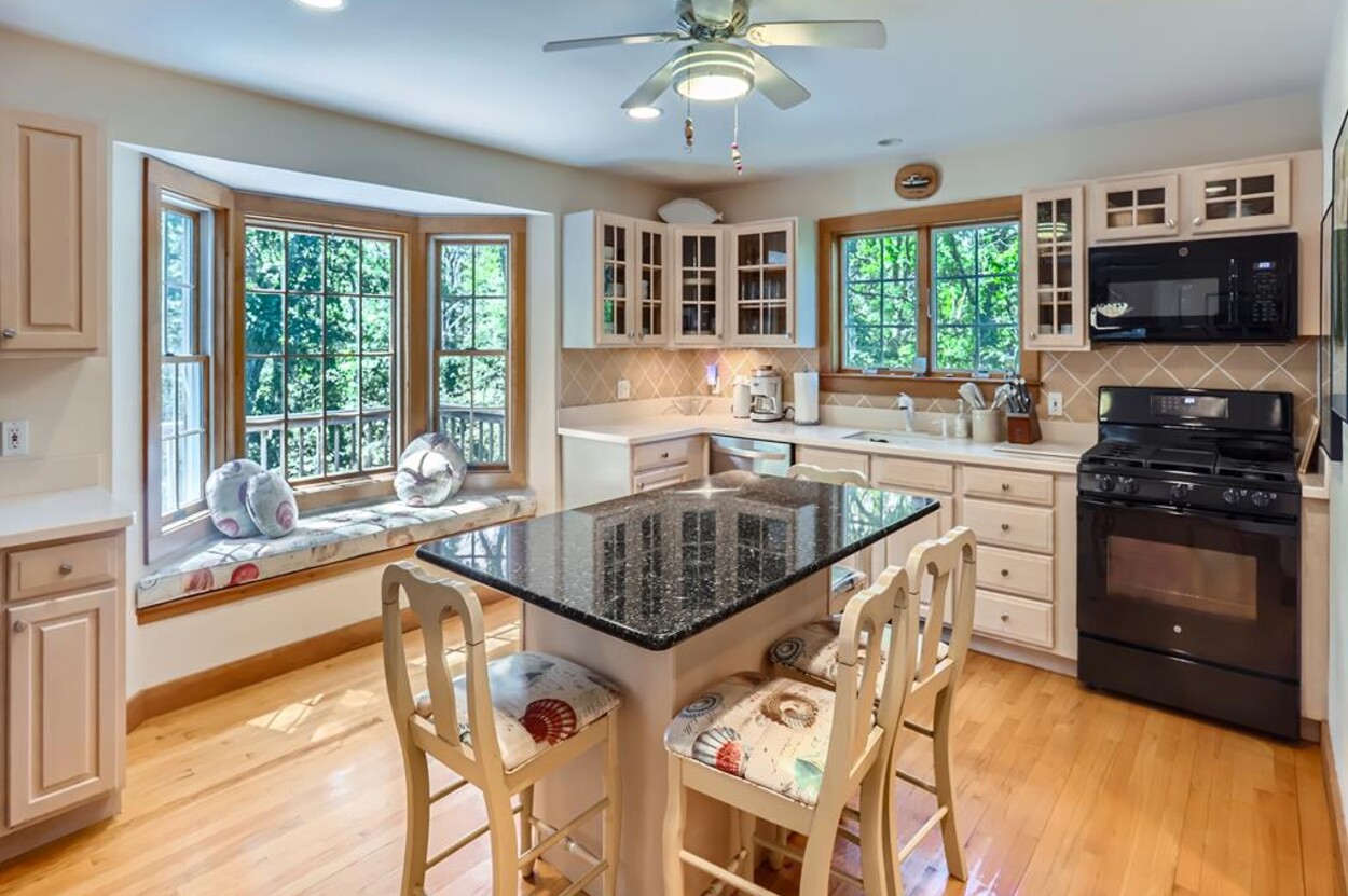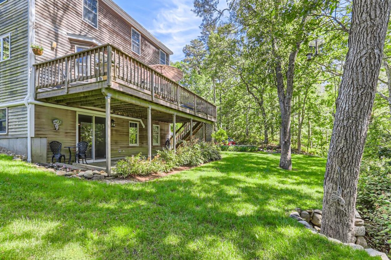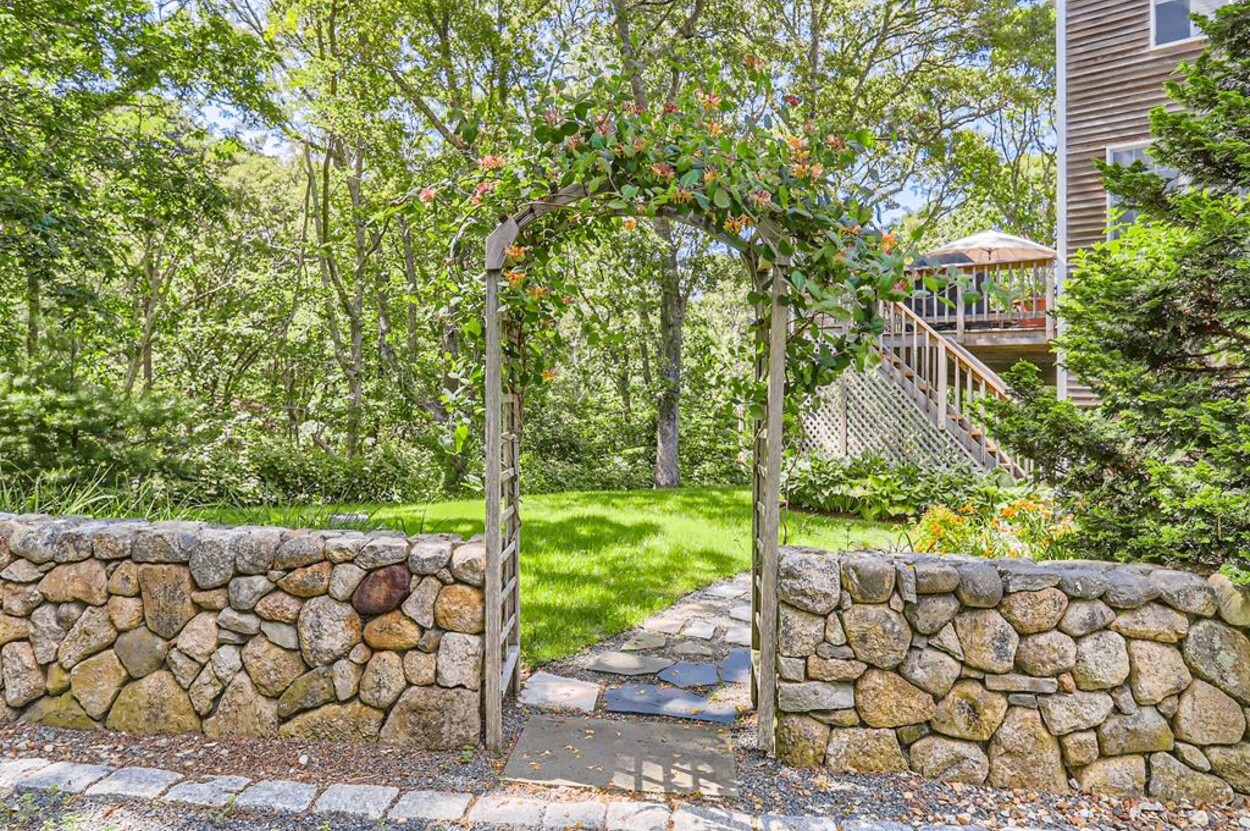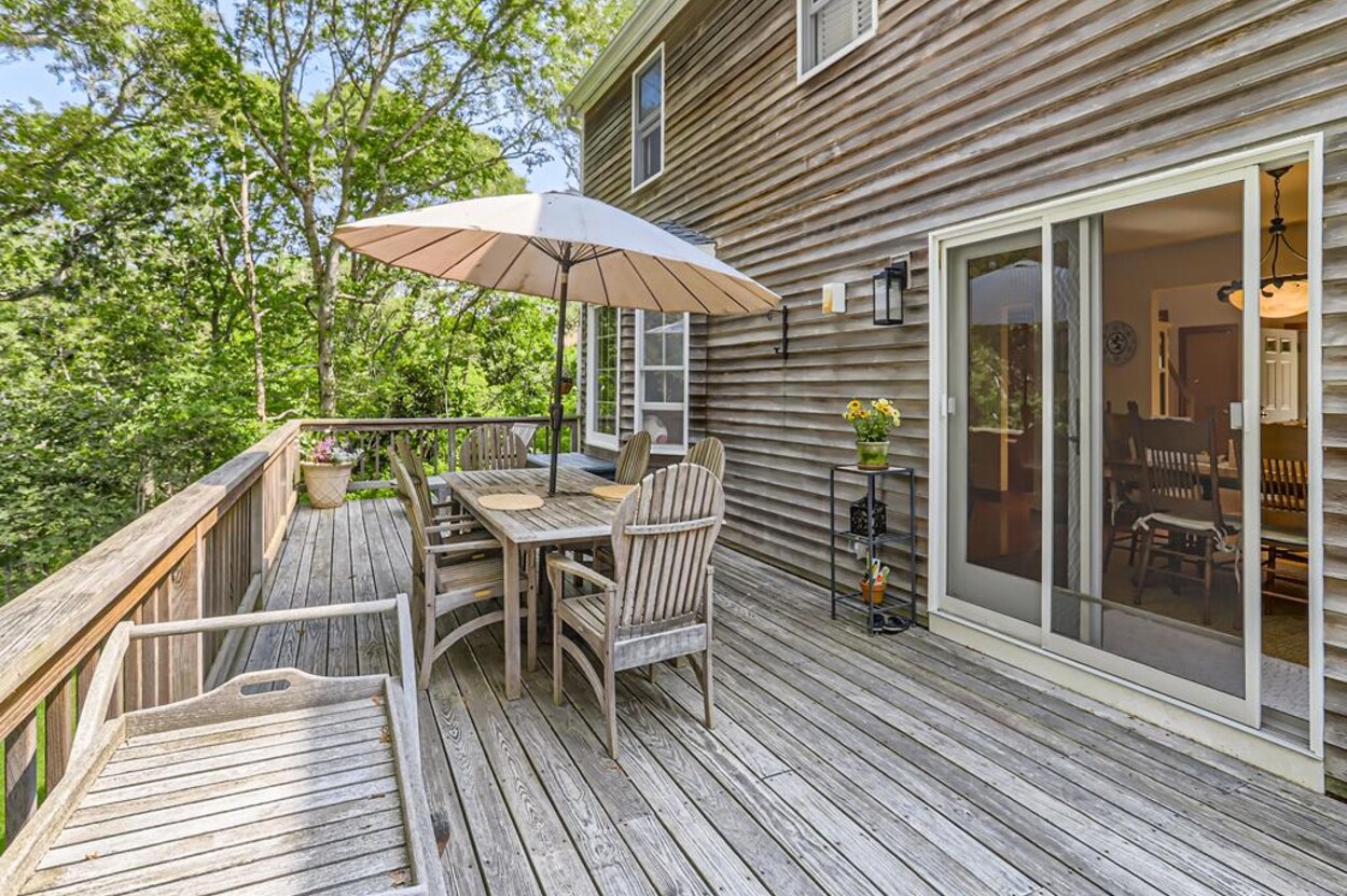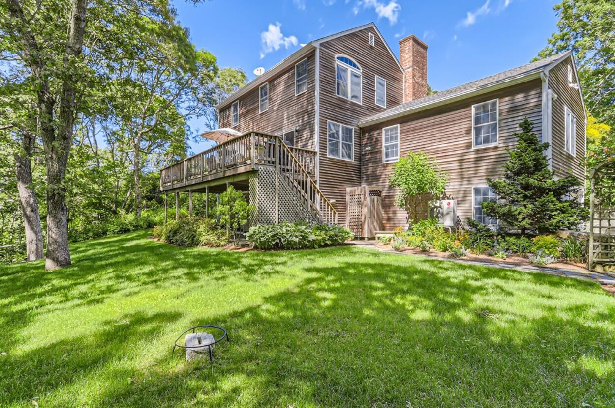 This bright and cheery 3 bedroom home, (sleeps 6-8) is conveniently close to Vineyard Haven yet in its own private oasis abutting conservation land and trails that lead to the Lagoon.