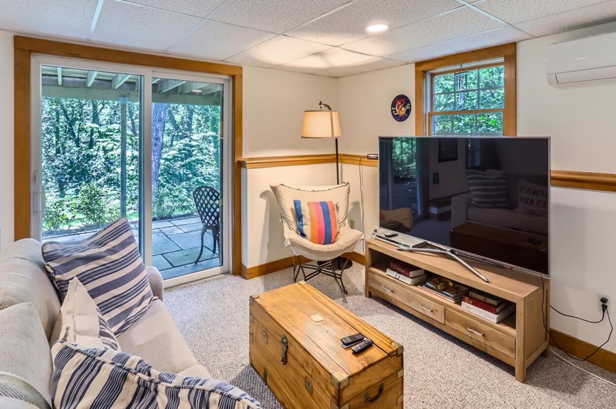 Situated between the Edgartown Vineyard Haven Road and the Lagoon, this is a great location to base your Vineyard vacation. Easy access to Edgartown, Oak Bluffs and Vineyard Haven shops, restaurants and ferry near by. AC is provided by mini splits and there's plenty of parking.