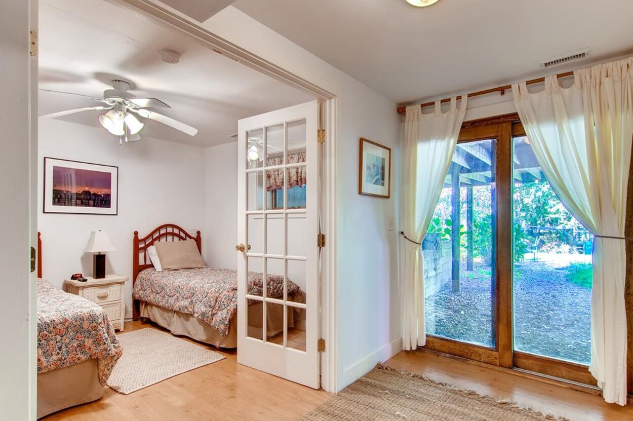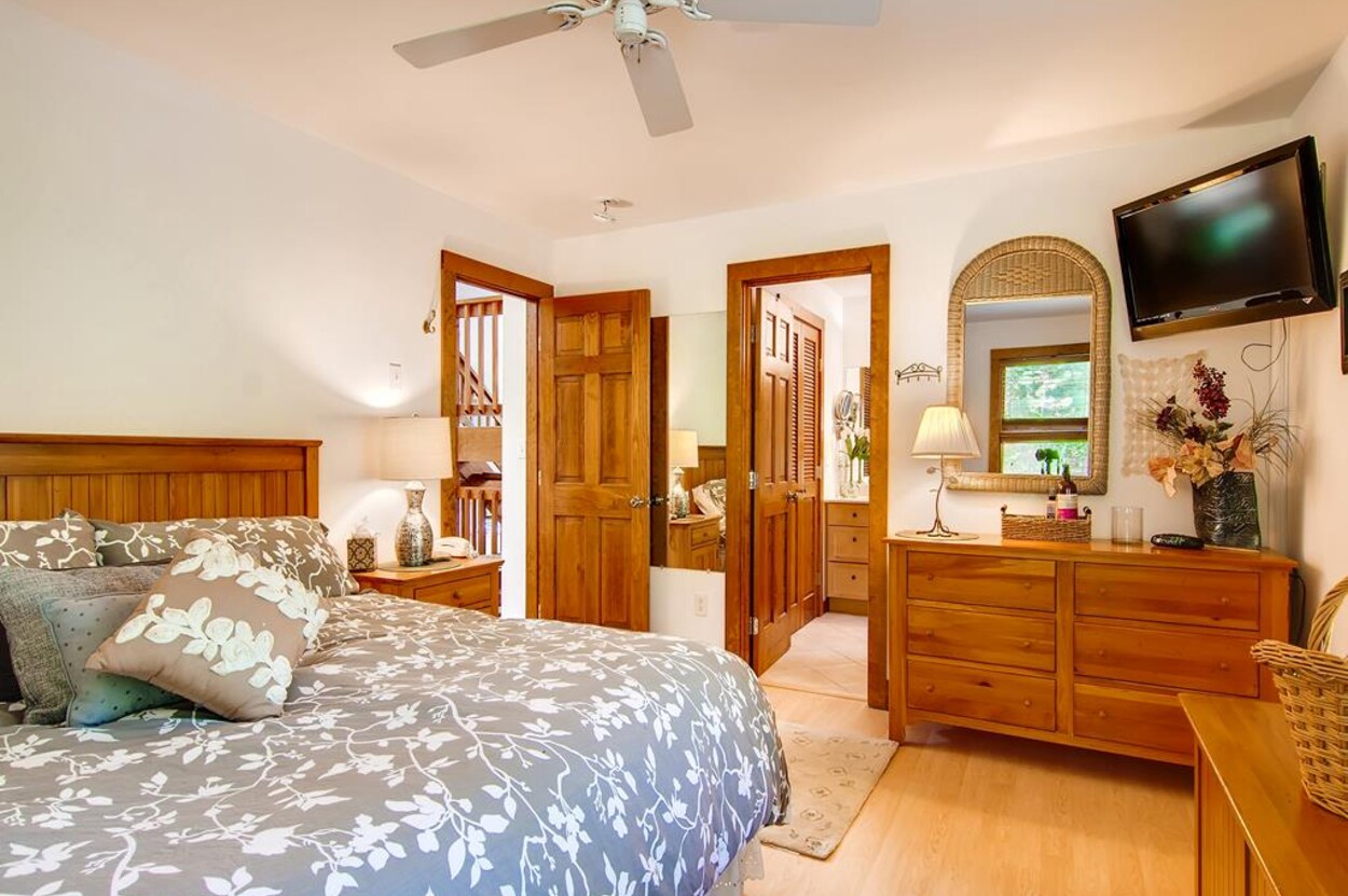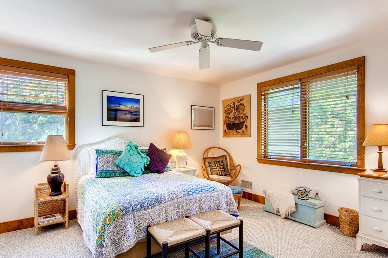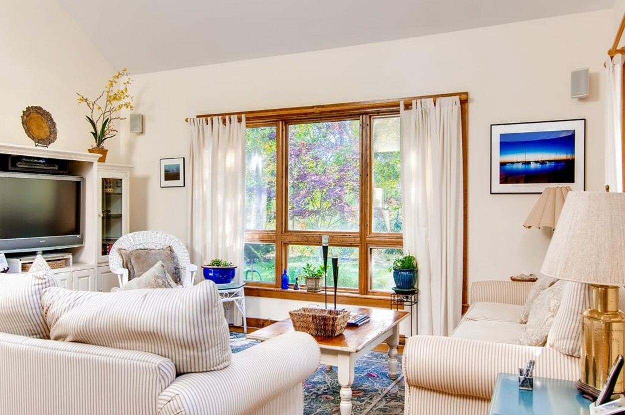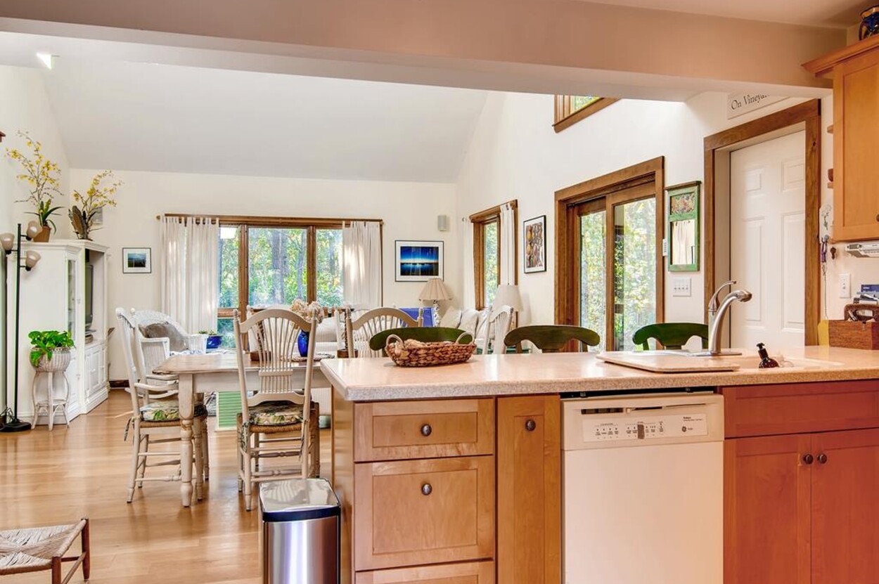 Lovely contemporary home located in beautiful Meadow View Farms. Airy and light with high cathedral ceilings. 3 bedrooms plus additional sleeping area in lower level. 4.5 bathrooms, plus outdoor shower. Large kitchen and dining area perfect for families and entertaining. Family room and TV room located on first floor. Large deck overlooking large landscaped backyard and swing set. Additional lower level patio with tables and chairs - perfect for entertaining, or relaxing on your vacation. Located in a private community with association tennis, central AC & ceiling fans.