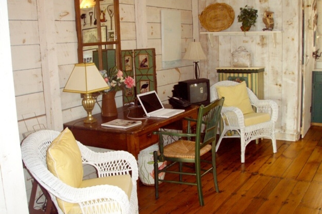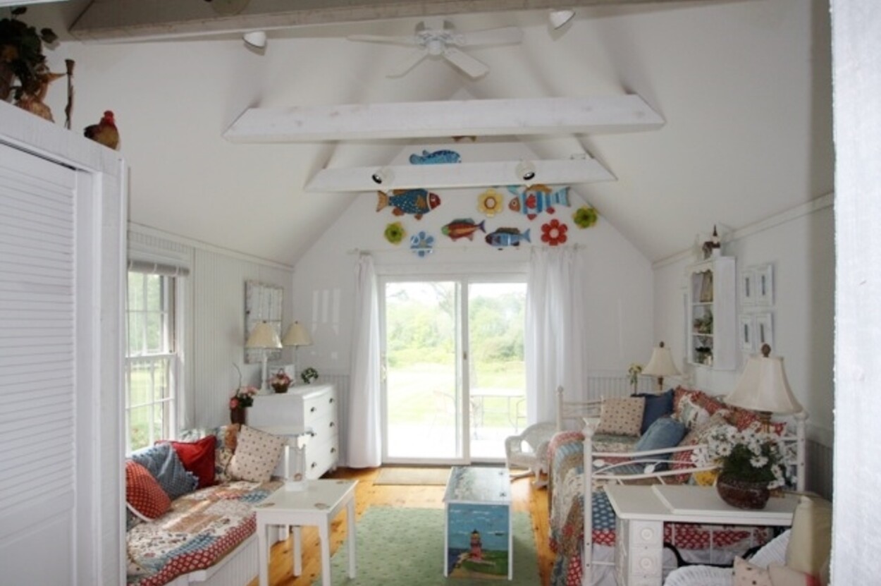 An adjacent old original barn converted to a studio with living space, a half-bath, bar sink and WiFi serves as a wonderful private space for work or play. For extra comfort there are three more beds. The property is fenced in the front to secure small children. A shed holds all beach equipment, towels, chairs, games, toys, etc.
