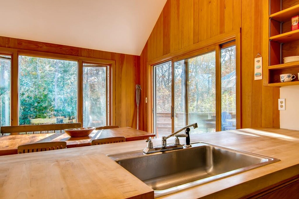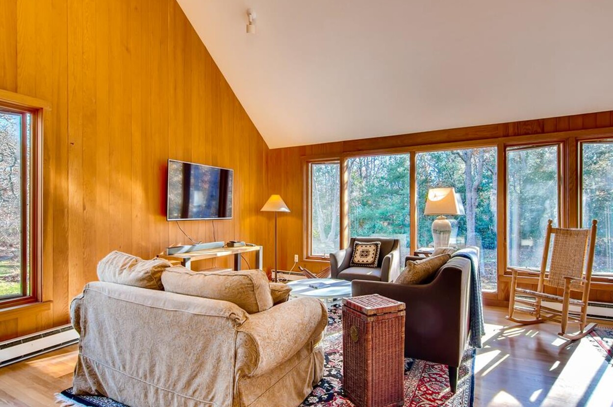 This cute 3 bedroom 2 bath home is located close to Alleys General Store, the Farmers Market, Artisans Fair and other West Tisbury Amenities, yet its privately situated on a quiet road within walking distance to Sepiessa nature trails and pond. Beach access is either at Long Point Reservation for Atlantic surf, or lovely Lamberts Cove Town beach for gentle North shore swimming and beautiful sunsets. The house offers plenty of outdoor space for family gatherings, BBQ’s and games. Thoughtfully decorated and updated this home is cozy and comfortable. There s AC in the first floor primary bedroom. Outside shower and 2 bikes are available to use.