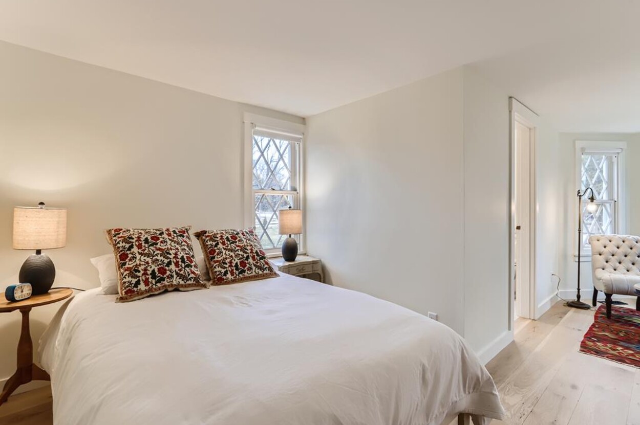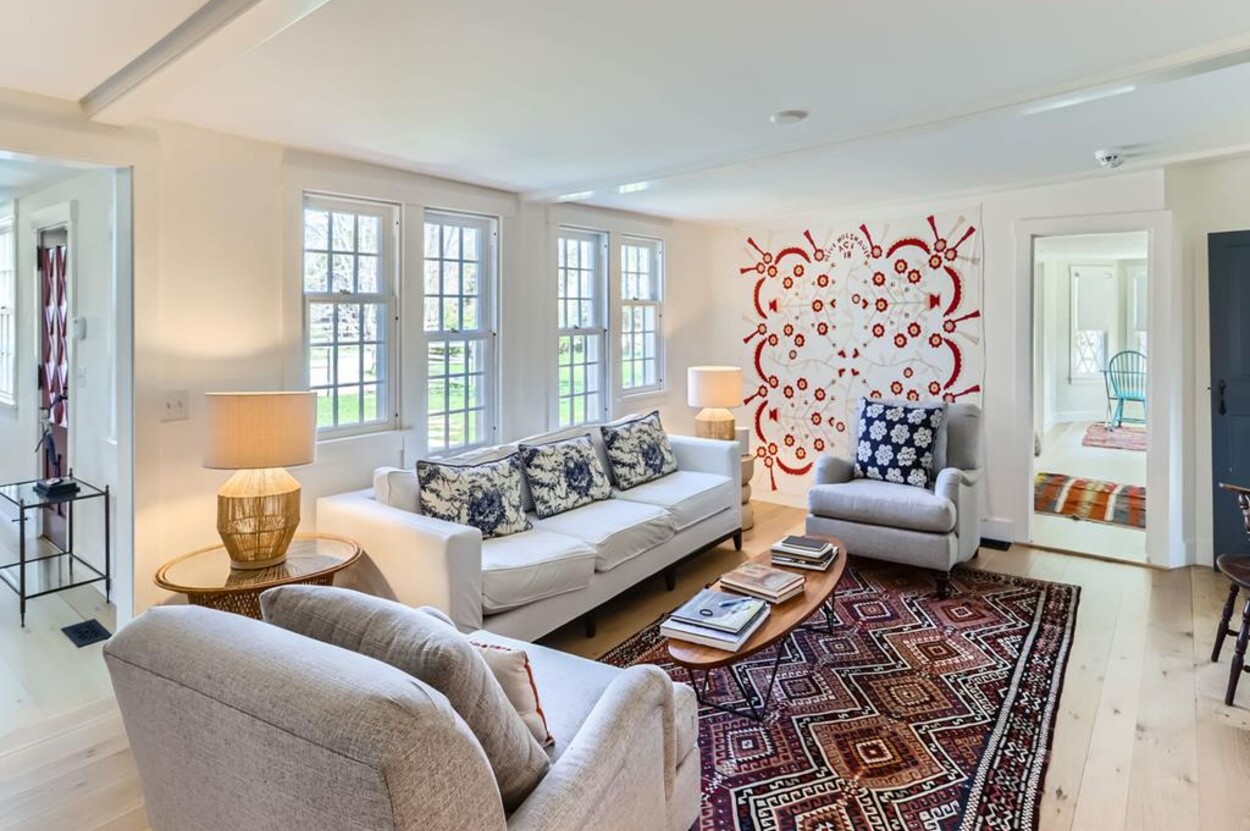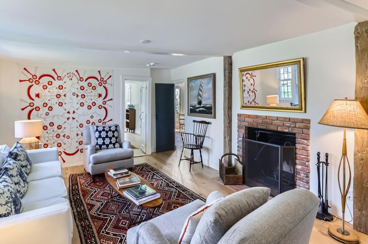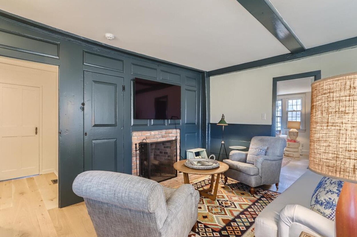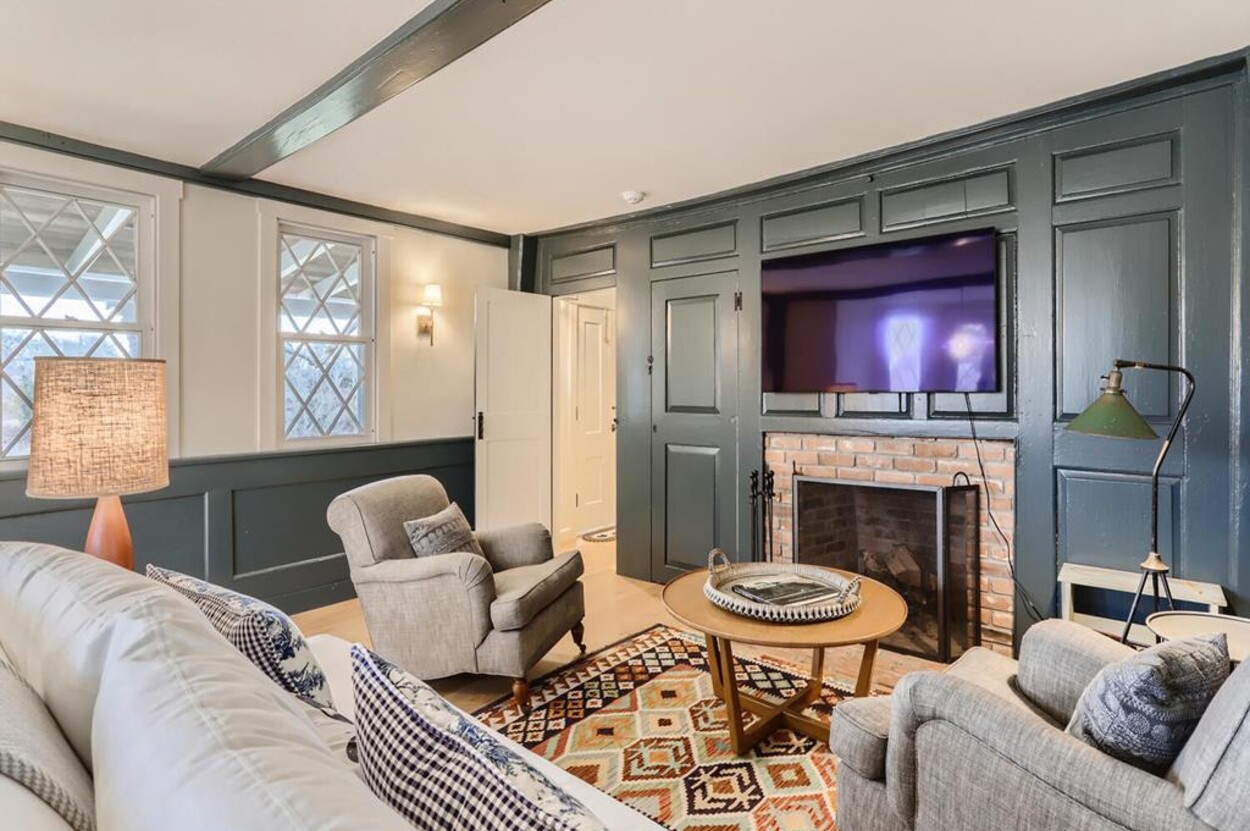 FERRY TICKETS AVAIL! Please inquire for details. Situated on 3.3 acres, "The Old Parsonage" is the second oldest home on Martha's Vineyard. Renovated from top to bottom and completed in 2022 with brand new systems but retaining its old house charm. The home has 4 bedrooms, and 3 and a half bathrooms plus an outdoor shower. One guest bedroom with a private bath is on the first floor. The primary ensuite bedroom, plus 2 more bedrooms (one is ensuite and one with an adjacent bathroom), are on the second floor. All baths have walk-in glass showers. The large open kitchen/breakfast room has a huge island and all you need for some great summer entertaining. Plus there's a gas grill outside on the deck. Pass through the kitchen to the living room with the original fireplace and a separate den/office with pull out couch and half bath (nice to have for occasional guests). The private formal dining room easily seats up to 16 (photo coming soon!) and has a door to the original porch where you can sit and enjoy the view of Parsonage Pond. The original parlor has been transformed into a second living room, with fireplace and flat screen TV; a cozy space to relax, enjoy a movie, play a game or work on a puzzle. The house is close to West Tisbury village center where you will find the Grange Hall, Library and Field Gallery and the weekly farmers market at the MV Agricultural Hall - also home to the Ag Fair the third week of August. It's an easy stroll to Alley's General Store for the morning paper and breakfast from 7A Foods. The town beach at Lambert's Cove is a short drive away. Or if you prefer the south shore - Long Point Trustees of the Reservation beach is also close by. Minimum of 2 week rental preferred.