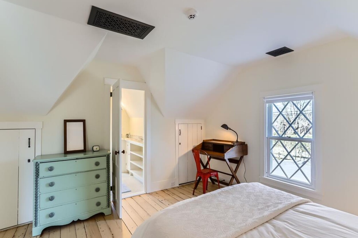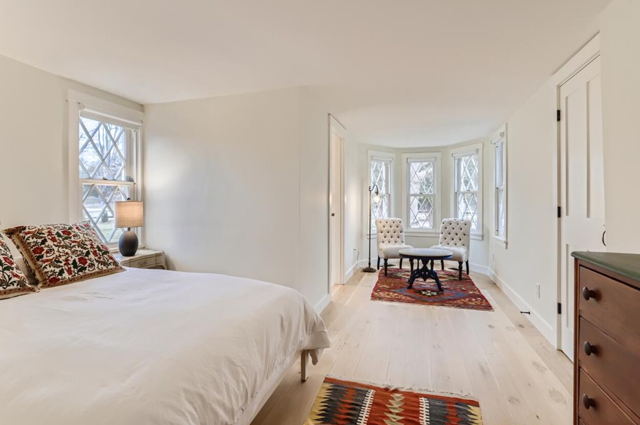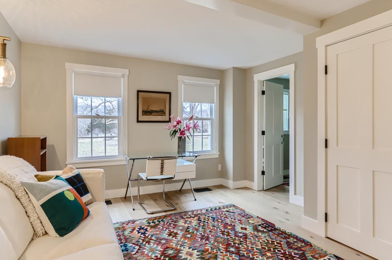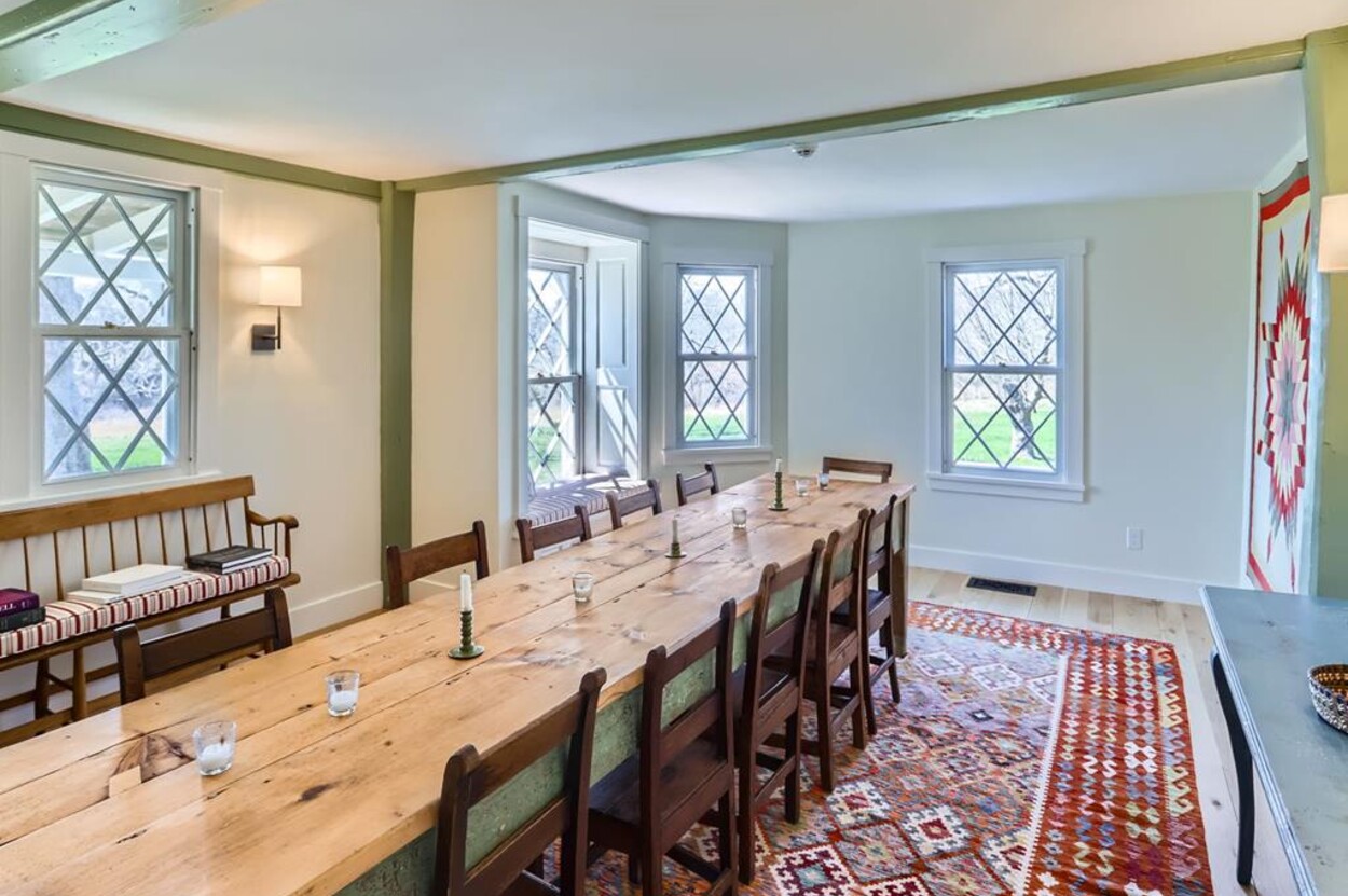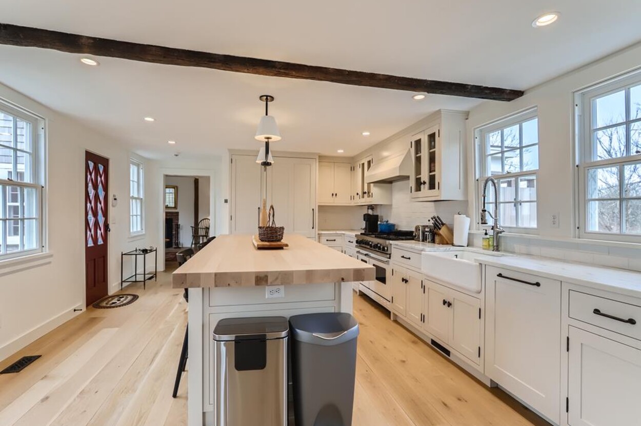 FERRY TICKETS AVAIL! Please inquire for details. Situated on 3.3 acres, "The Old Parsonage" is the second oldest home on Martha's Vineyard. Renovated from top to bottom and completed in 2022 with brand new systems but retaining its old house charm. The home has 4 bedrooms, and 3 and a half bathrooms plus an outdoor shower. One guest bedroom with a private bath is on the first floor. The primary ensuite bedroom, plus 2 more bedrooms (one is ensuite and one with an adjacent bathroom), are on the second floor. All baths have walk-in glass showers. The large open kitchen/breakfast room has a huge island and all you need for some great summer entertaining. Plus there's a gas grill outside on the deck. Pass through the kitchen to the living room with the original fireplace and a separate den/office with pull out couch and half bath (nice to have for occasional guests). The private formal dining room easily seats up to 16 (photo coming soon!) and has a door to the original porch where you can sit and enjoy the view of Parsonage Pond. The original parlor has been transformed into a second living room, with fireplace and flat screen TV; a cozy space to relax, enjoy a movie, play a game or work on a puzzle. The house is close to West Tisbury village center where you will find the Grange Hall, Library and Field Gallery and the weekly farmers market at the MV Agricultural Hall - also home to the Ag Fair the third week of August. It's an easy stroll to Alley's General Store for the morning paper and breakfast from 7A Foods. The town beach at Lambert's Cove is a short drive away. Or if you prefer the south shore - Long Point Trustees of the Reservation beach is also close by. Minimum of 2 week rental preferred.