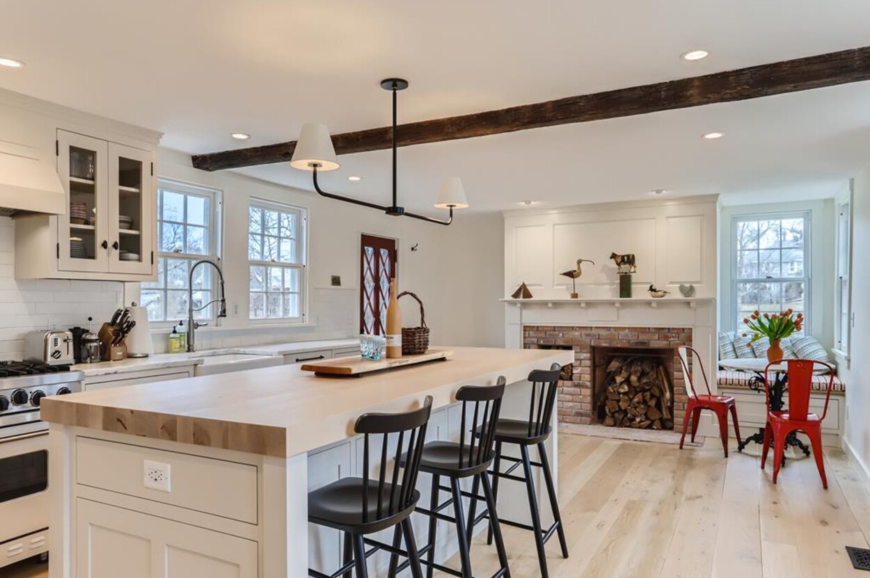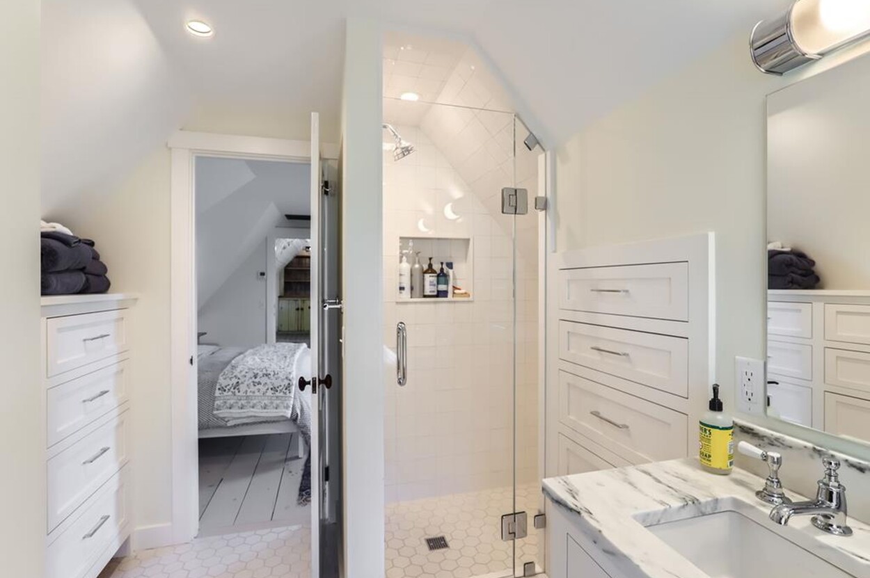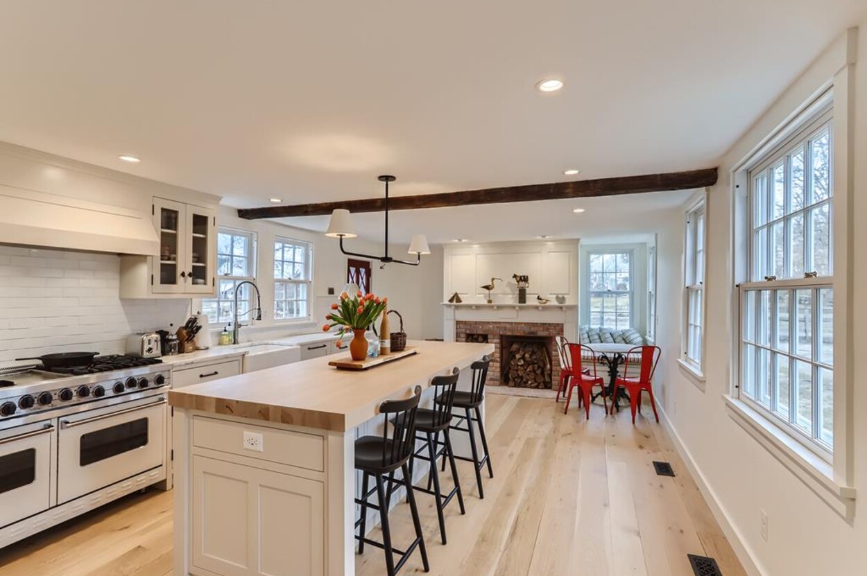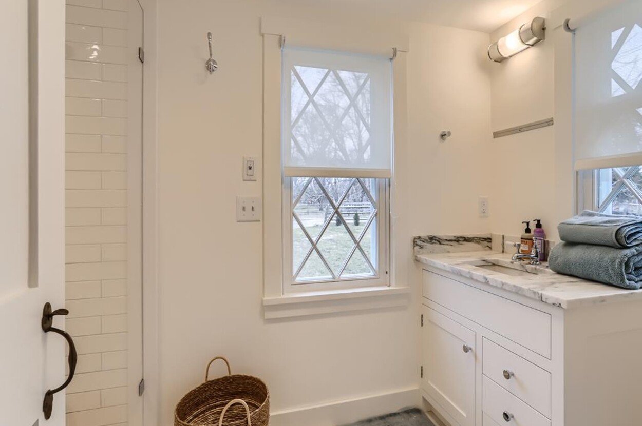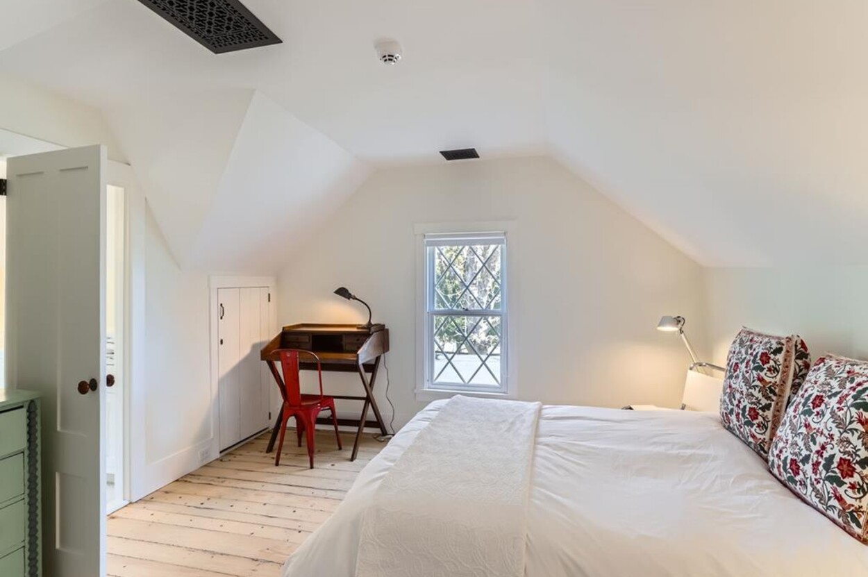 FERRY TICKETS AVAIL! Please inquire for details. Situated on 3.3 acres, "The Old Parsonage" is the second oldest home on Martha's Vineyard. Renovated from top to bottom and completed in 2022 with brand new systems but retaining its old house charm. The home has 4 bedrooms, and 3 and a half bathrooms plus an outdoor shower. One guest bedroom with a private bath is on the first floor. The primary ensuite bedroom, plus 2 more bedrooms (one is ensuite and one with an adjacent bathroom), are on the second floor. All baths have walk-in glass showers. The large open kitchen/breakfast room has a huge island and all you need for some great summer entertaining. Plus there's a gas grill outside on the deck. Pass through the kitchen to the living room with the original fireplace and a separate den/office with pull out couch and half bath (nice to have for occasional guests). The private formal dining room easily seats up to 16 (photo coming soon!) and has a door to the original porch where you can sit and enjoy the view of Parsonage Pond. The original parlor has been transformed into a second living room, with fireplace and flat screen TV; a cozy space to relax, enjoy a movie, play a game or work on a puzzle. The house is close to West Tisbury village center where you will find the Grange Hall, Library and Field Gallery and the weekly farmers market at the MV Agricultural Hall - also home to the Ag Fair the third week of August. It's an easy stroll to Alley's General Store for the morning paper and breakfast from 7A Foods. The town beach at Lambert's Cove is a short drive away. Or if you prefer the south shore - Long Point Trustees of the Reservation beach is also close by. Minimum of 2 week rental preferred.