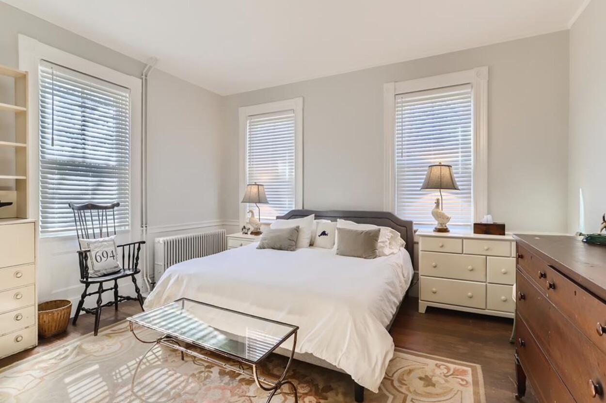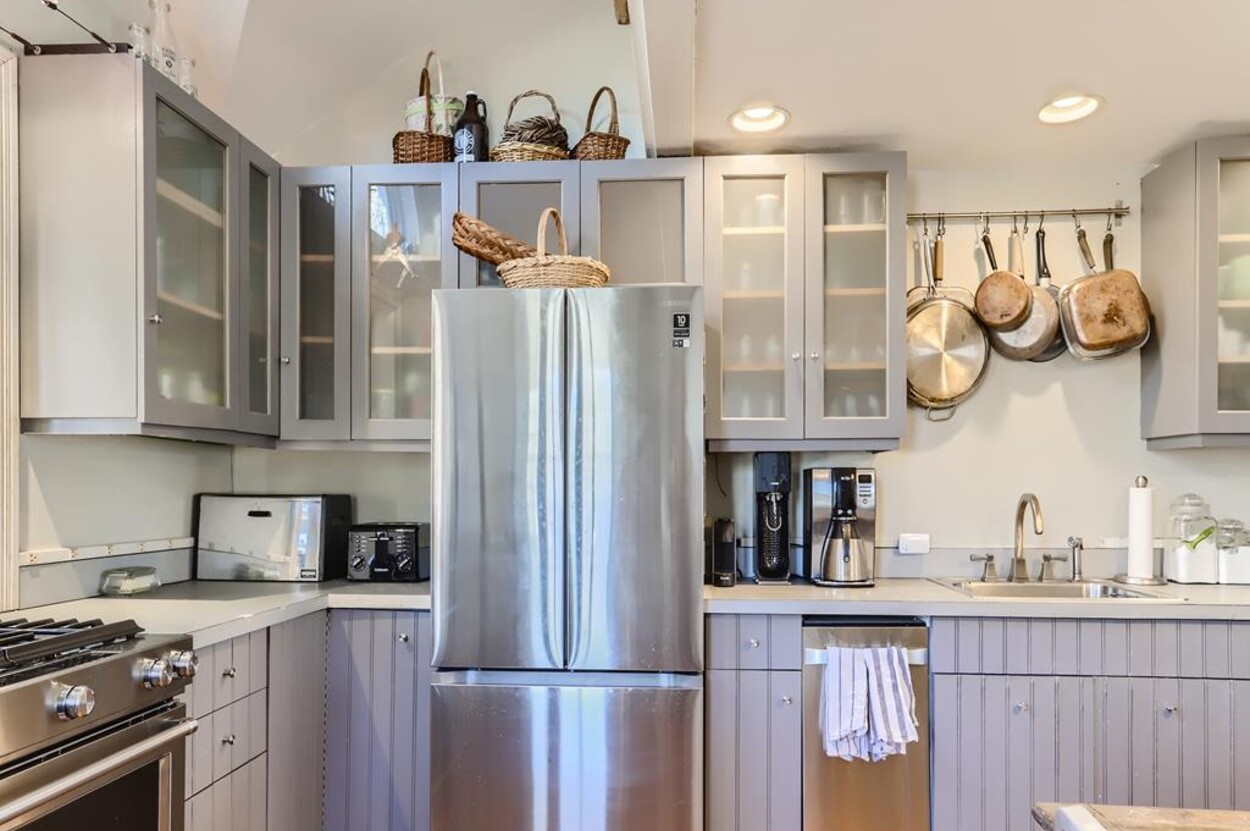 With 4 spacious bedrooms and 2 new baths, plus an outdoor shower. The primary bedroom (king) and a guest bedroom (queen) plus one bath are on the first floor, while the 3rd and 4th bedrooms (king and queen) and shared bath occupy the 2nd floor.