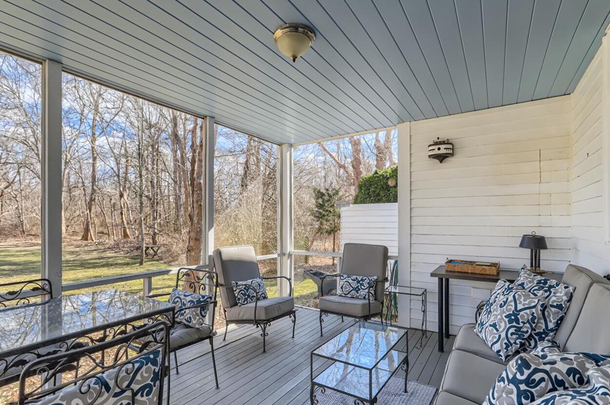 The large kitchen/breakfast room has all you need to prepare great family meals and enjoy pre dinner drinks in the cozy sitting area or on the attached screened porch that overlooks the fields behind the property.