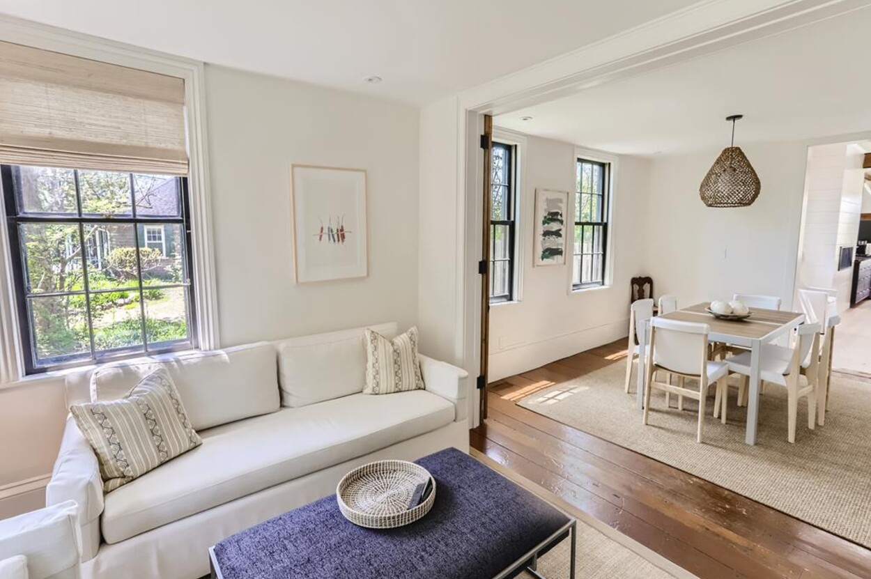 Welcome to this West Tisbury charmer, a beautifully renovated Greek Revival home from 1840, with tasteful modern amenities, right at the edge of the historic village center. The four bedroom house is bright and open with a chef's kitchen, spacious living and dining areas and a separate TV room. There are four bedrooms; the primary with large en suite bathroom and a cozy guest bedroom are on the first floor (along with a half bath), with two additional guest rooms with a shared bathroom on the second floor. All the bathrooms are modern and updated. With central AC, multiple outdoor seating areas, a fully enclosed outdoor shower, graceful landscaping and views of the meadow, this is a relaxing and easy vacation location. You can stroll to Alley's General Store, the Mill Pond, library, and Grange Hall which features the Artisan's Festival. And it's only a short drive to the Agricultural Hall (Farmer's Market) and Lambert's Cove Beach, permitted for West Tisbury renters and residents. Two week minimum.