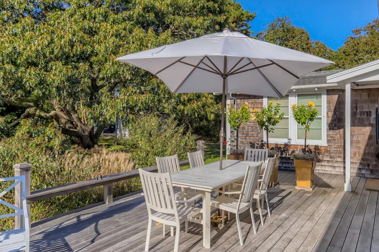 Fabulous Menemsha location. Walk to the beach and village for sunsets & ice cream. This 3 bedroom summer house has been professionally decorated. 2 1/2 newly tiled baths, pickled hardwood floors & a spacious, fully equipped eat-in kitchen & family room which opens onto a large, sunny, wooden deck. Bedrooms come fully furnished with new beds & linens and are comfortable, bright & airy. Everything is bright & spotlessly clean. You ll hear the bell buoys from the harbor at night!