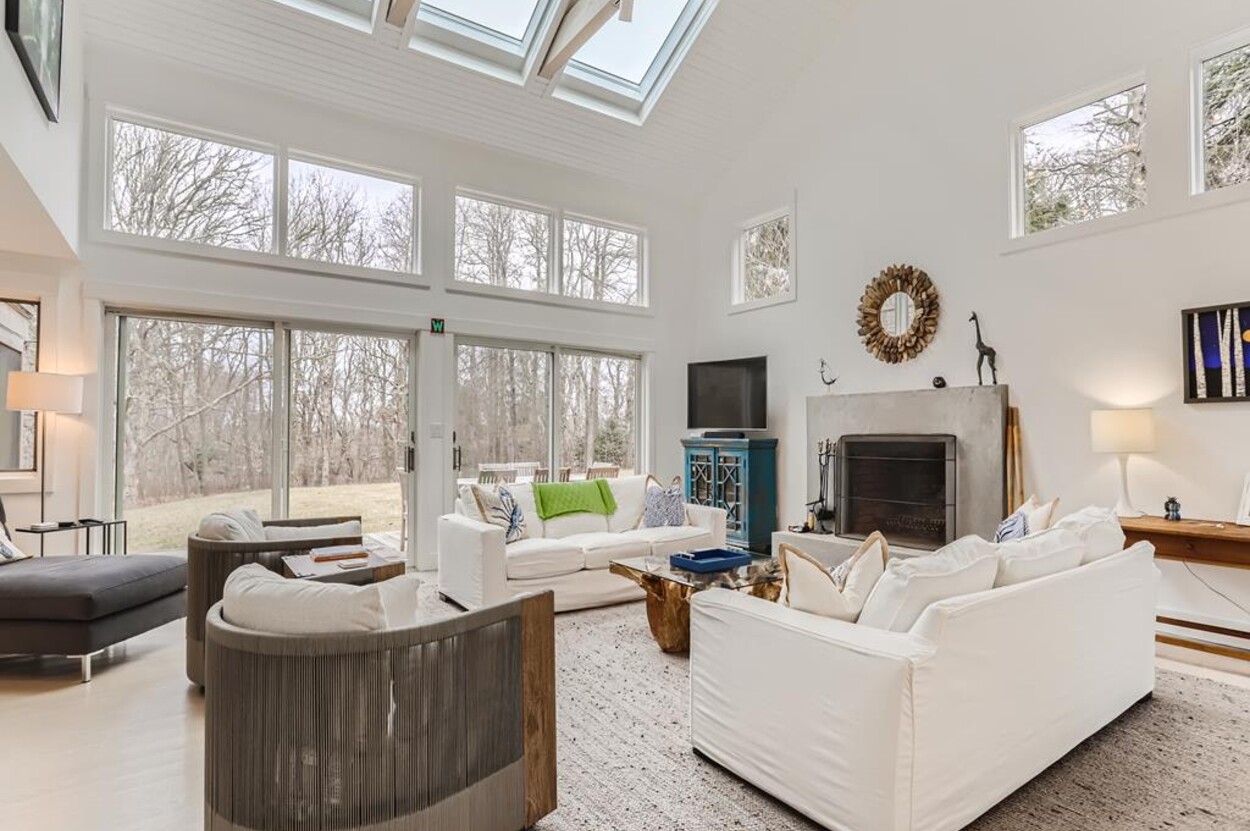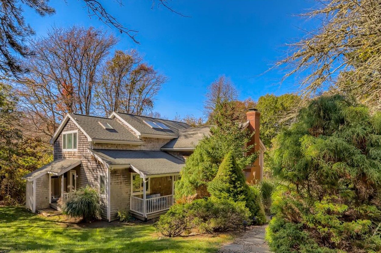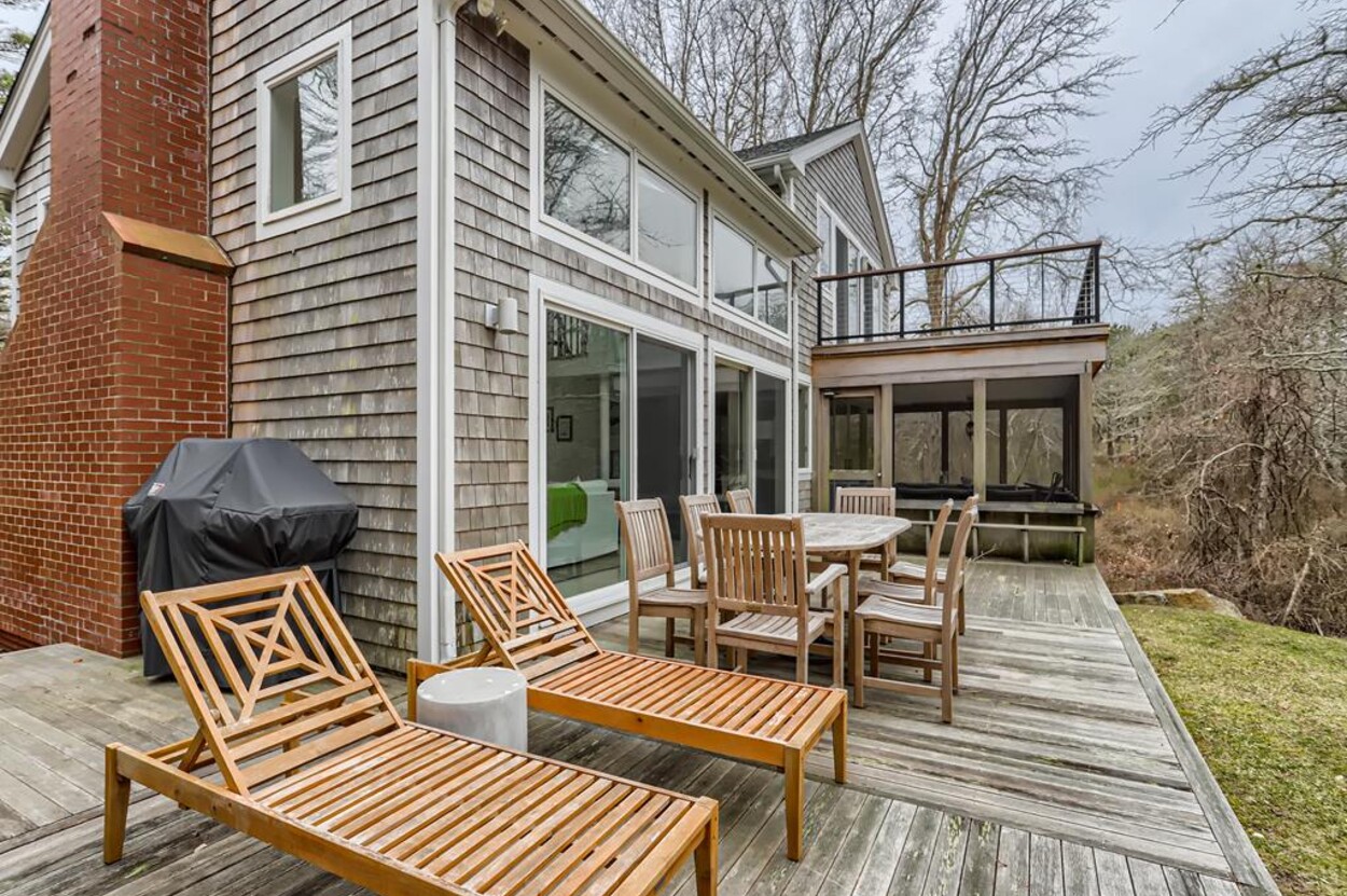 Tucked away off historic Tea Lane in Chilmark is this beautiful and spacious home abutting acres of conservation land.