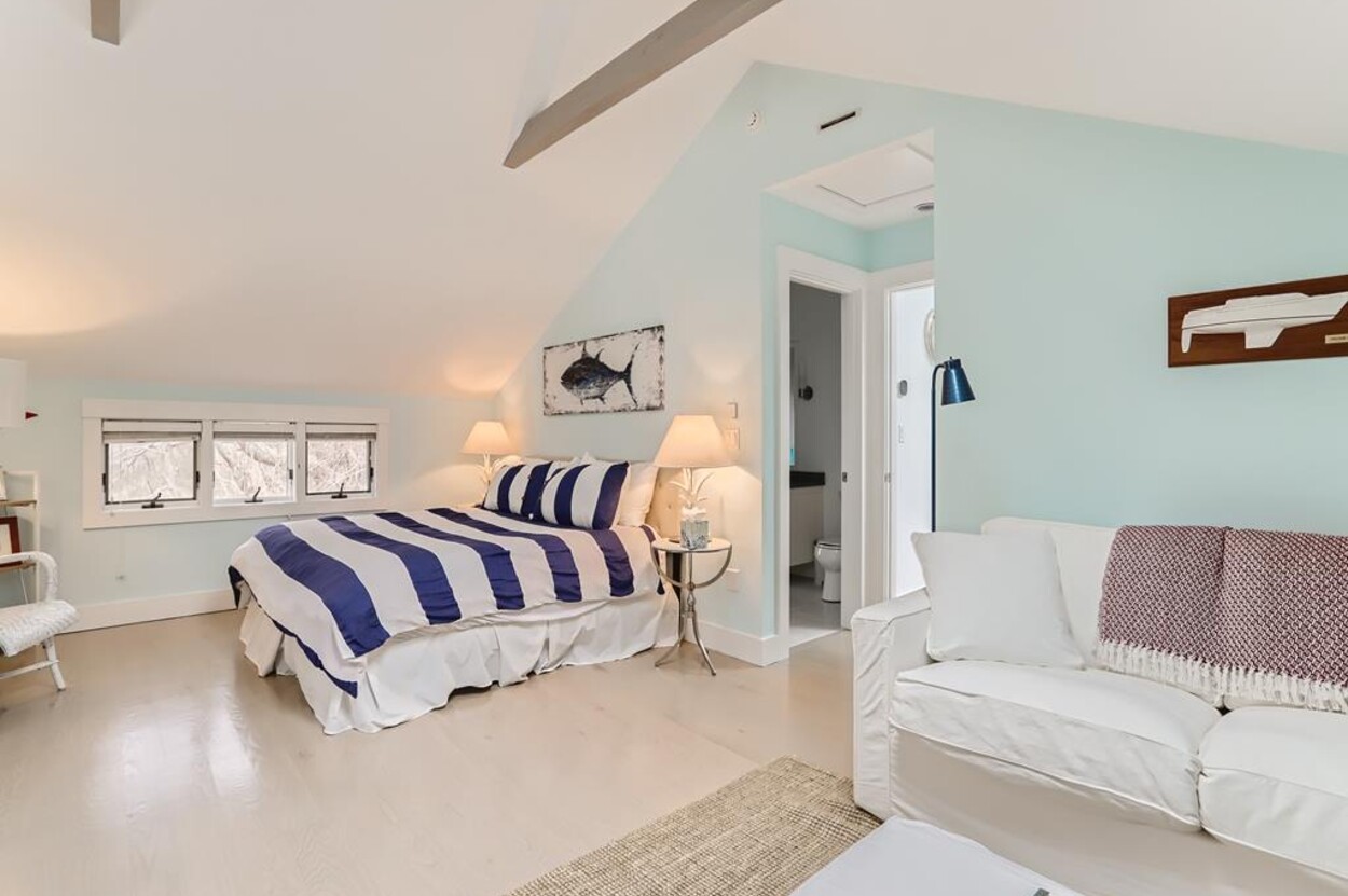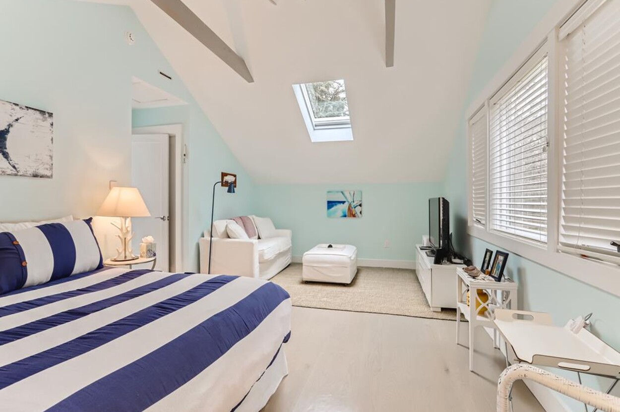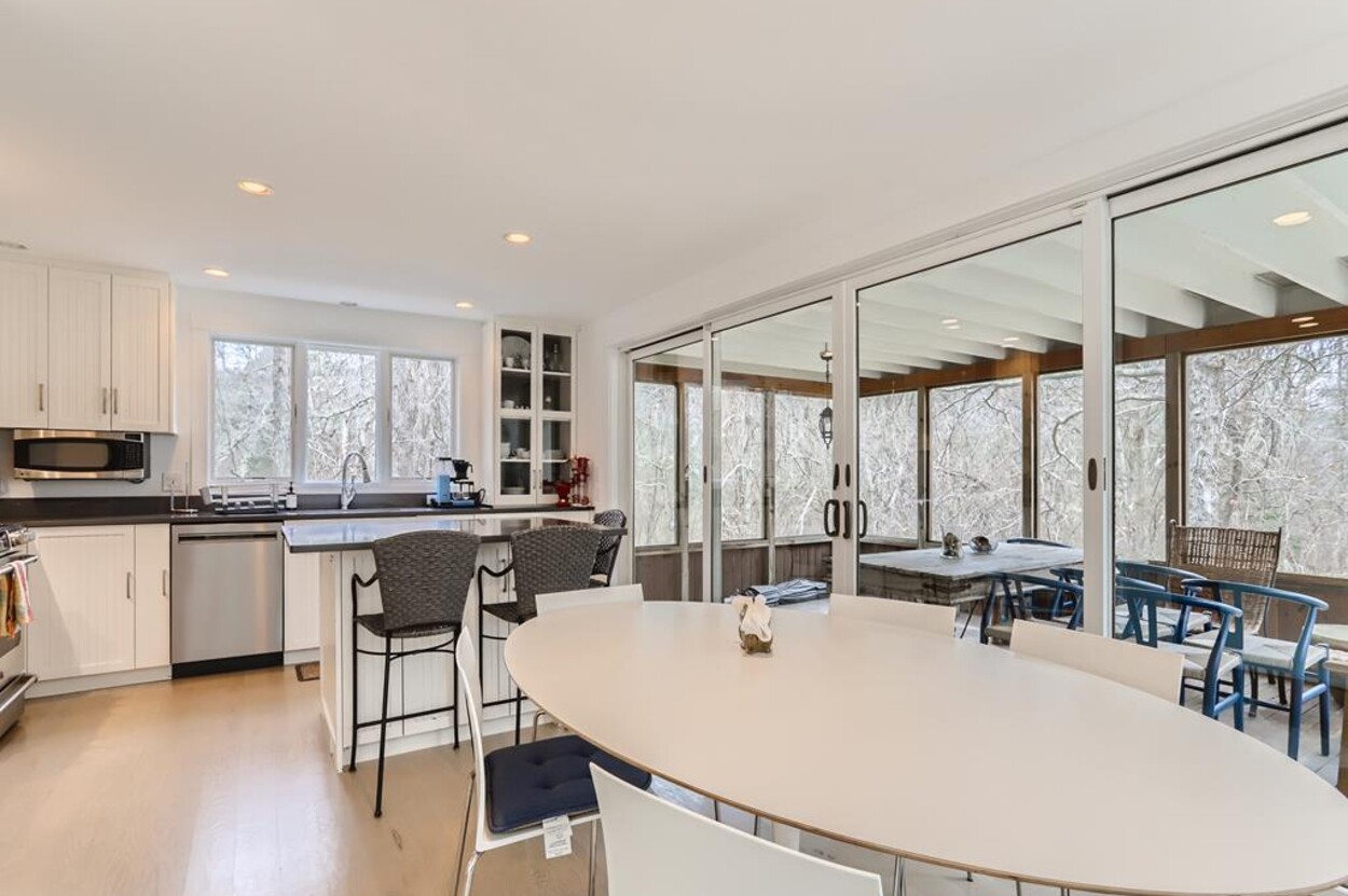 All the furnishings are light and bright and the compact modern well equipped kitchen has glass doors that open to the lovely screened in porch for summer dining.