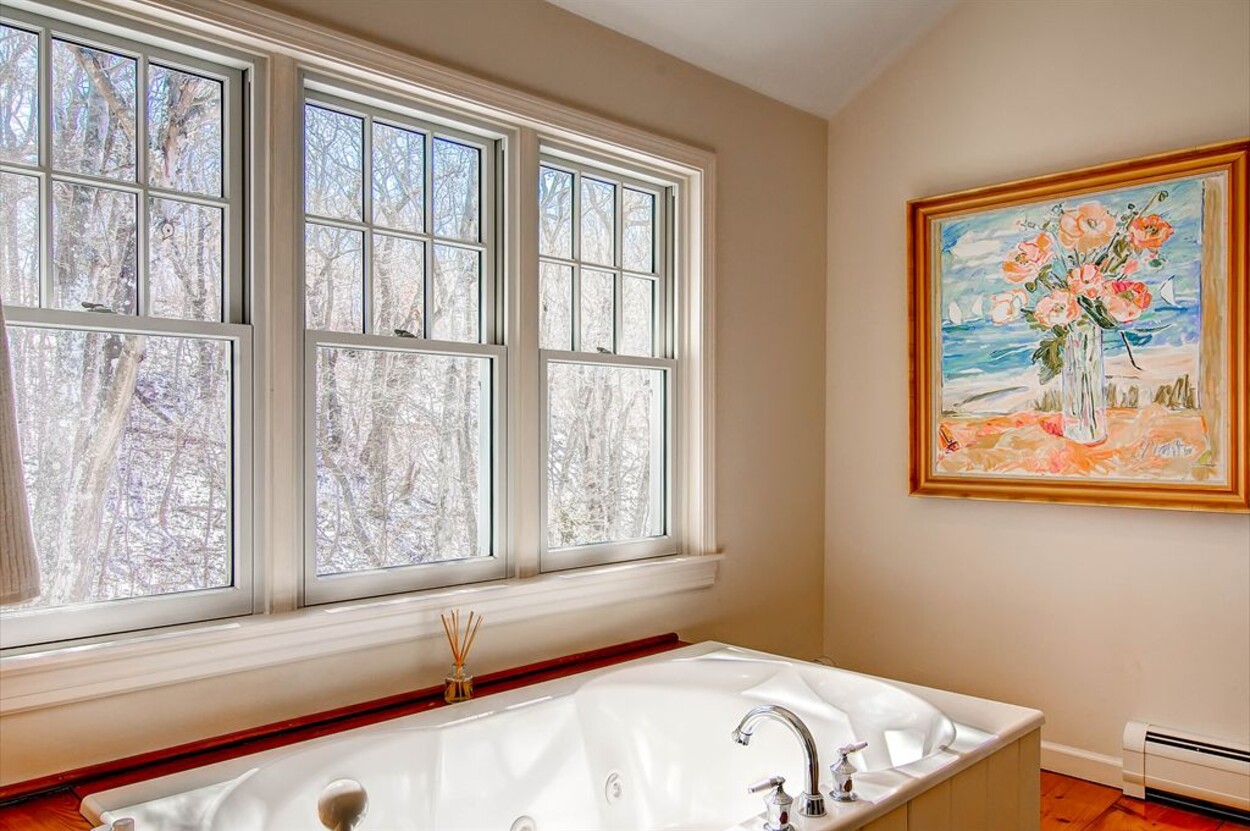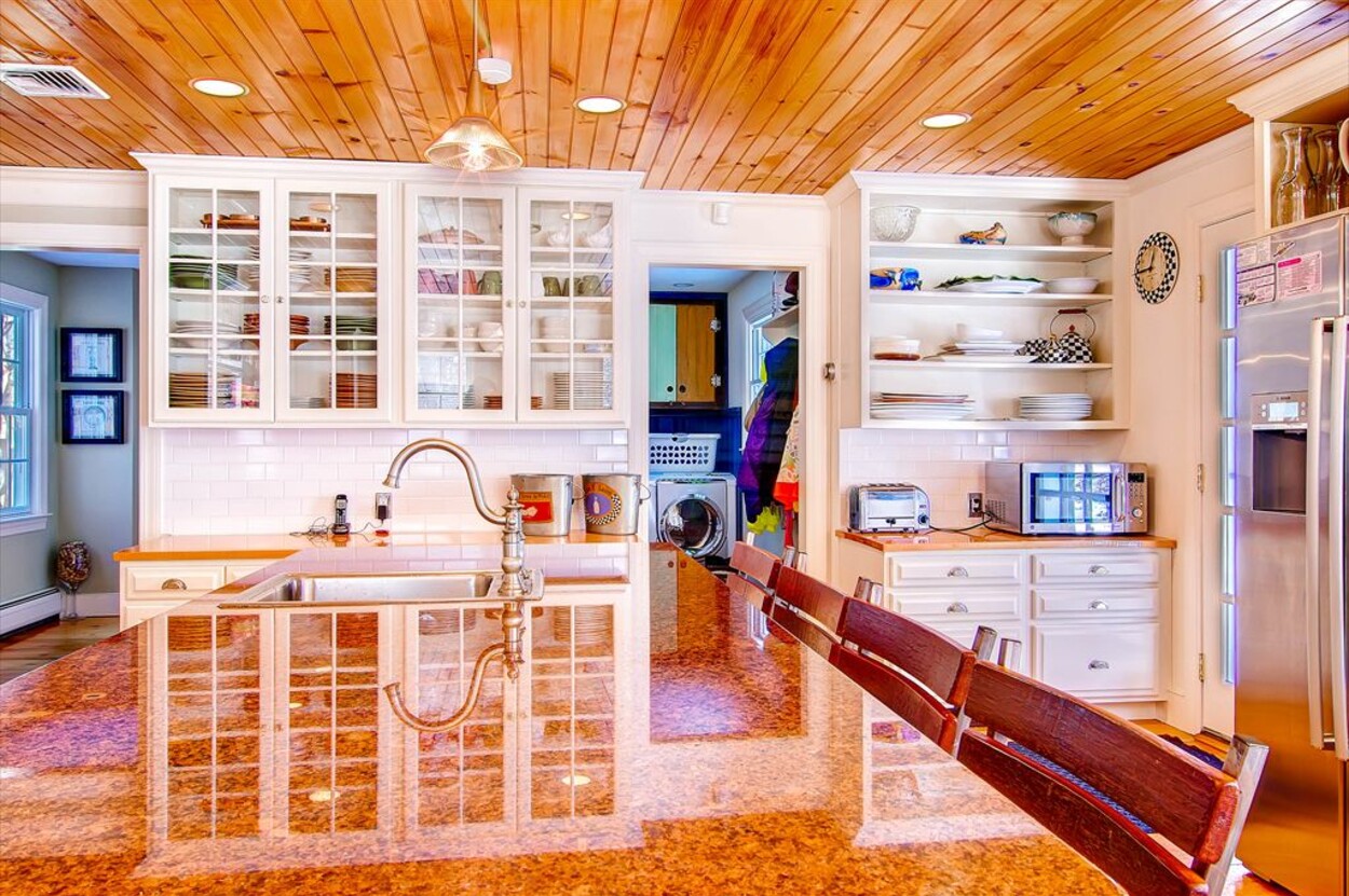 Gracious and elegant contemporary colonial home in close proximity to Lamberts Cove Beach. Beautifully appointed and newly furnished. Exceptional primary suite with Rumford fireplace, and luxurious bathroom with steam bath and jacuzzi. Gourmet kitchen with double Bosch dishwashers, breakfast nook and granite counters. Four additional bedrooms with bedding to accommodate any family configuration. Antiques and fine art. Stone patio and deck. Central air in primary and main living areas. All bedrooms have European split A/C units. Electric car charger installed.