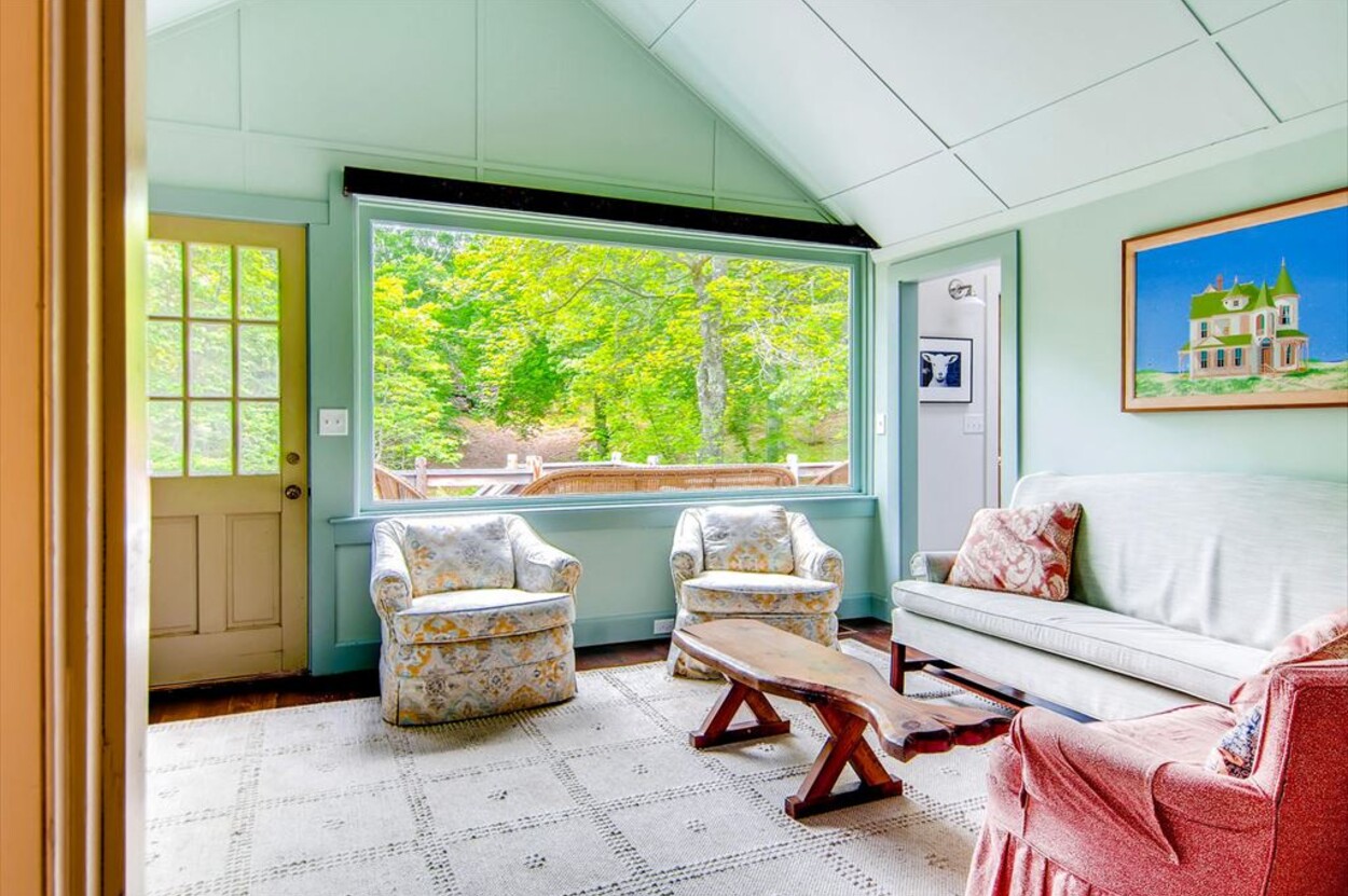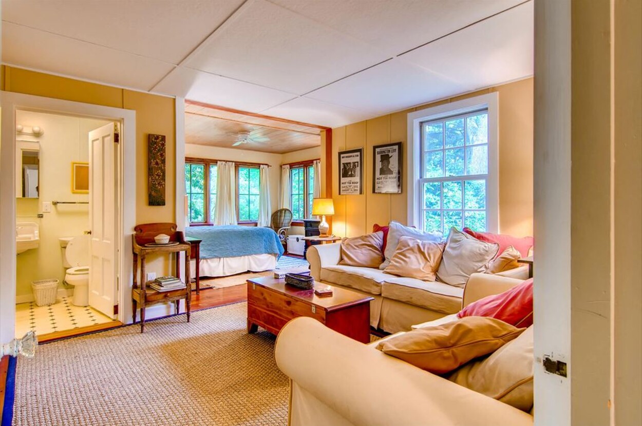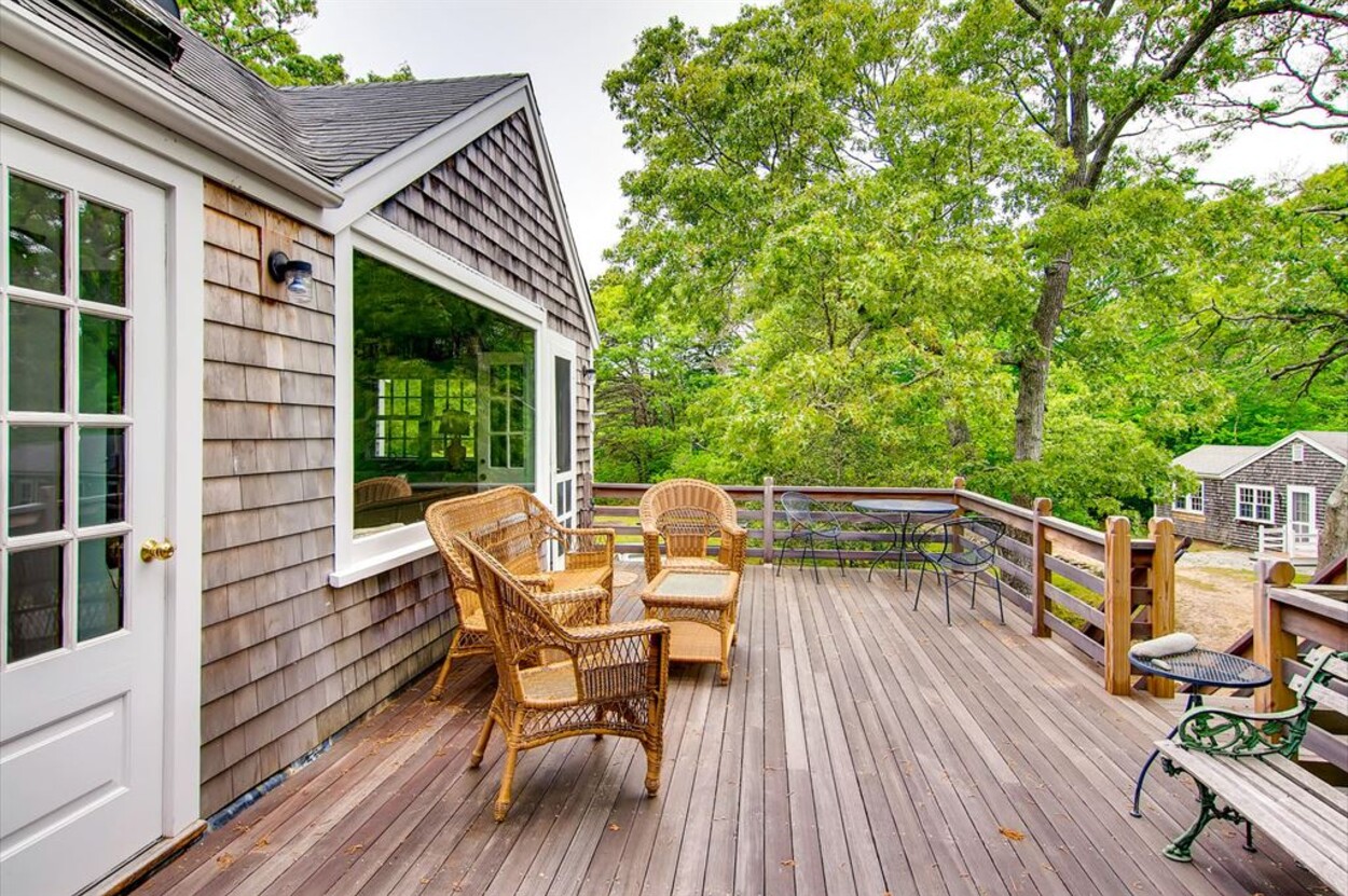 Delightful, newly renovated home just a few minutes from the beach. Down a private road, this charming very private home offers old world charm with updated style. House has central air conditioning, a well appointed cooks kitchen, and a second story deck. Living areas are nicely separated, surrounding a beautiful great room with stone fireplace, and vaulted ceilings. A short walk through the woods leads to private frontage on lovely Seths Pond, as well as walking access to the Land Bank access to beautiful Ice House Pond. Lamberts Cove is just a few minutes drive. The guest house offers three additional bedrooms, two bathrooms, a living room, and its own kitchen, a screened in porch and window AC units. This listing includes use of the Main House and Guest House. If interested in only renting the Main House please visit Property ID 133834.