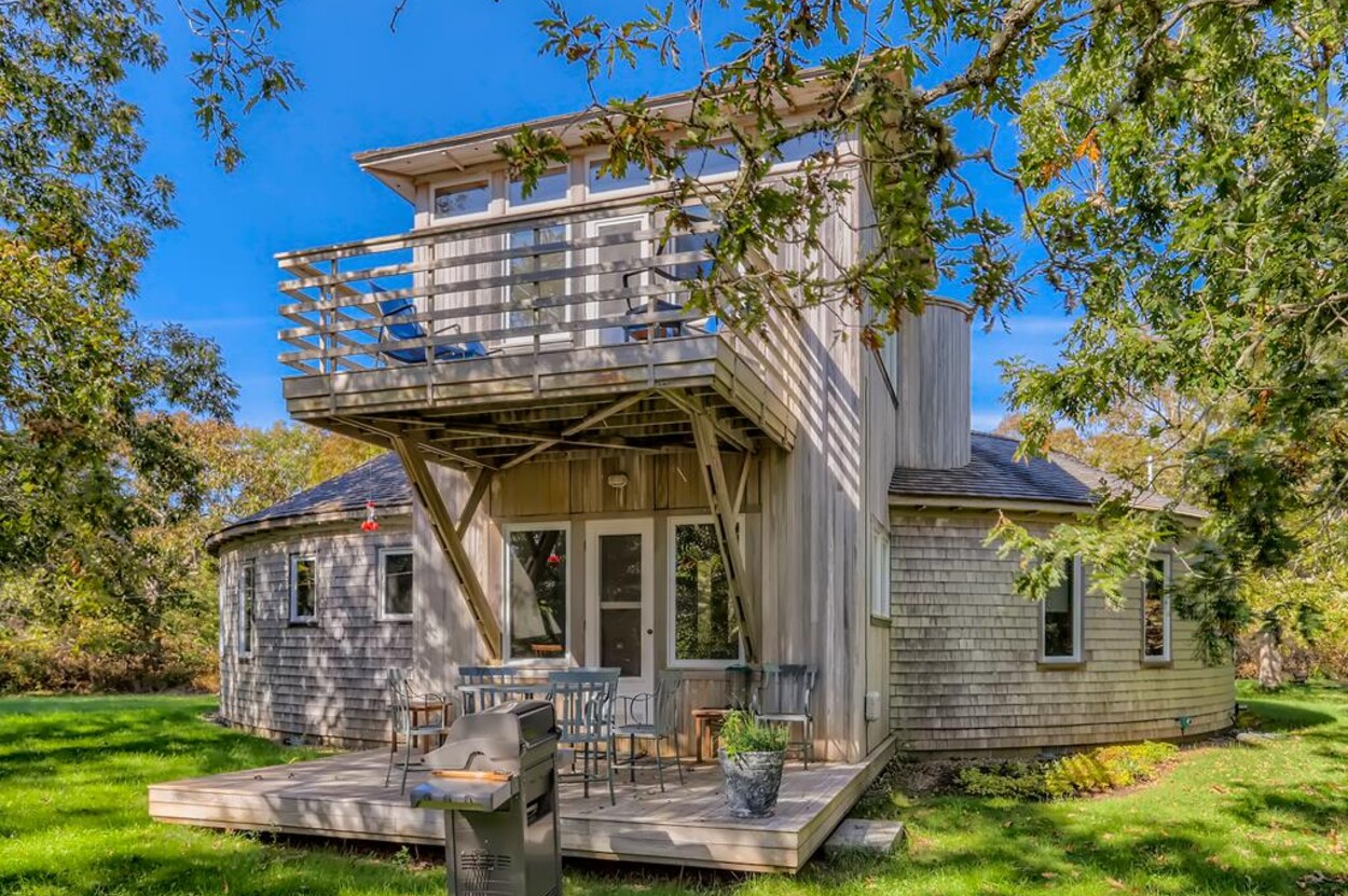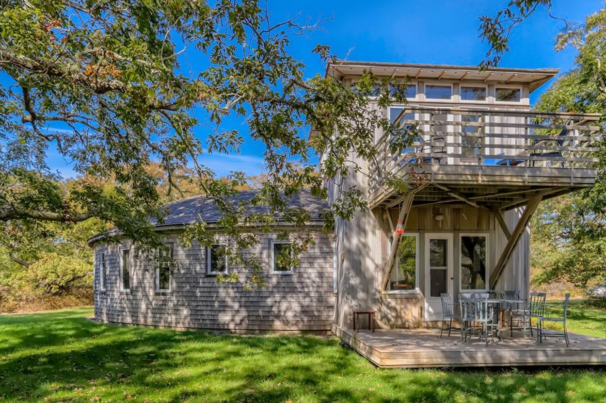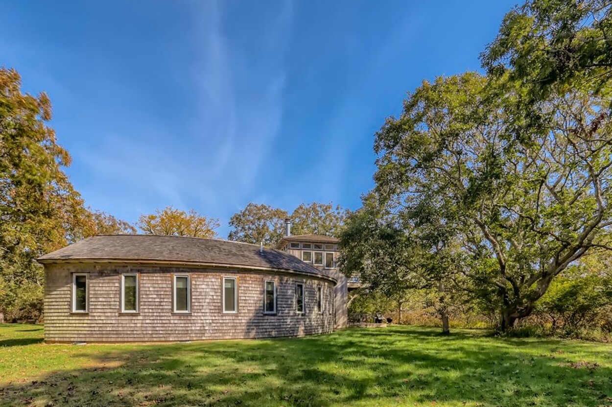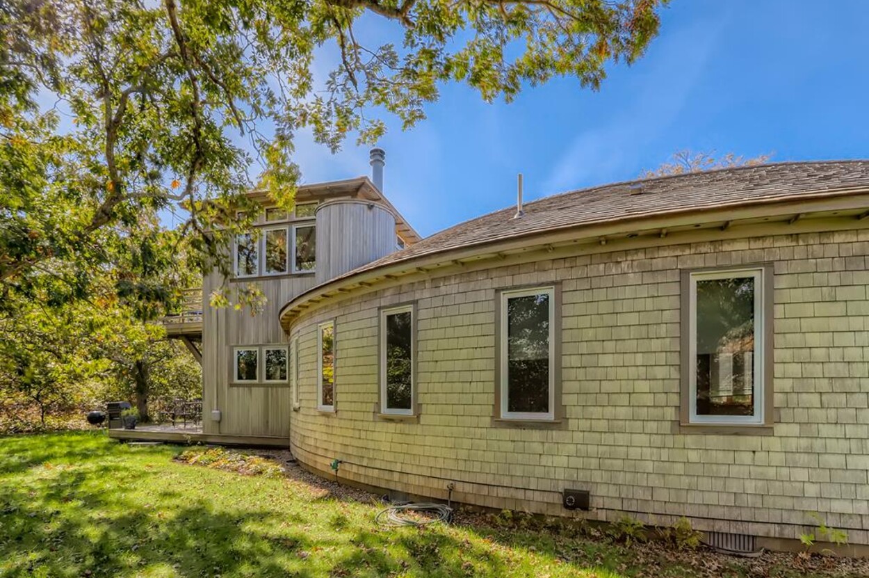 Unique yet fun design... 280 degree circular structure with beautiful gardens in the center. Well equipped and impeccably maintained this four bedroom home is private but has close access to the coveted and private Black Point Beach.