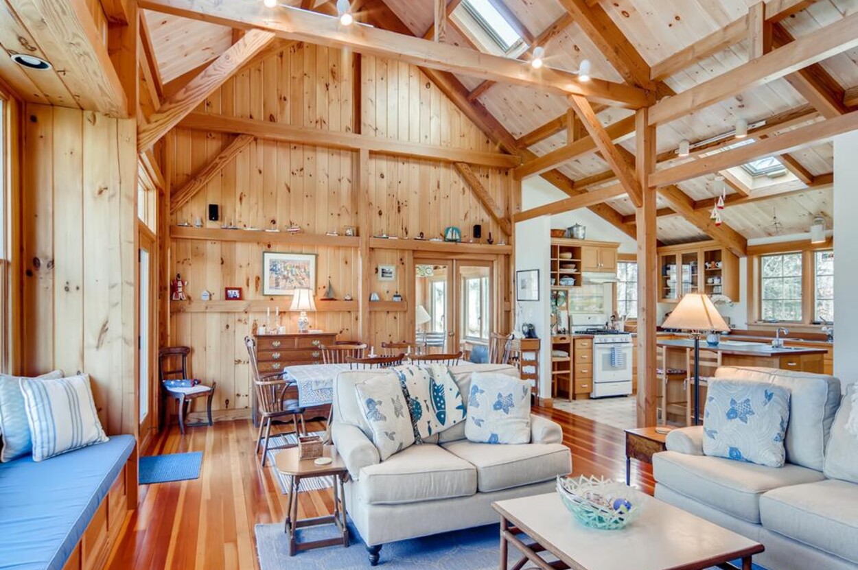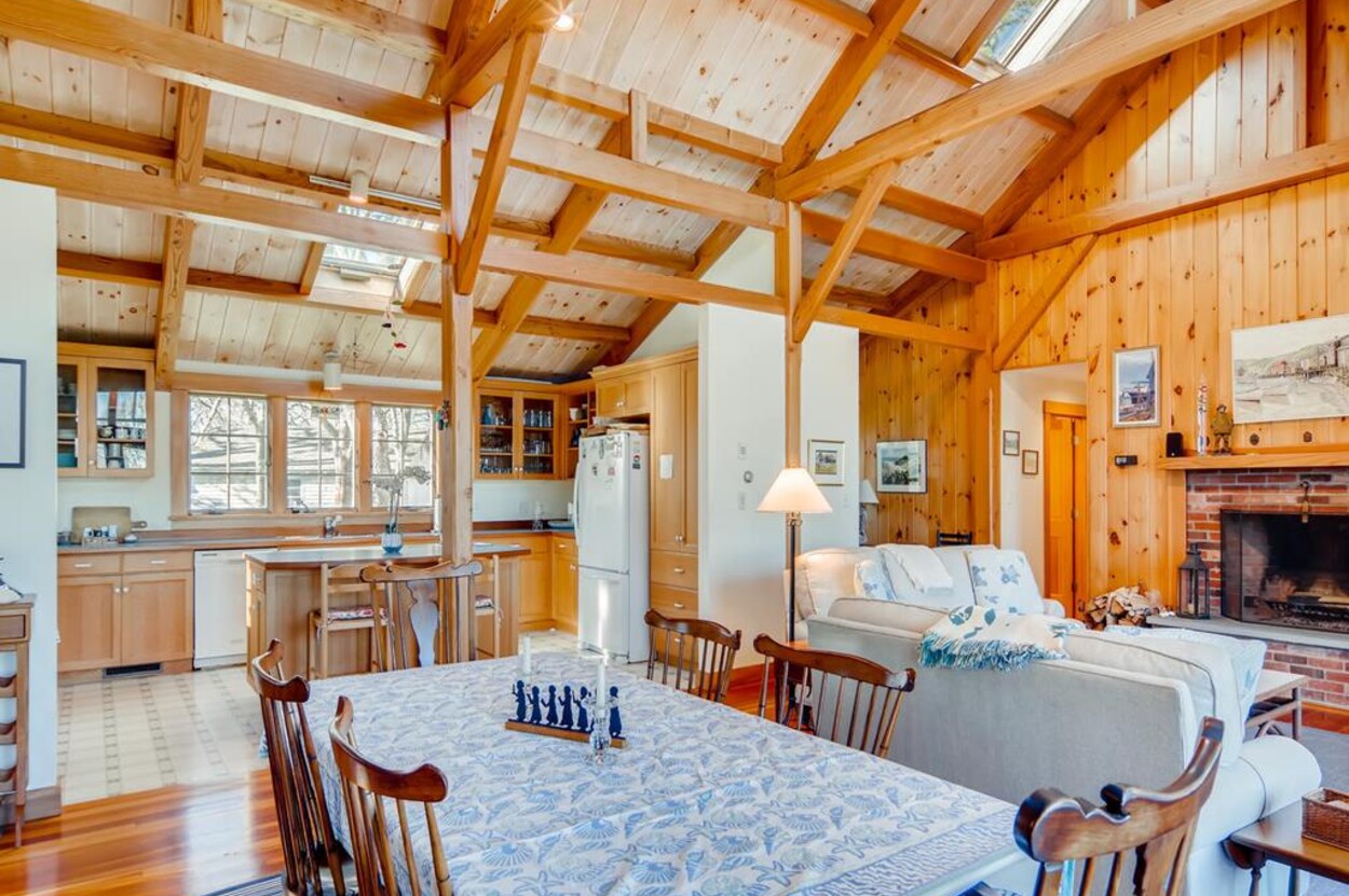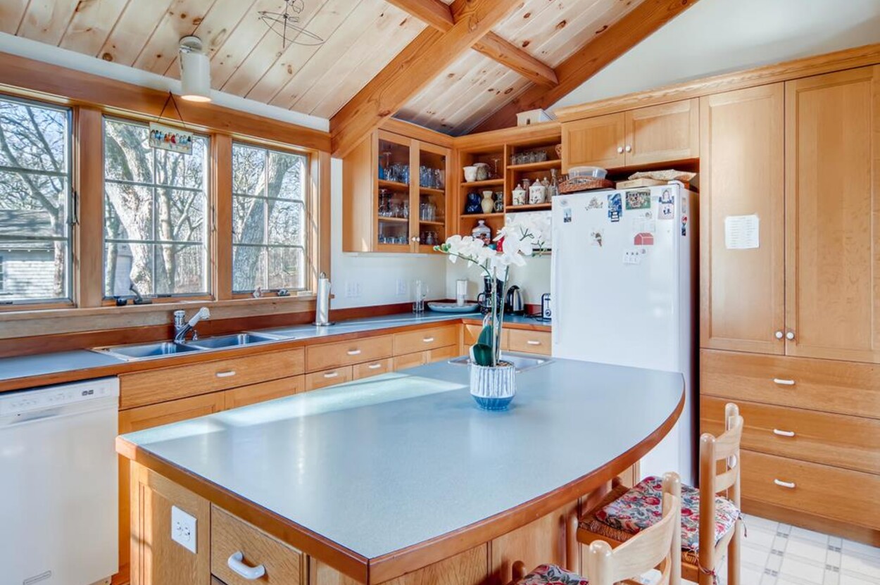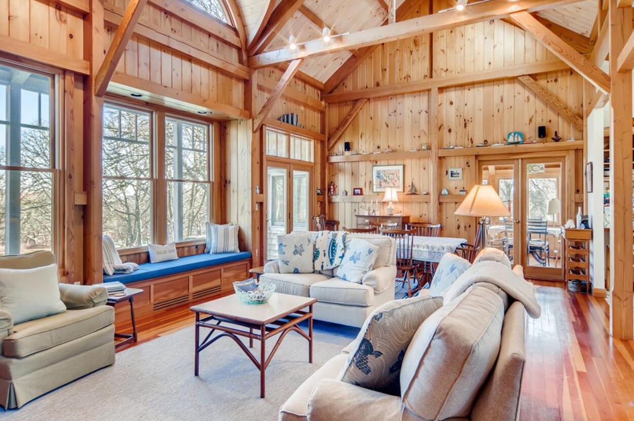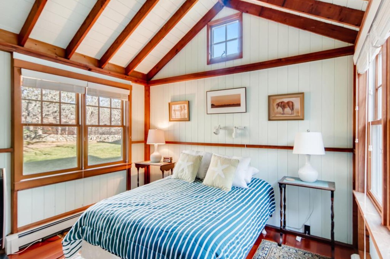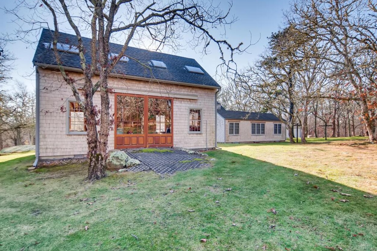 Generous and welcoming home in North Abels Hill. Centered by an open kitchen living and dining area with cathedral celings and views of the rolling lawn, there are several other areas of the house to gather including the sun room. Six bedrooms, four of which are on the main level ensure room and comfort for everybody and outside there is extensive decking and a lovely meadows. Walk or drive to the coveted Abels Hill beach and tennis is just steps away. . . The detached barn/studio is another charming aspect for socializing or enjoying some privacy. . .This is a house that suggests wonderful recreation, relaxation and family time. . .
