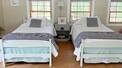 Classic Vineyard summer home with sprawling lawn, and broad, dramatic views of West Tisbury Great Pond. This well maintained, antique home offers a glimpse of simpler times. Main house enjoys views from almost every room, simple, but tasteful decor, and a full length deck, from which one can enjoy pond and pastoral view. Main house has four bedrooms, and bright open kitchen, dining and sitting room. Carriage house has additional living space and can accommodate four. This property offers extended family a quintessential Vineyard experience.