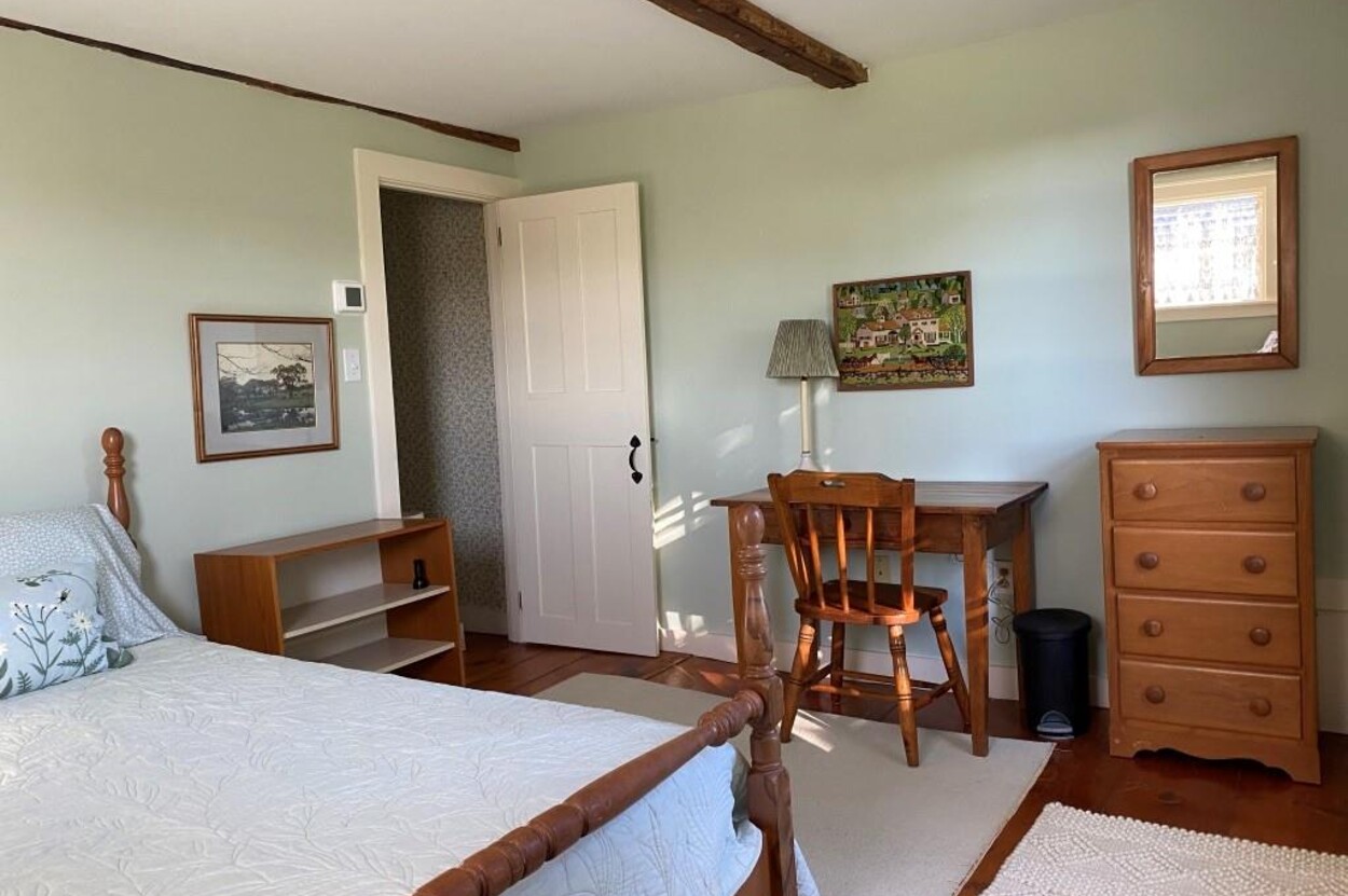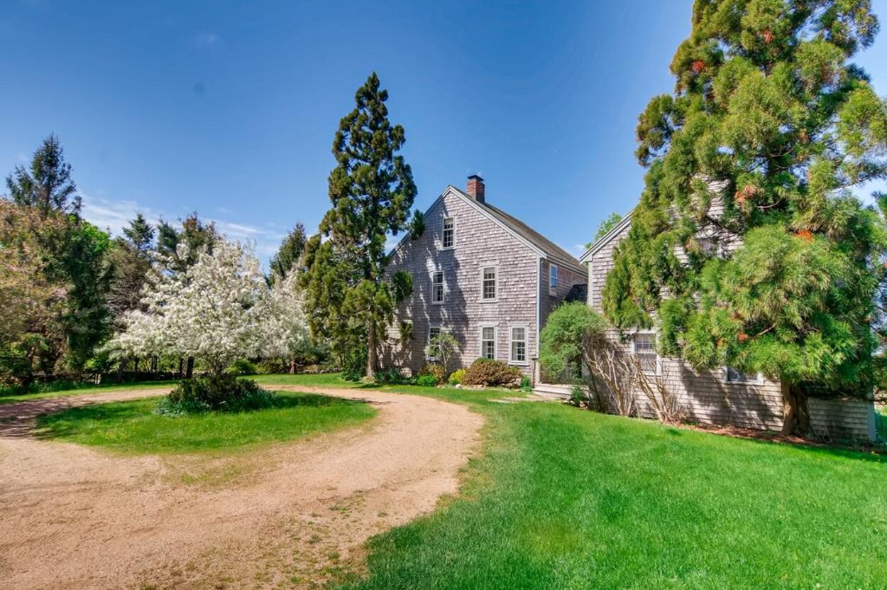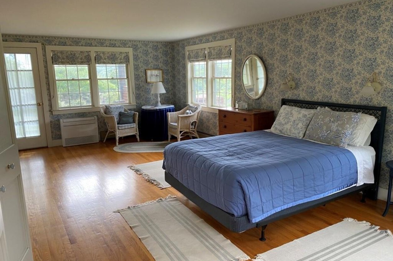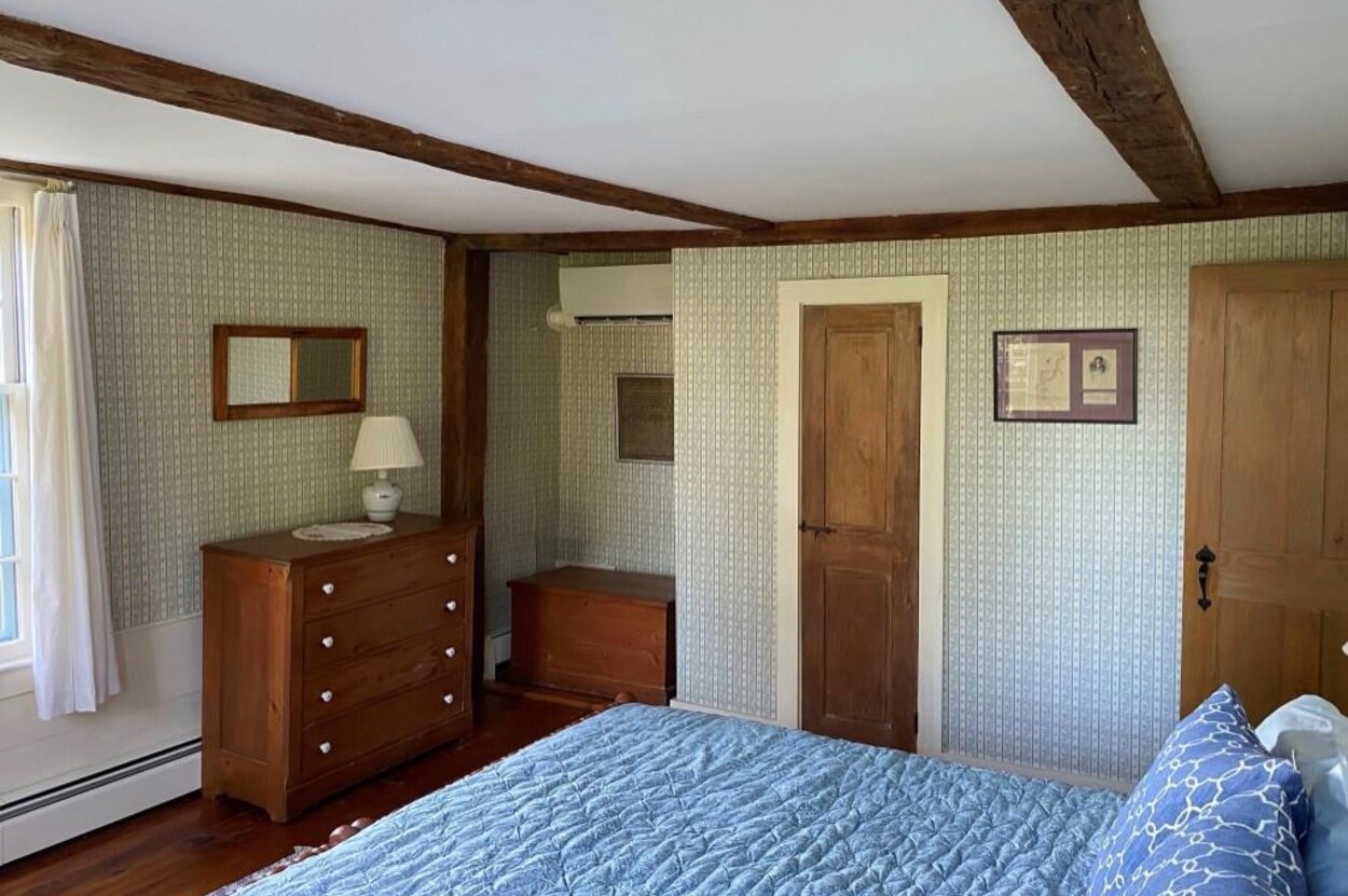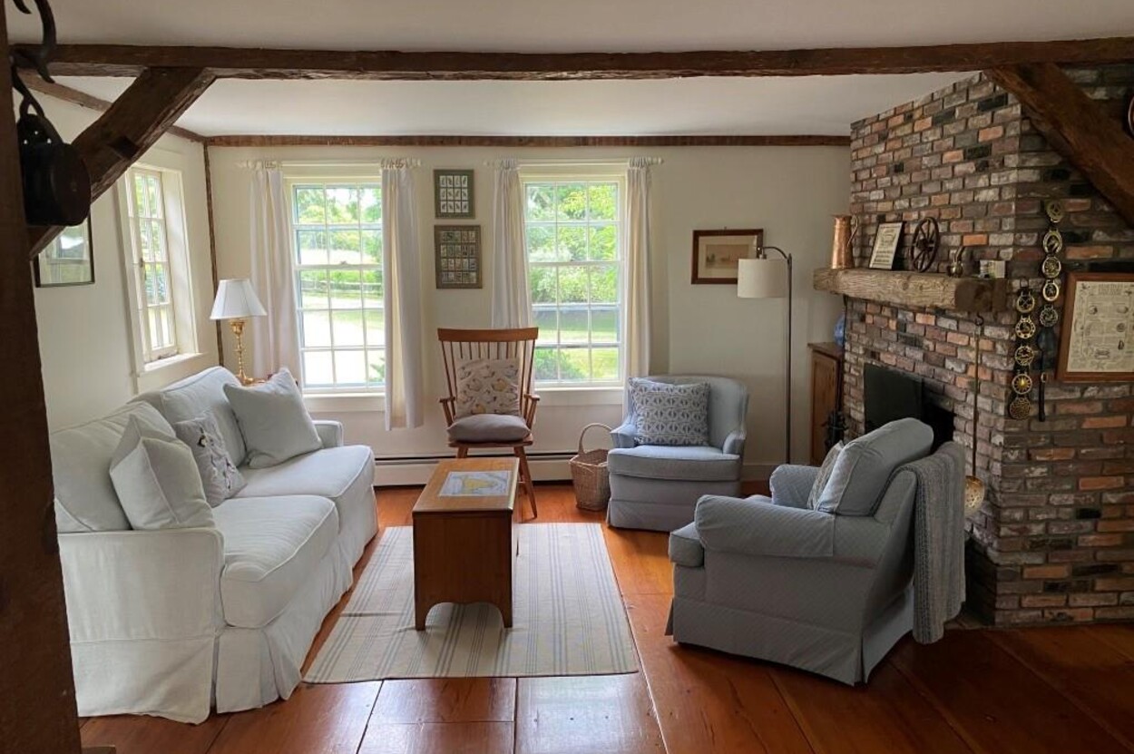 This historic farmhouse built in 1730 is fully renovated inside with charming English country style and outside with multiple seating areas overlooking flowering gardens, and also comes with a beach key to private Quansoo in Chilmark! There is a total of 5 bedrooms: a primary bedroom with private bath, sitting area, and porch on the main floor; 1 king bedroom, 1 queen, 1 full bedroom with shared bath upstairs; and a large open 3rd floor playroom/TV room with 2 trundles and a day bed. An open plan living room with 2 seating areas, dining for 8, and kitchen is in the original farmhouse, while the added modern wing has another open living room with cathedral ceilings, two equipped desk areas, sunset deck and full bath. Fully airconditioned, with premium internet and media service, this is a great vacation home for a multi generational family looking for space to spread out and a central Chilmark location off south road with wonderful beach access. Beach chairs, umbrellas and beach towels provided. Enjoy the two patio seating areas plus a wisteria gazebo, vegetable garden, English flower garden, herb garden, outdoor dining with umbrella, BBQ grill and hammock. Flexible on turnover day. Please inquire for more details.
