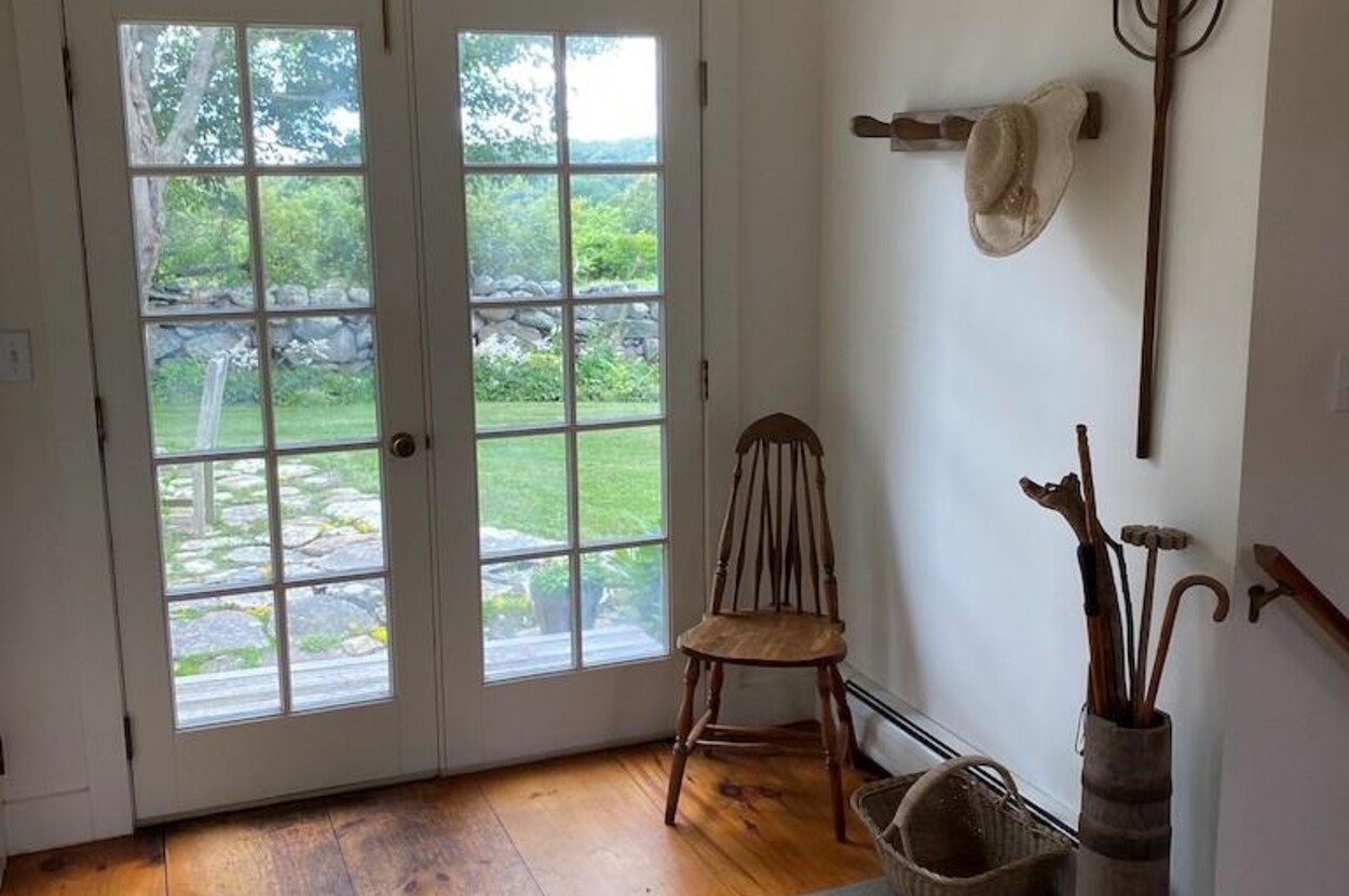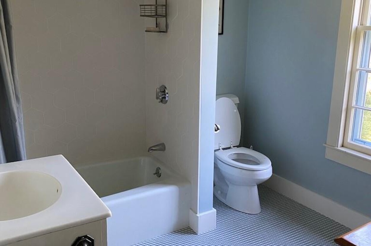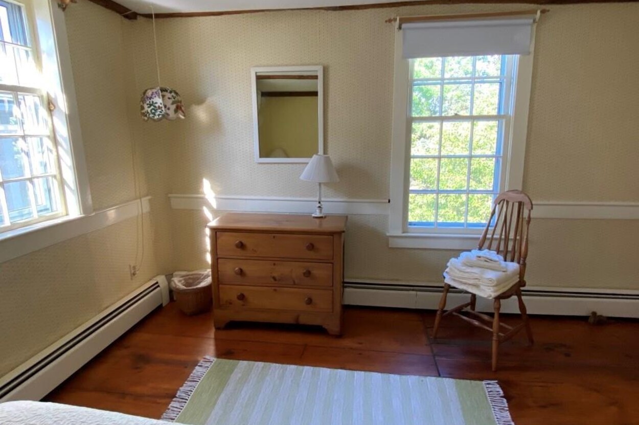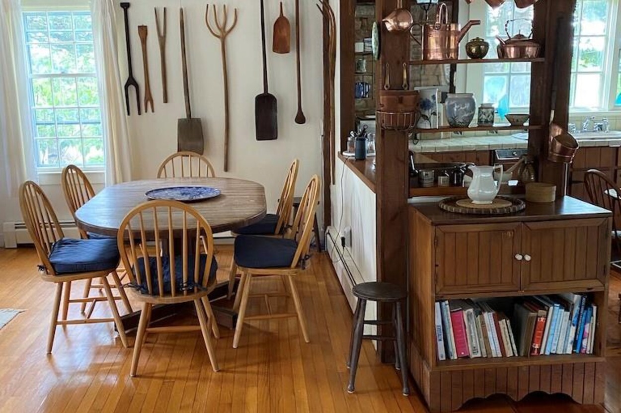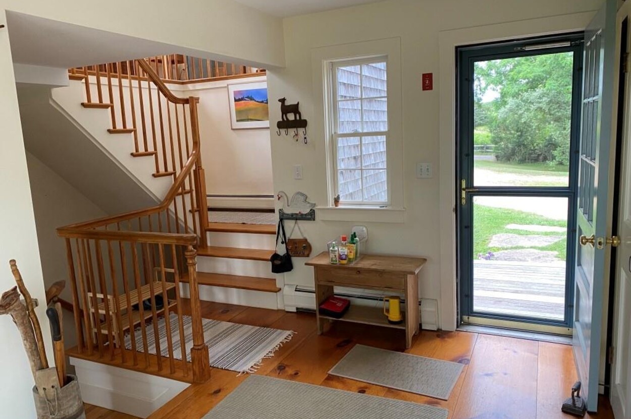This historic farmhouse built in 1730 is fully renovated inside with charming English country style and outside with multiple seating areas overlooking flowering gardens, and also comes with a beach key to private Quansoo in Chilmark! There is a total of 5 bedrooms: a primary bedroom with private bath, sitting area, and porch on the main floor; 1 king bedroom, 1 queen, 1 full bedroom with shared bath upstairs; and a large open 3rd floor playroom/TV room with 2 trundles and a day bed. An open plan living room with 2 seating areas, dining for 8, and kitchen is in the original farmhouse, while the added modern wing has another open living room with cathedral ceilings, two equipped desk areas, sunset deck and full bath. Fully airconditioned, with premium internet and media service, this is a great vacation home for a multi generational family looking for space to spread out and a central Chilmark location off south road with wonderful beach access. Beach chairs, umbrellas and beach towels provided. Enjoy the two patio seating areas plus a wisteria gazebo, vegetable garden, English flower garden, herb garden, outdoor dining with umbrella, BBQ grill and hammock. Flexible on turnover day. Please inquire for more details.