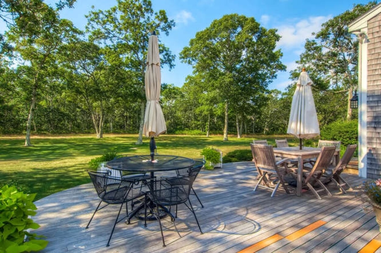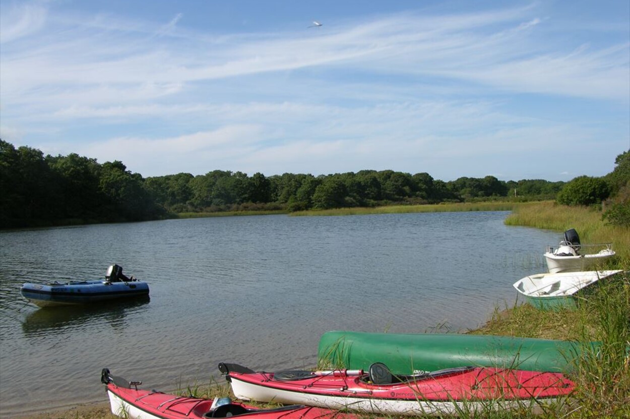 Large open gourmet kitchen, dining room, living room with door to sunny deck and door to screened in porch. TV room/office. Outside shower, large grassy yard and short drive or walk to the association landing on Oyster Great Pond where you can leave a boat, paddleboard or kayak and enjoy access to the South Shore barrier beach. 2 week minimum rental