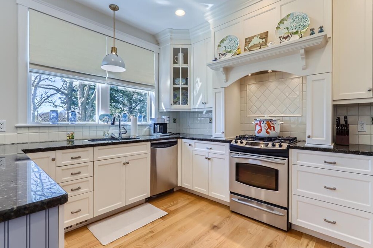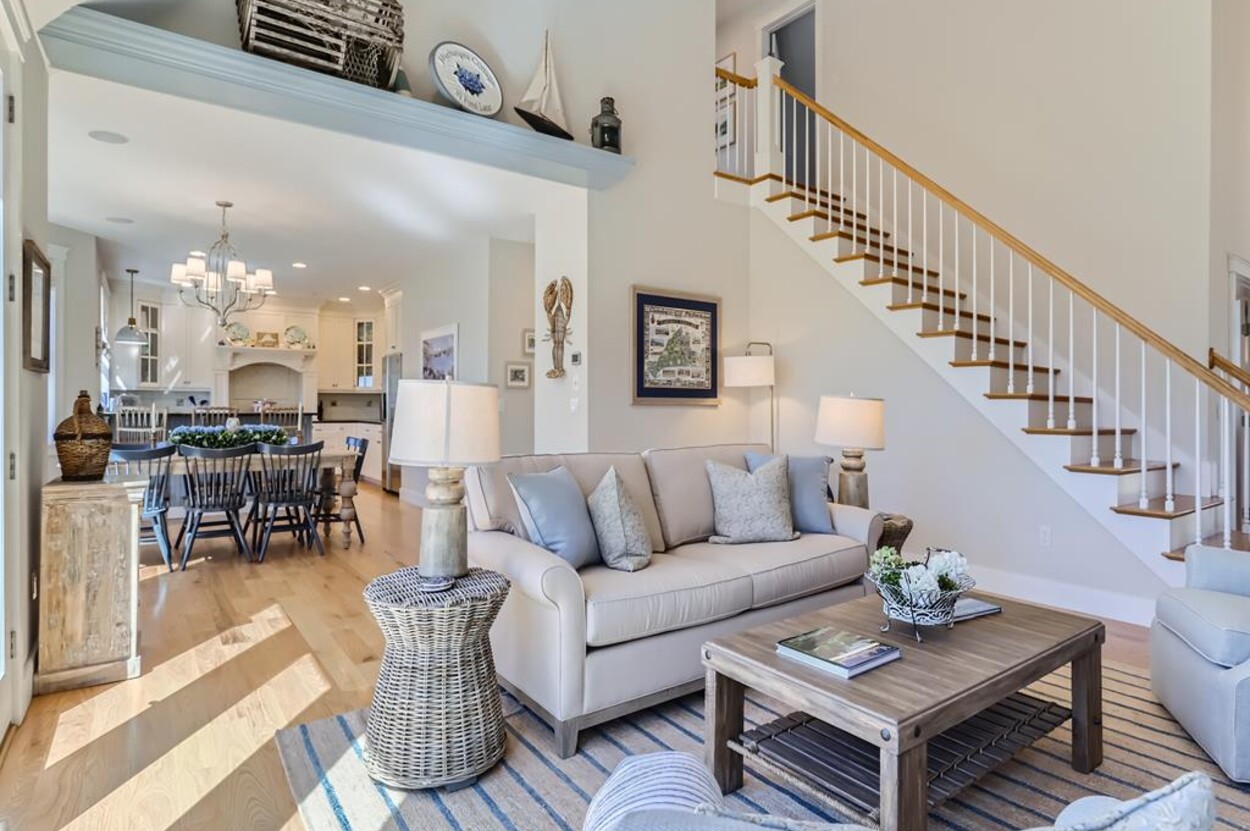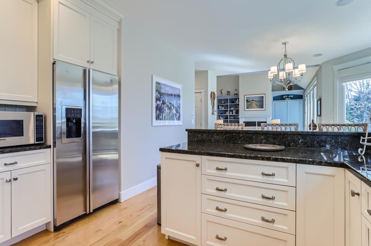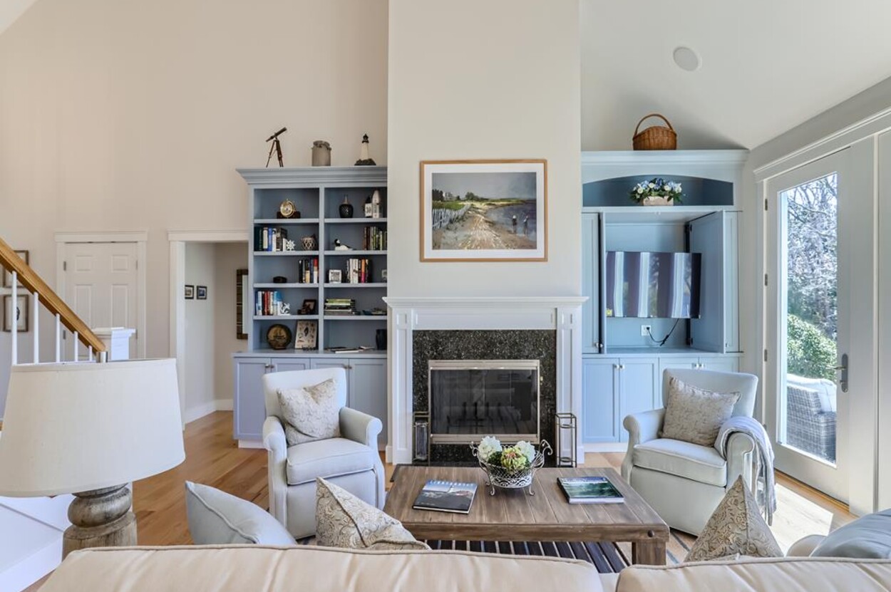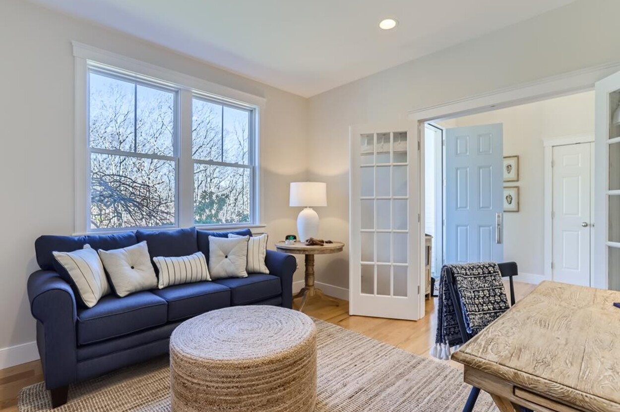 Pretty pond views and elegance in West Tisbury at this gracious and impeccable three bedroom home is in the Deep Bottom Association. On the main floor, the house offers a generous, bright, open living and dining space and well appointed kitchen, a study with bonus sleeping space, a full bathroom and a large luxurious primary bedroom with en-suite bathroom. The nicely furnished back deck features a seating and dining area and views of Deep Bottom Pond and the rolling pastoral fields of the farm beyond. The second floor has two guest rooms, one is set up with bunk beds and the second room has a queen sized bed and views of the pond and meadow. Additional features include; first floor laundry, an outdoor shower, and a large sloping lawn for playing or relaxing in Adirondack chairs enjoying the sunset. The Deep Bottom Association has easy access to the bike path, walking trails, Long Point Beach and use of a shared dock on Tisbury Great Pond offering wonderful opportunities for superb fishing, and family fun on the water with kayaks or paddle boarding.