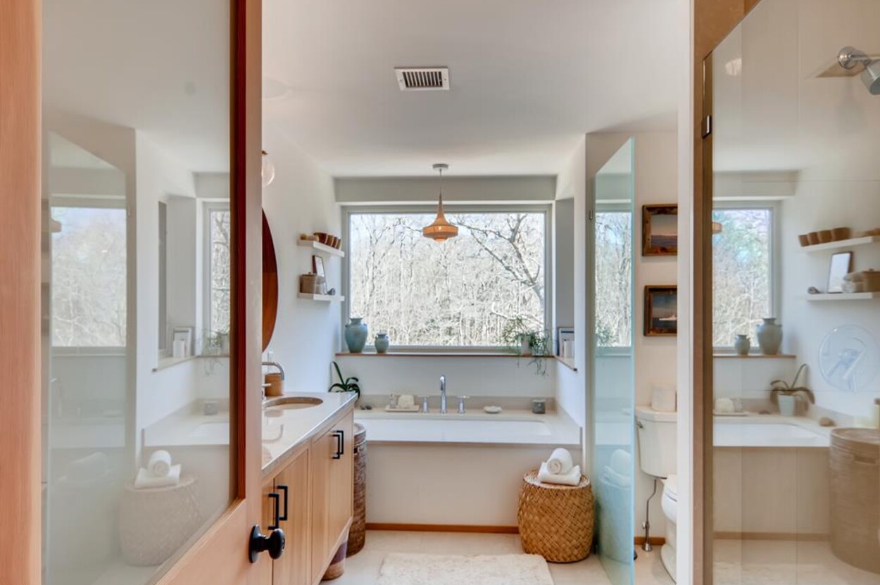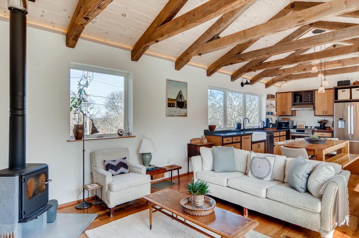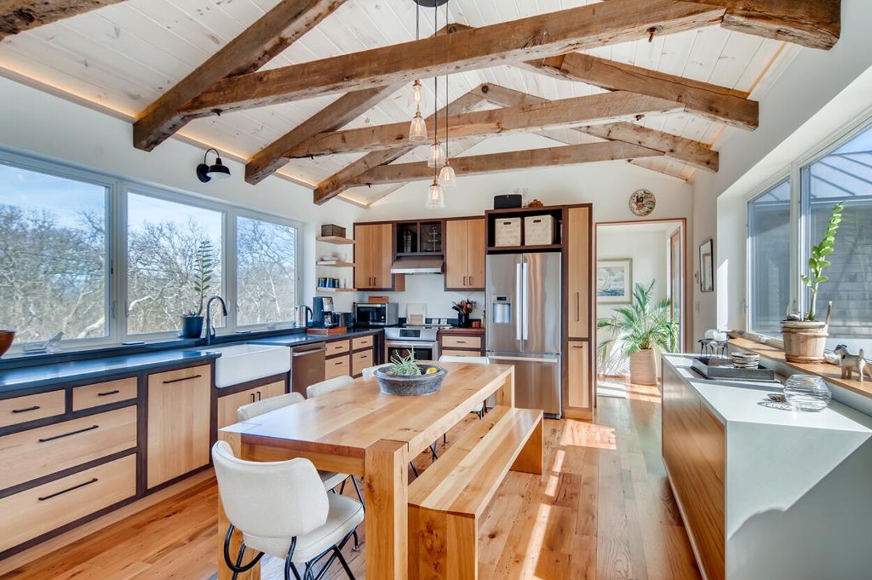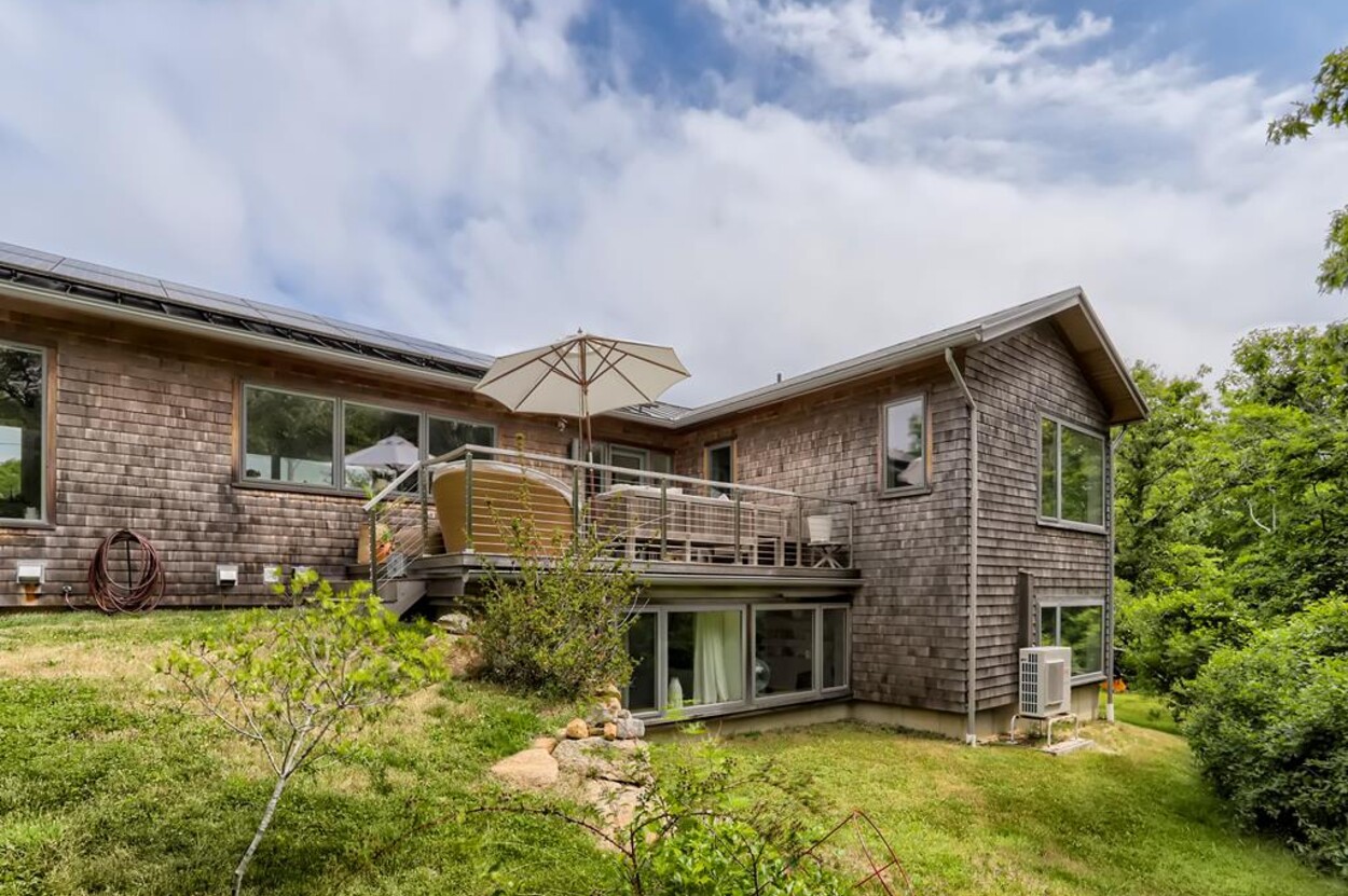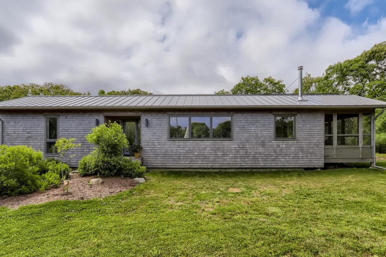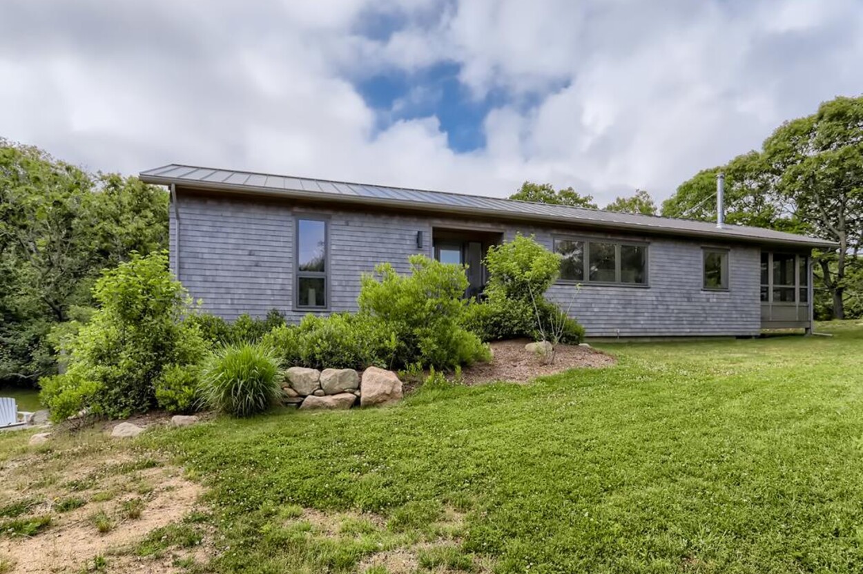 Just a short bike ride to Aquinnah beaches and circle this stunning passive solar contemporary home tucked off of Lighthouse Road offers 3 bedrooms, 2 ½ baths. This beautiful Aquinnah home has many windows and lots of light. New and pristine, the thoughtful layout main level includes an open concept kitchen/living/dining room, screened porch as well as open porch a full suite and a powder room. The lower level consists of two additional bedrooms that share a bath and a large open sitting room. This home includes access to Philbin Beach, Lobsterville Beach, and Menemsha Pond. This home is tastefully furnished and is ready for you to enjoy your Martha’s Vineyard vacation. Newly installed car charging station.
