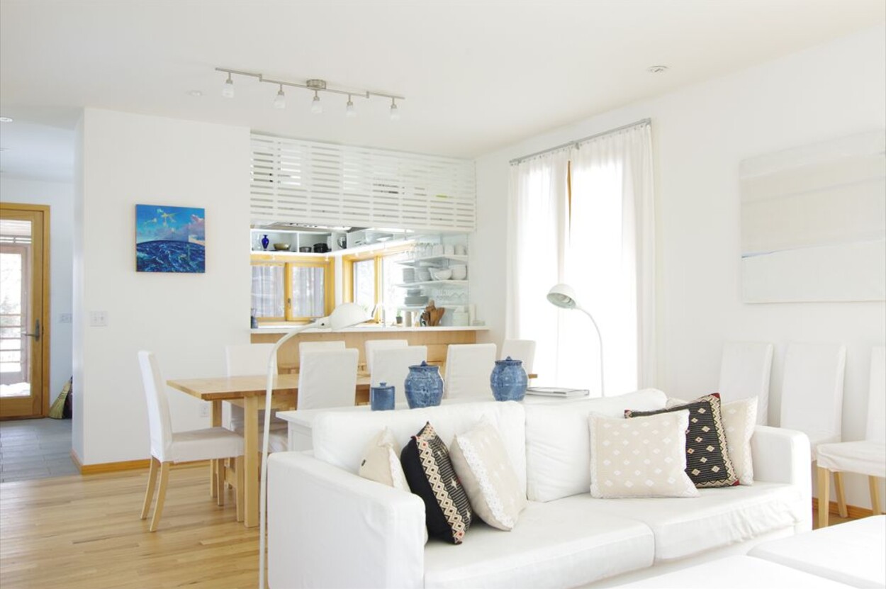Eco friendly modern home located in North Abels Hill. Open floor plan flooded with natural light. Passes provided for association tennis as well as South Abels Hill Beach. Private location, close to both Alley s General store and Chilmark town center. 2 week minimum rental