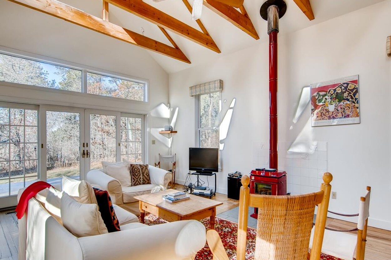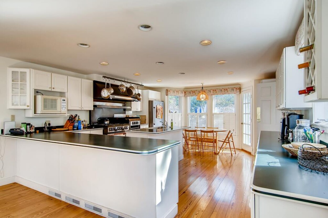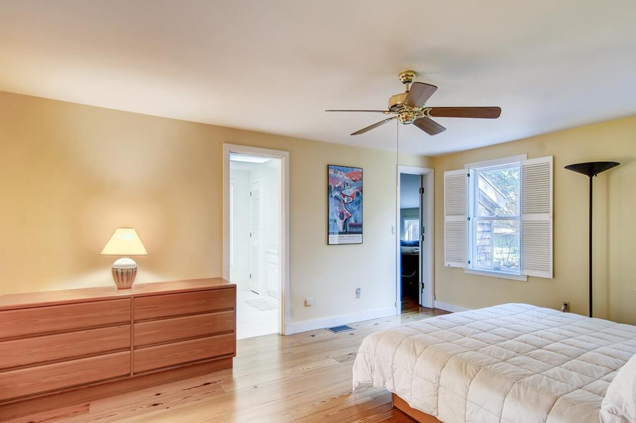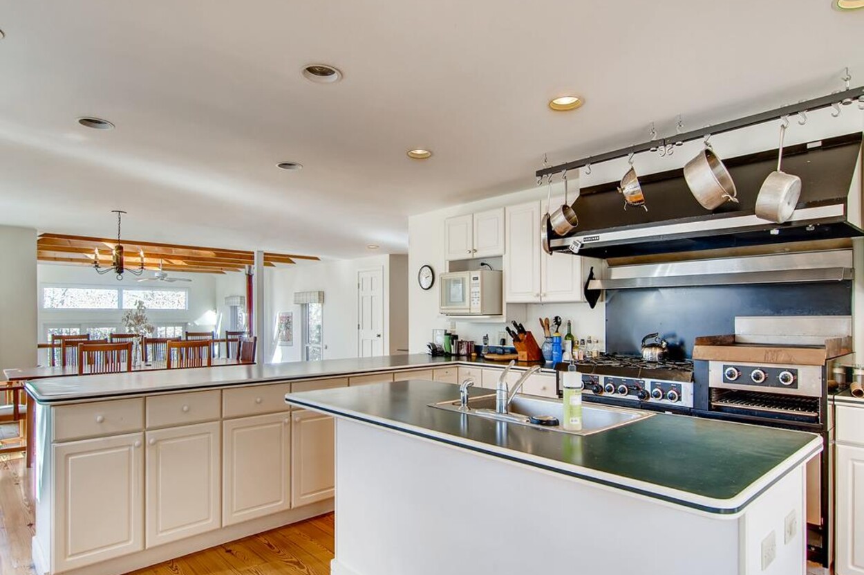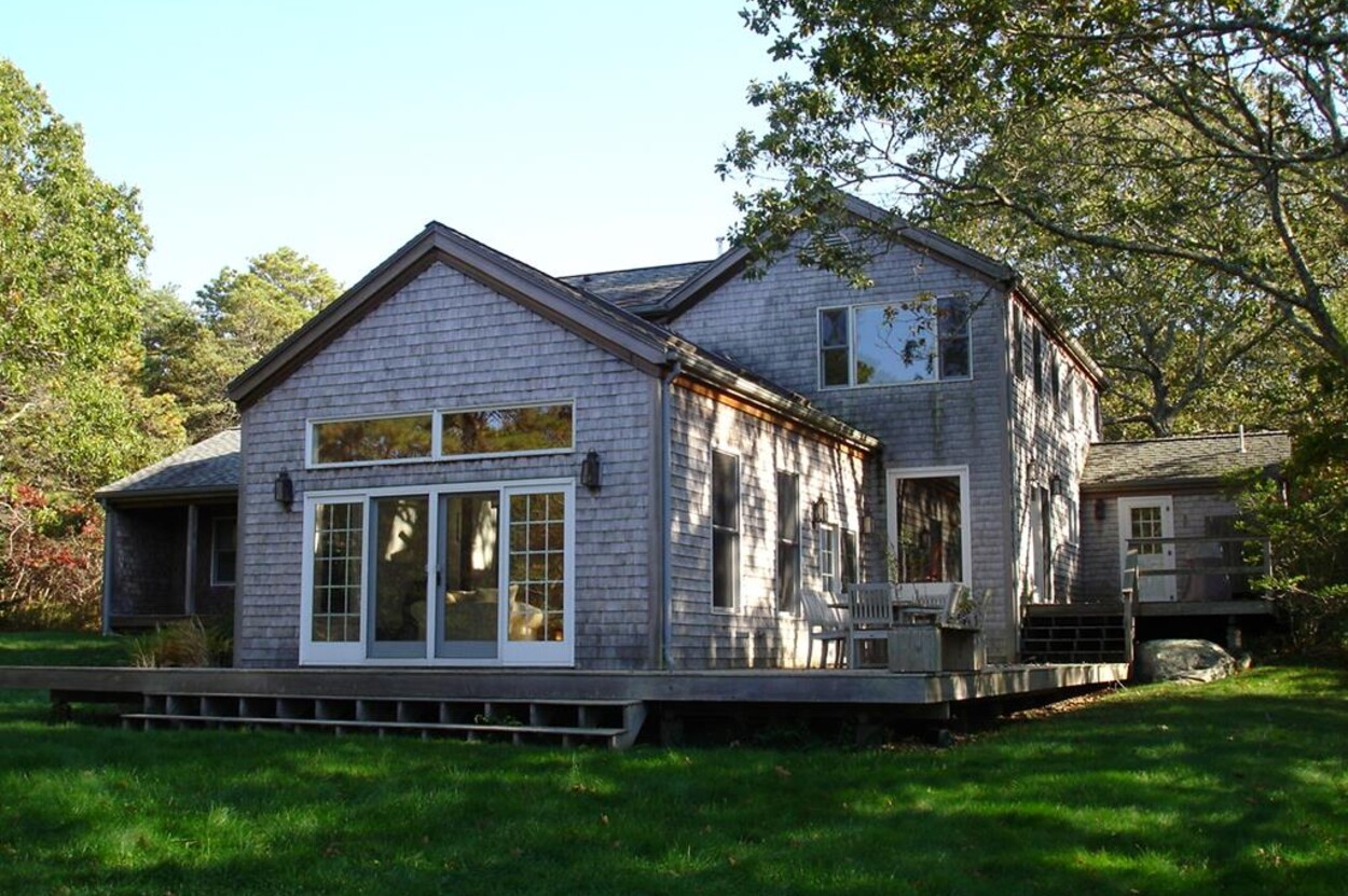 This well maintained spacious home is located off Tea Lane in the heart of Chilmark with access to the coveted Lucy Vincent and Squibnocket beaches. This 4 bedroom 3.5 bath home has an open plan kitchen dining and living room. The sunken living room is large and bright with cathedral ceilings and sliders opening to the deck overlooking the grassy yard. There is a king primary suite on the first floor complete with walk in closet and a work space. Upstairs there are 3 more bedrooms, a bathroom, and a TV room. Enjoy privacy and the outdoors on this lovely property with nearby walking trails.