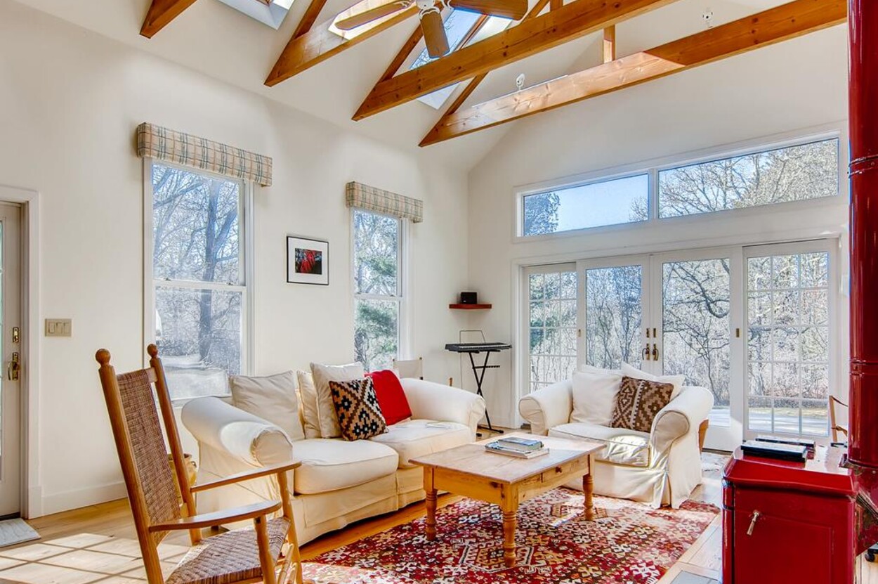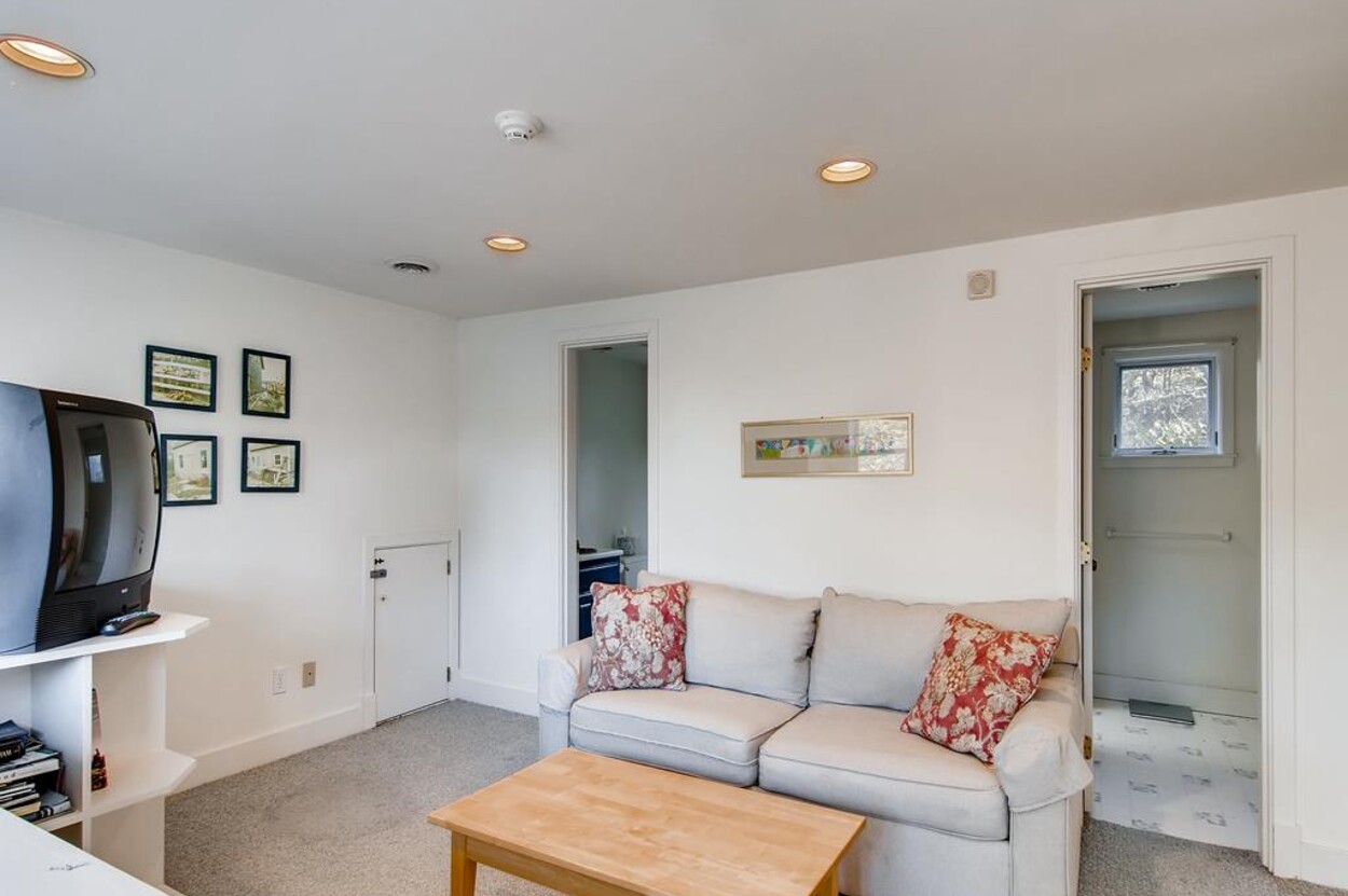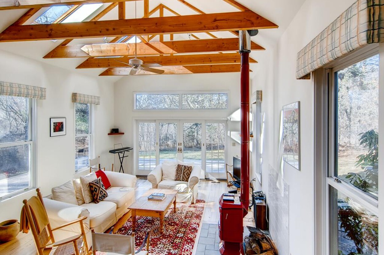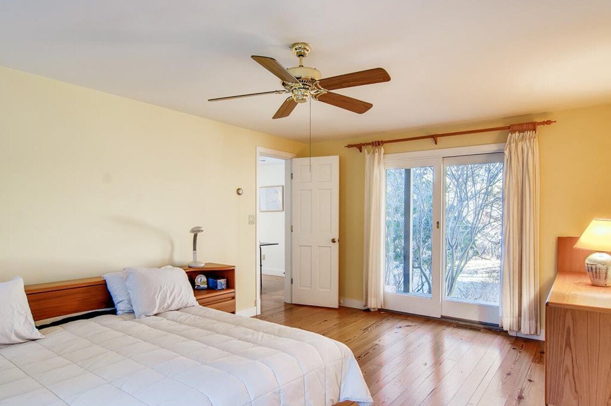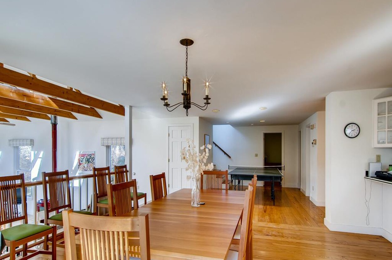 This well maintained spacious home is located off Tea Lane in the heart of Chilmark with access to the coveted Lucy Vincent and Squibnocket beaches. This 4 bedroom 3.5 bath home has an open plan kitchen dining and living room. The sunken living room is large and bright with cathedral ceilings and sliders opening to the deck overlooking the grassy yard. There is a king primary suite on the first floor complete with walk in closet and a work space. Upstairs there are 3 more bedrooms, a bathroom, and a TV room. Enjoy privacy and the outdoors on this lovely property with nearby walking trails.