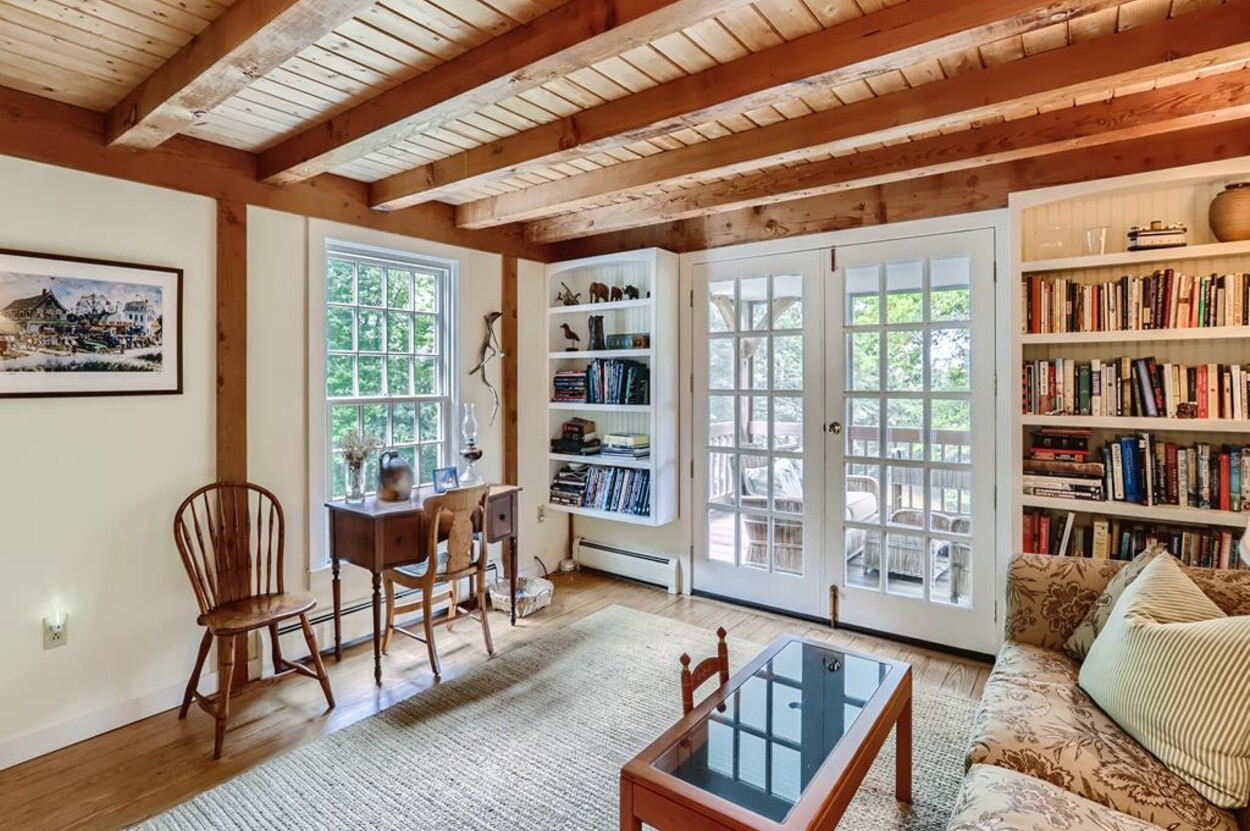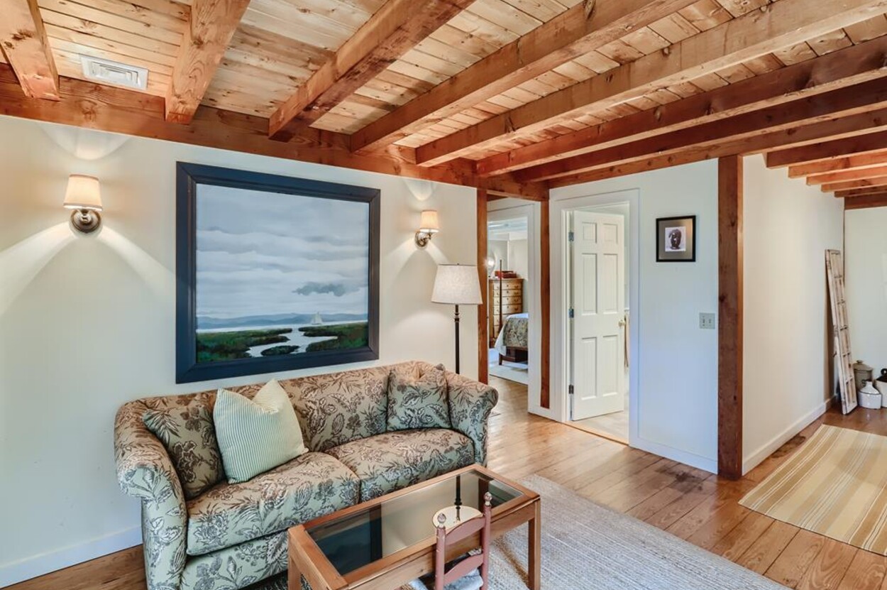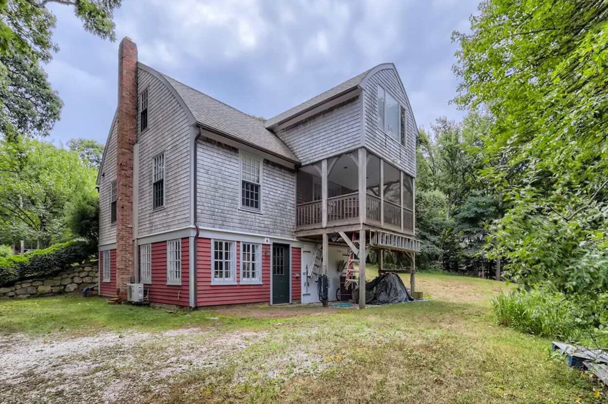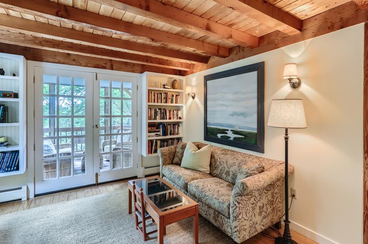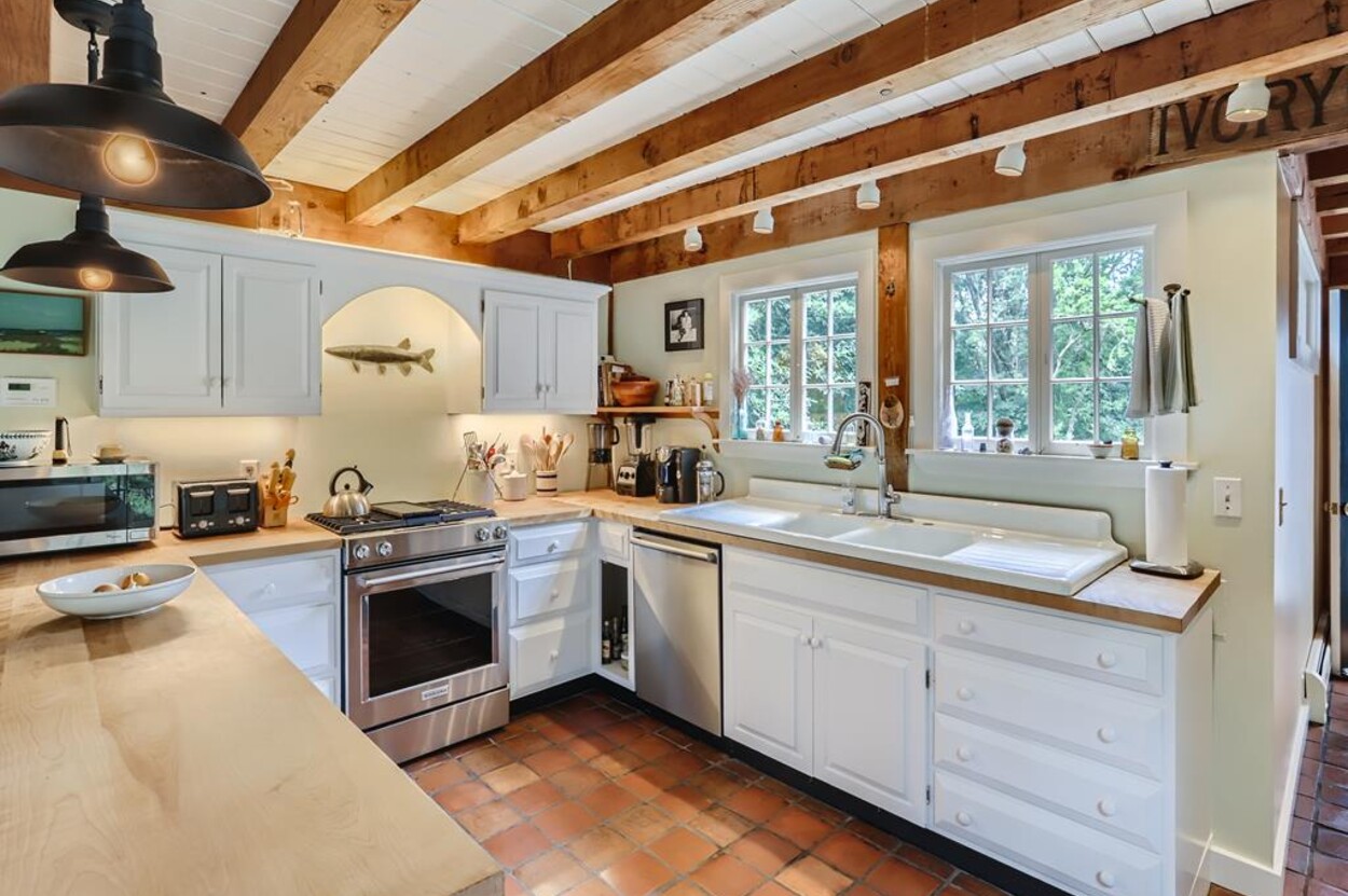 Quietly tucked away in Chilmark, this beautiful retreat is situated on almost 4 acres of rolling land, filled with lovely flowering trees. Antique heart pine, and terra cotta floors, along with warm wood trim details throughout, give this home its unique character and high-end rustic charm. There is an enclosed, screened-in porch off the den for enjoying morning coffee. A first floor primary bedroom with queen bed offers a shared bath with open tiled shower with the first floor guest room with full size bed. An additional 2nd floor primary bedroom with queen bed has an ensuite bath with tiled tub/shower. This upstairs bedroom has an in-room crib, if needed. The home has a wonderful kitchen with gas stove and large peninsula for serving large meals, dining table seats 6-8, situated in the great room with high ceilings. There is an additional den with TV, for those looking to find privacy in another room. Newly installed central air conditioning will keep you comfortable in summer, and access to the wonderful beaches of Chilmark, Lucy Vincent and Squibnocket to cool off with a dip in the ocean.