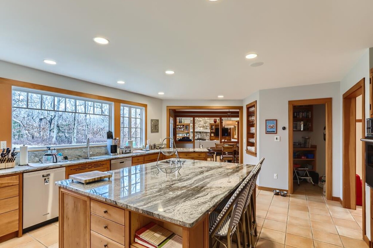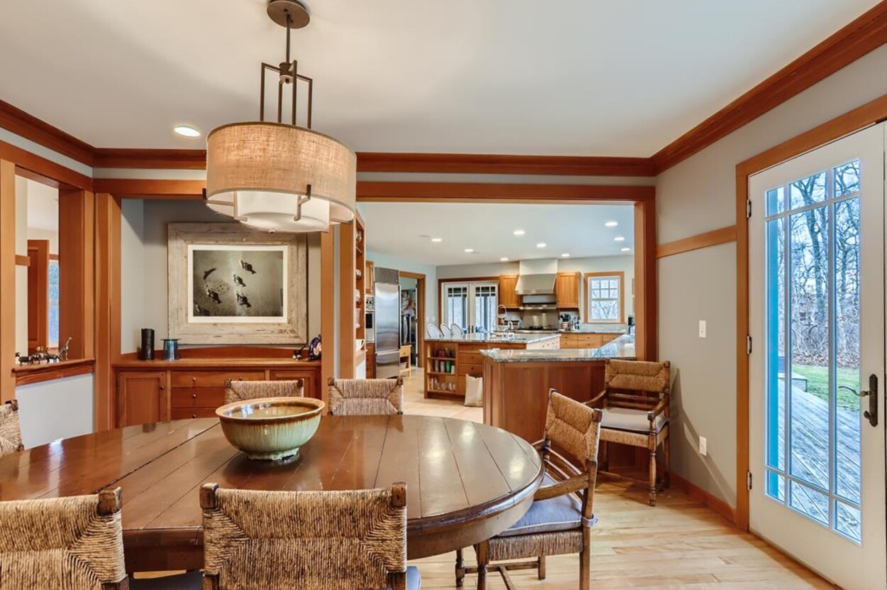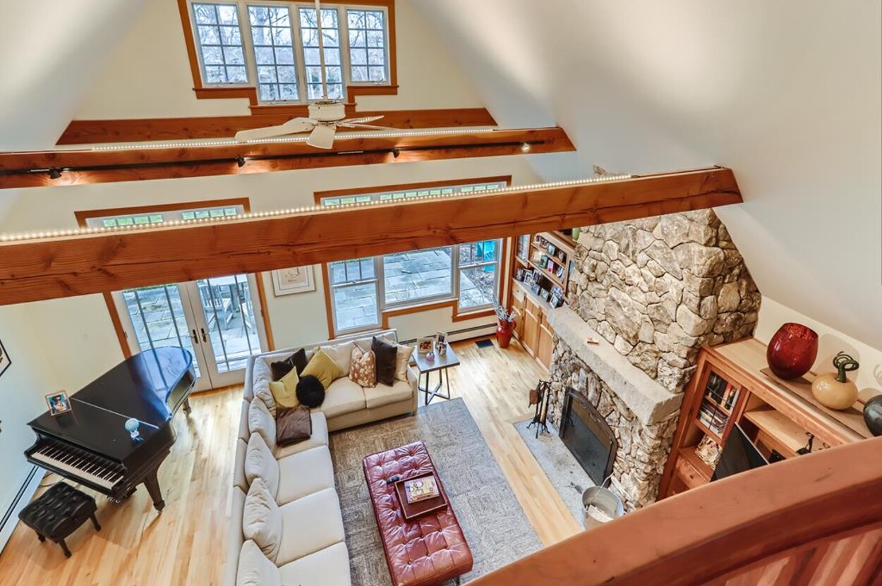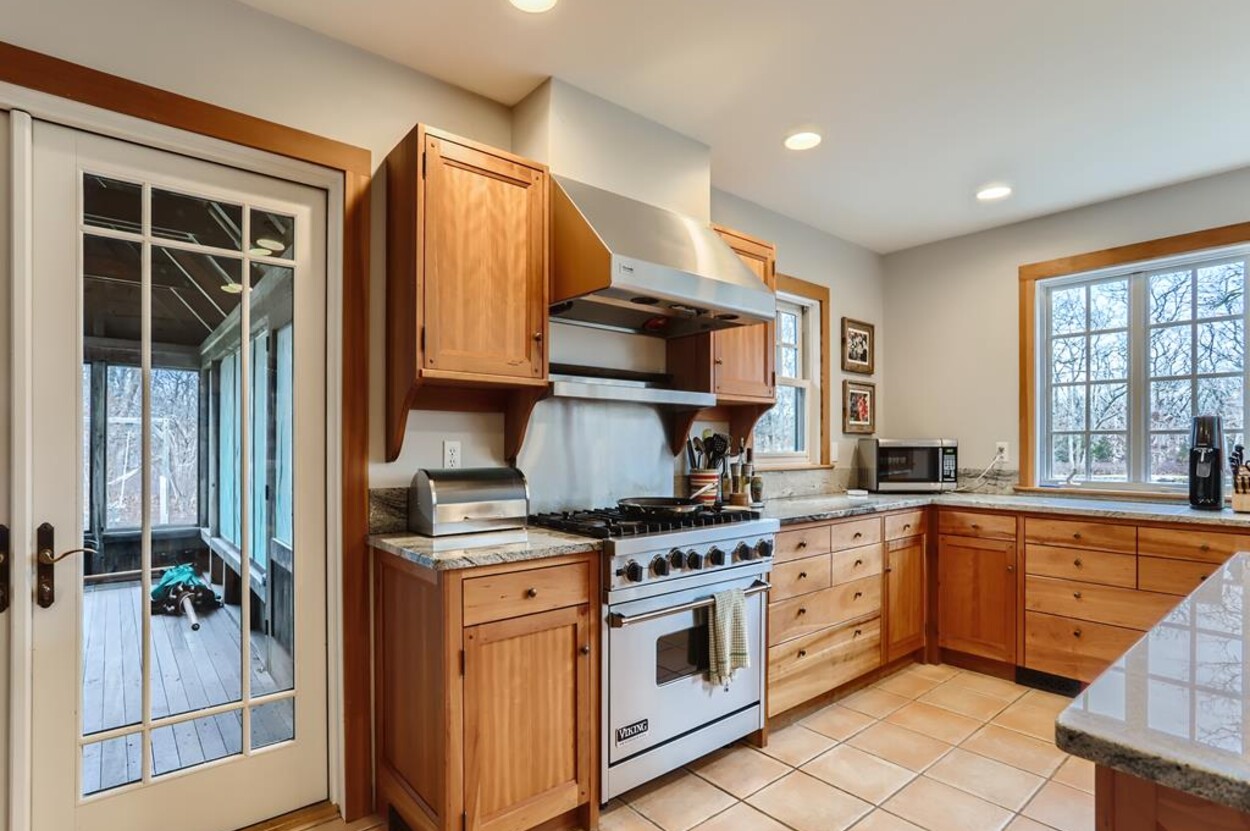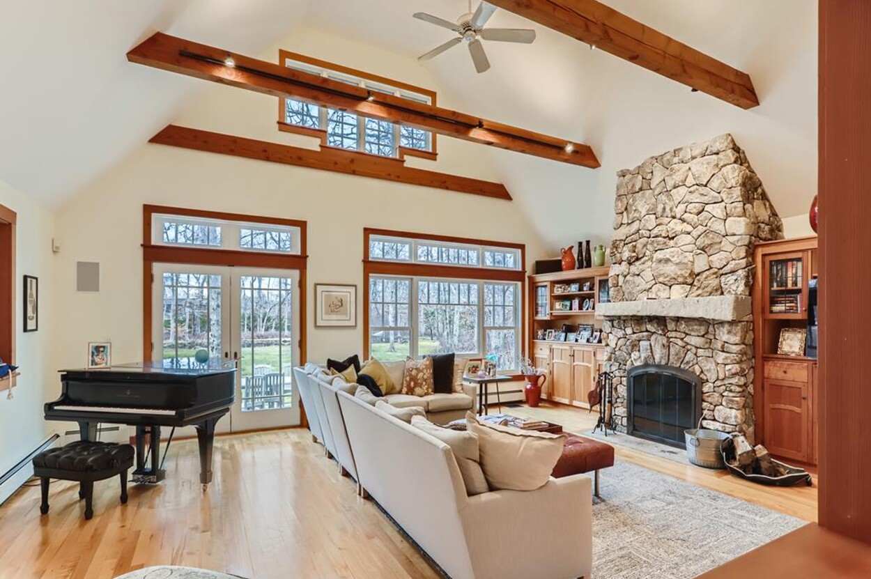 This beautiful and special Chilmark home offers lovely and open interior spaces as well as several outside living spaces with large screened porch, expansive decking and huge yard with playset, basketball/pickleball area. Outdoor dining for 10 people. The first floor of the house flows from entry to living room to dining room and kitchen, then on to the play room and screened porch. The primary bedroom suite is also on the first floor. Upstairs you ll find a bedroom suite, plus two more bedrooms with a shared bath, and an office (which could be used as another bedroom if needed). Just a short walk through the woods, there is deeded access to the Tisbury Great Pond where you ll find two kayaks for crossing over the pond to the beach on the South shore. Access to Chilmark beaches as well. This is a lovely and private part of Chilmark, near the Grey Barn farm and the center of the Vineyard for easy access to all destinations on the island.