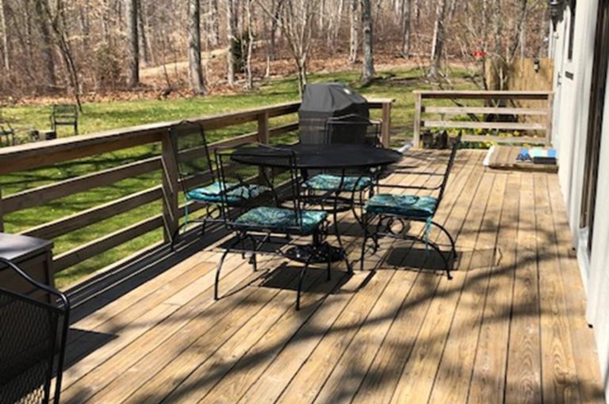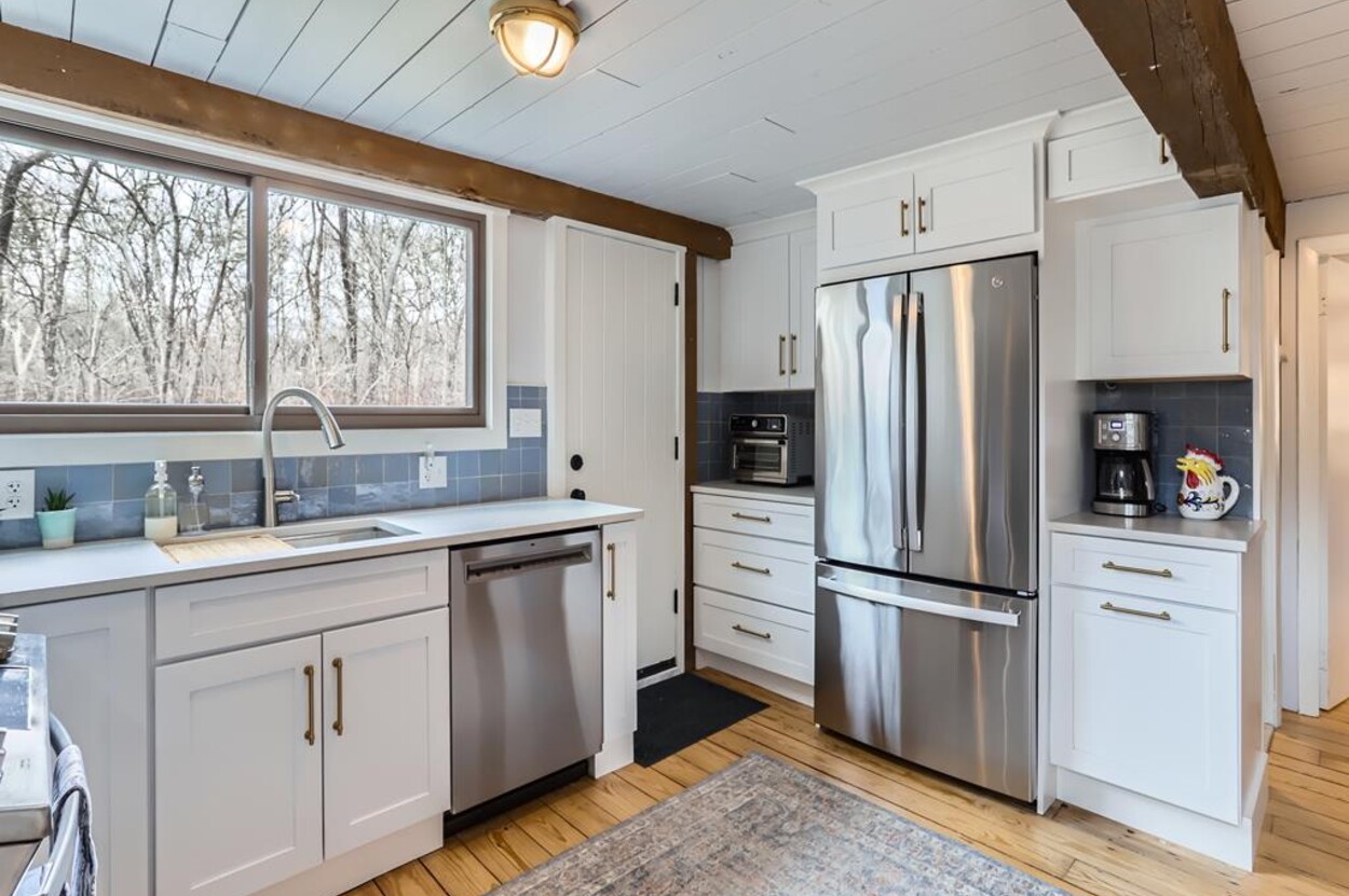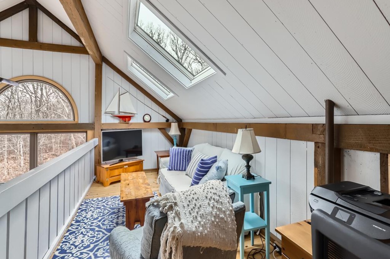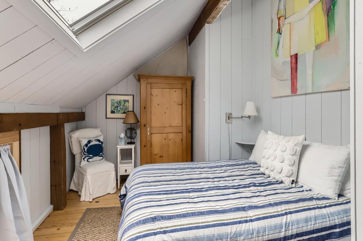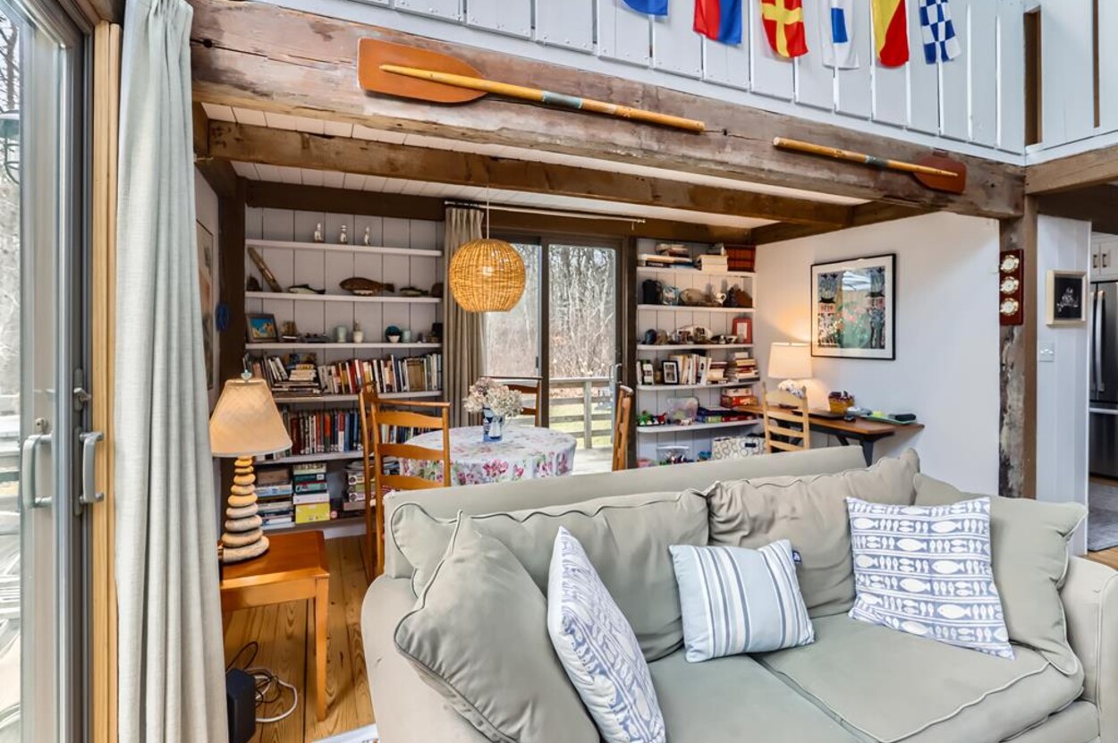Welcome to this charming Chilmark classic cottage with plenty of space for a family vacation and central AC provided by a new mini split system in each room. Sweet and sunny four bedroom house built in the Yankee Barn style with authentic wood beams from an English pub. Big windows, and a large open living room with a beautiful brick fireplace, and the refinished original wood floors give the house a farmhouse feel. There is a large primary bedroom on the first floor featuring an en suite bathroom. The second floor has three more bedrooms and a guest bathroom. Enjoy the wraparound deck, and outdoor shower for after the beach. Located off of South Rd. tucked back in the woods, it has a private feeling yet is a ten minute drive to Lucy Vincent Beach and five minute drive to Alley s General Store and the town center of West Tisbury. Two week minimum rental. Flexible on turnover day. Inquire for more details.