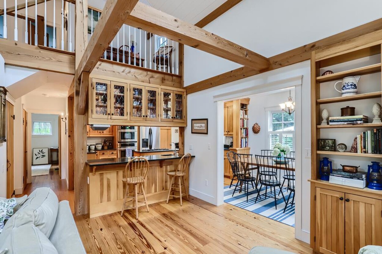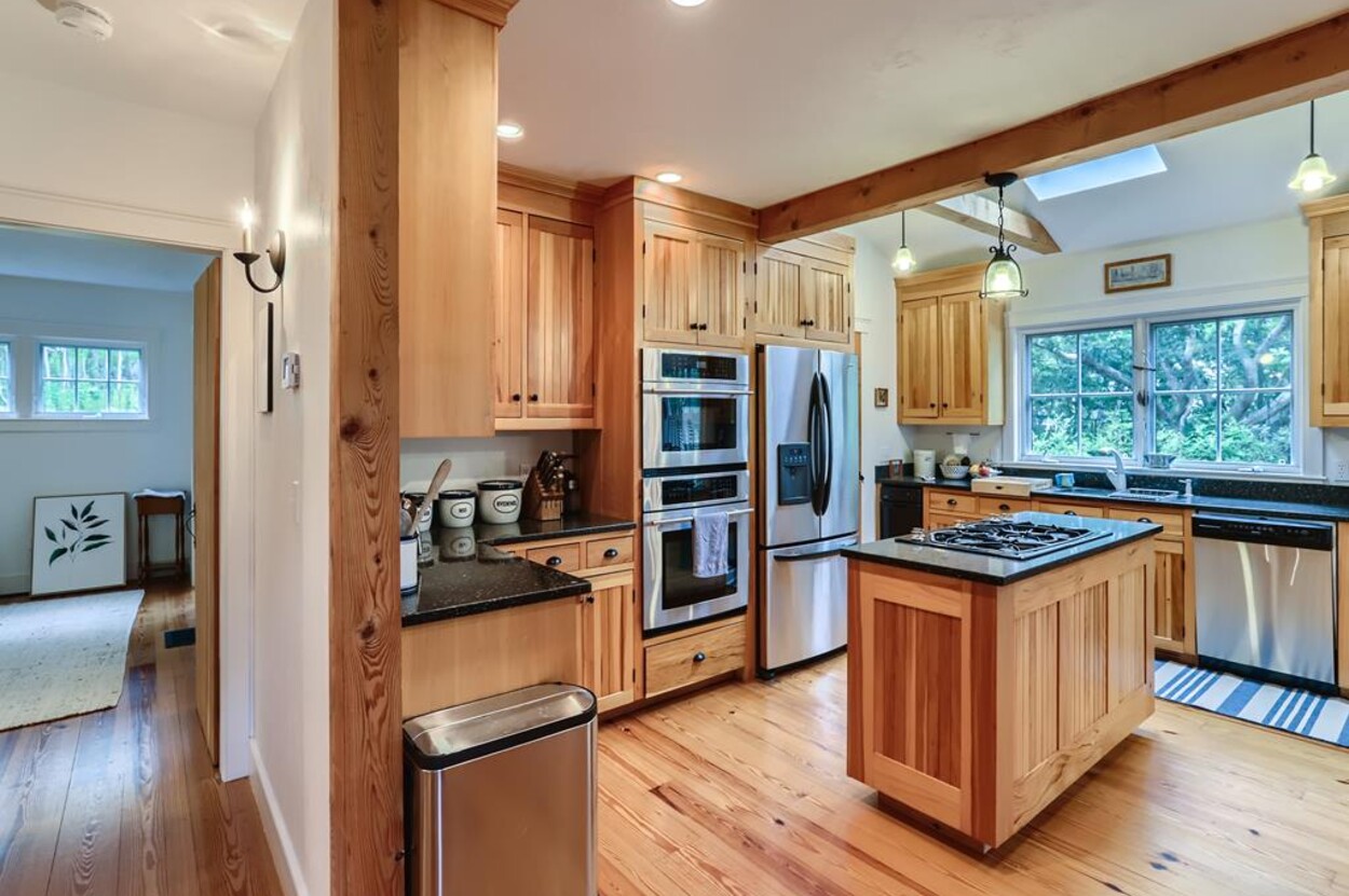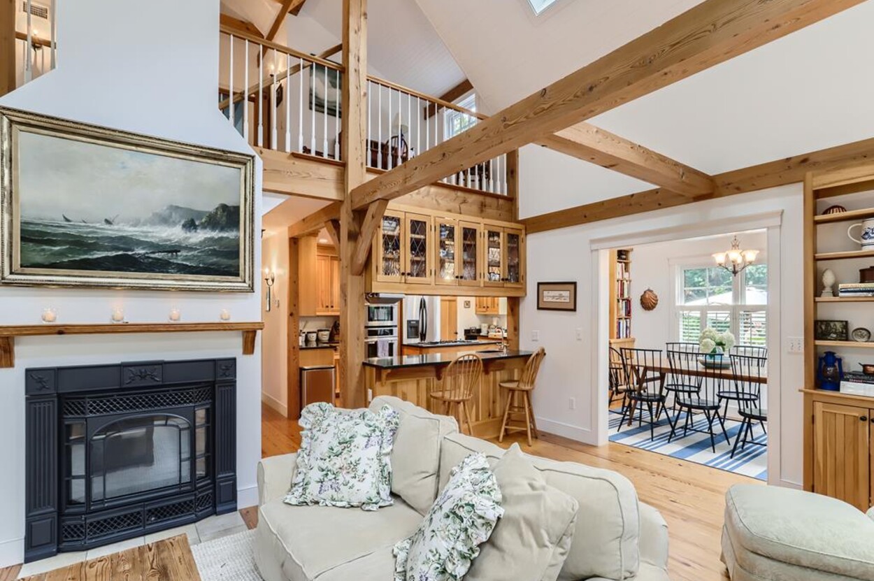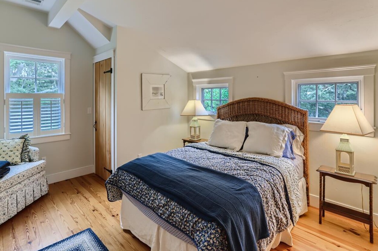 Lovely Abels Hill home with beautiful post and beam design, high ceilings, and bright and open layout. There is a screened porch and a first floor bedroom suite. Upstairs are two additional bedrooms, one full bathroom plus a large loft space. There is one additional sleeping space above the detached garage (no bathroom). This home comes with all that Abel s Hill has to offer - a gorgeous beach on the south shore, tennis courts and a tranquil Chilmark neighborhood.