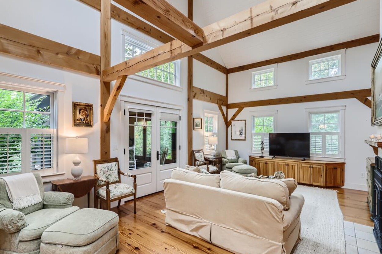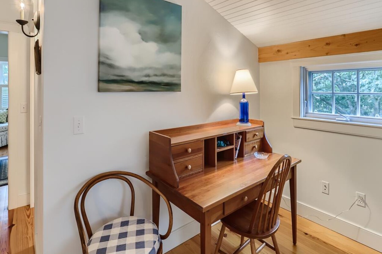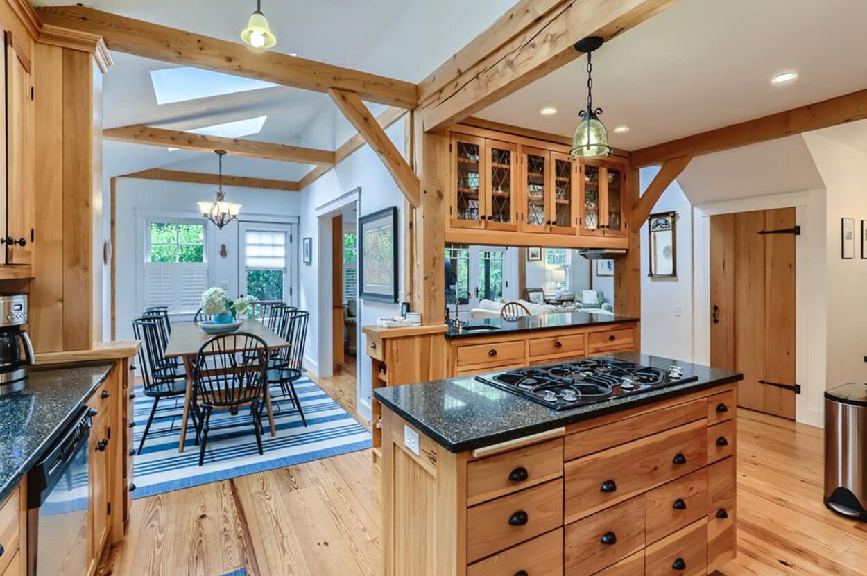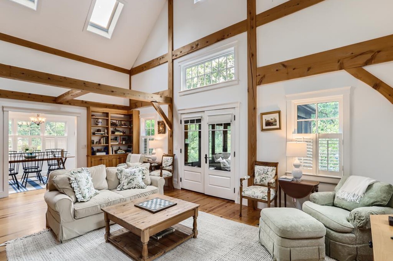 Lovely Abels Hill home with beautiful post and beam design, high ceilings, and bright and open layout. There is a screened porch and a first floor bedroom suite. Upstairs are two additional bedrooms, one full bathroom plus a large loft space. There is one additional sleeping space above the detached garage (no bathroom). This home comes with all that Abel s Hill has to offer - a gorgeous beach on the south shore, tennis courts and a tranquil Chilmark neighborhood.