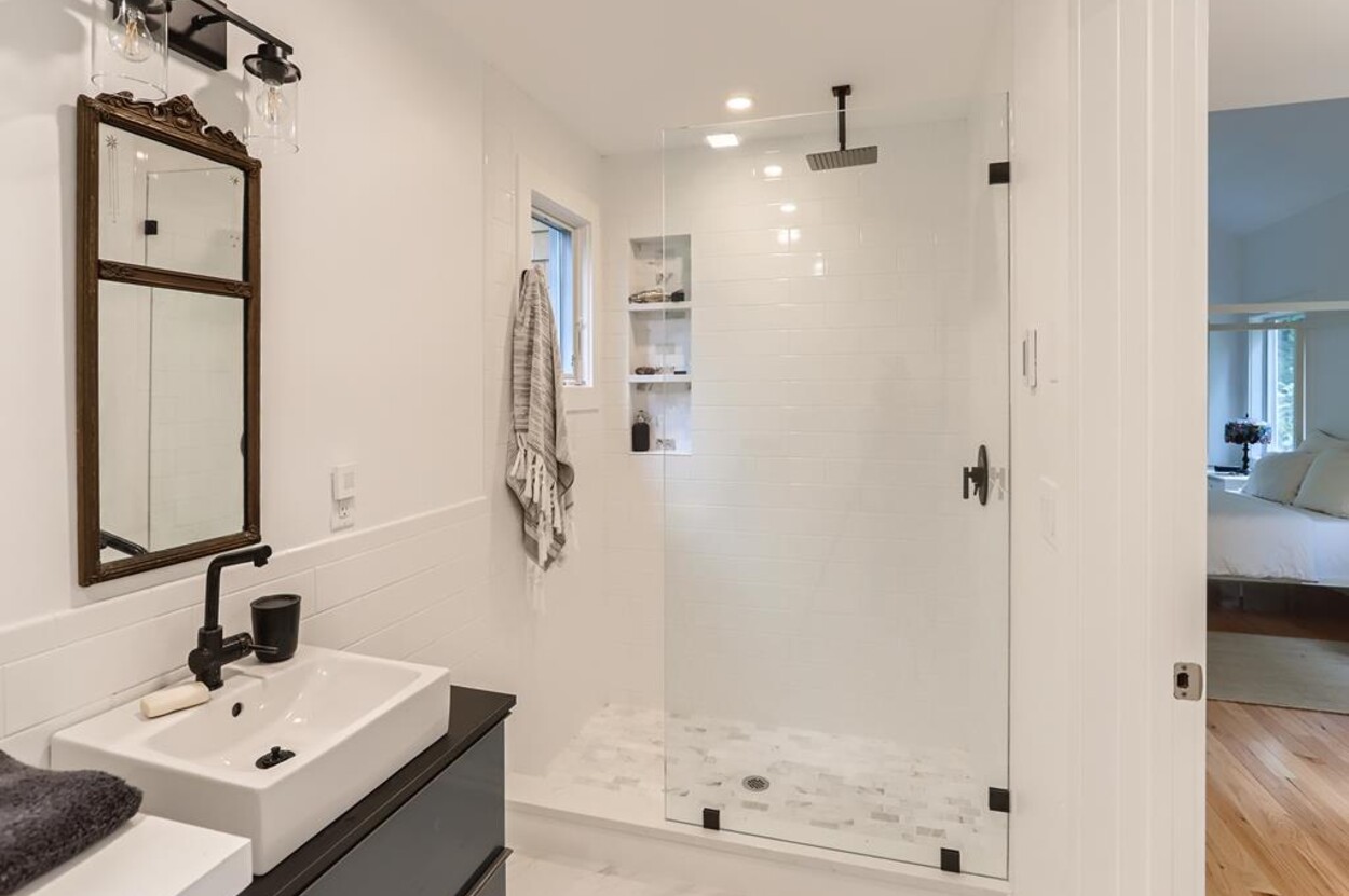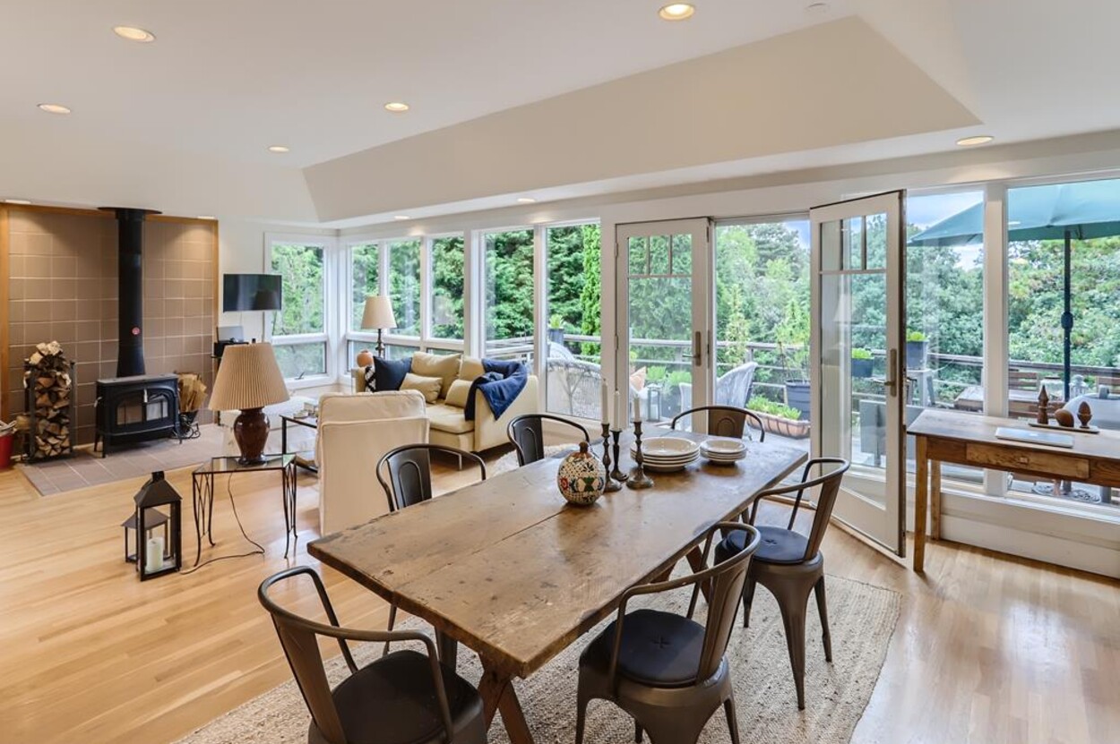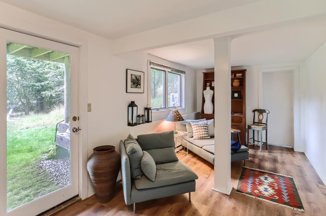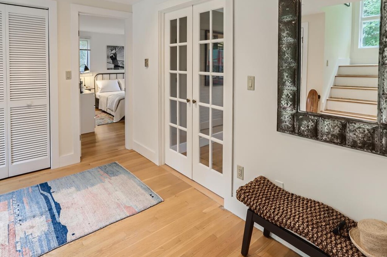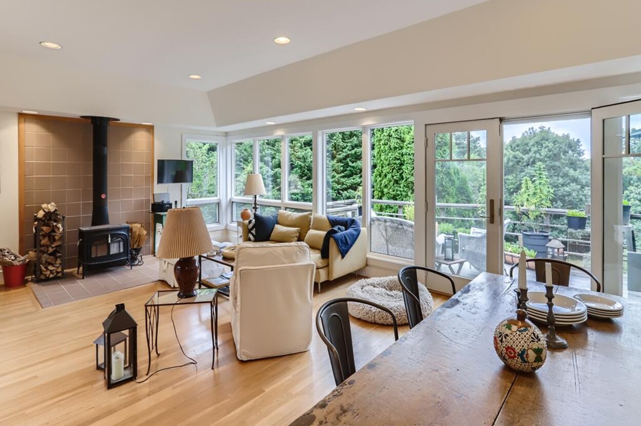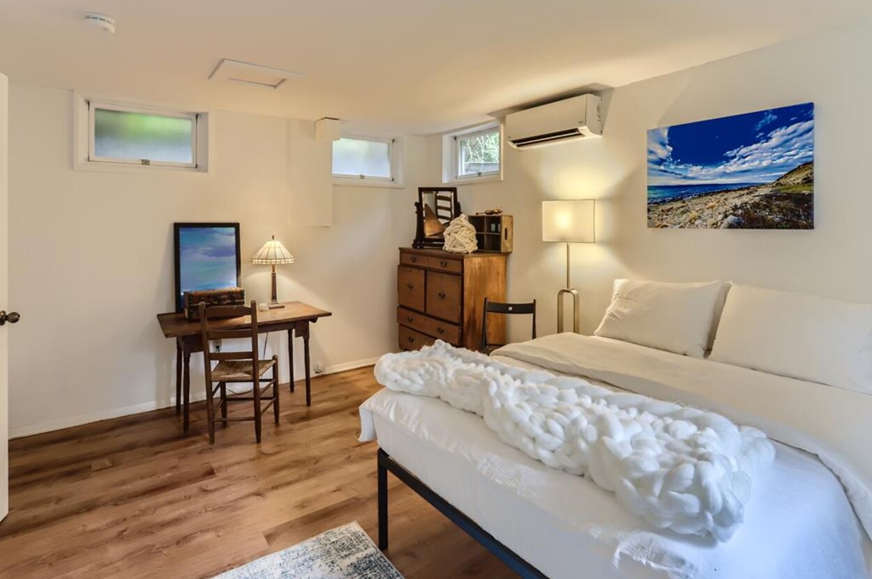 Natural, contemporary home in a private setting in Chilmark. This open and airy home has been freshly renovated with new bathrooms, and a new primary bedroom suite wing. Two bedroom suites, plus two more bedrooms with two more dedicated bathrooms. The great room on the upper level features a wall of windows and large deck, all focused on the lovely views of garden, yard and trees. The lower level walk-out includes a separate family room. This is a wonderful family vacation home with room to spread out for privacy and terrific gathering space for cooking, meals, relaxing in the great room.