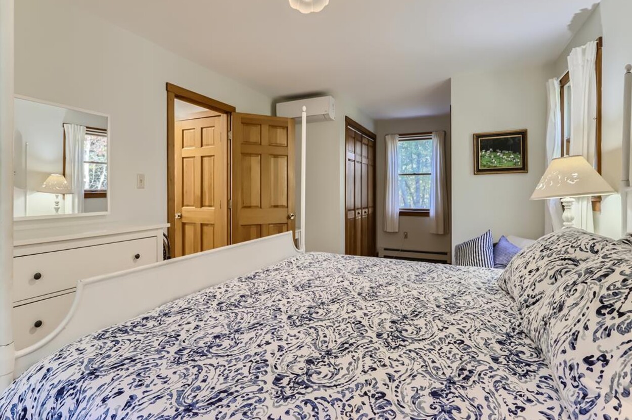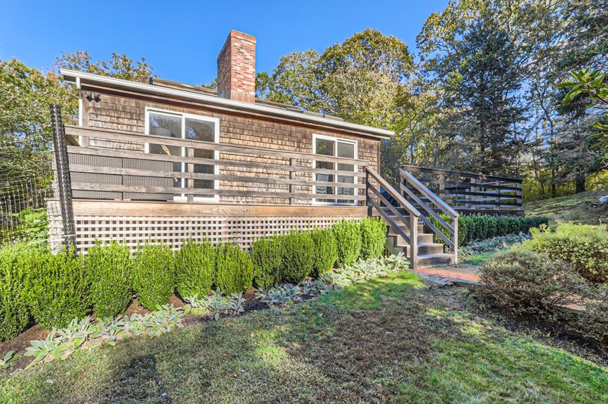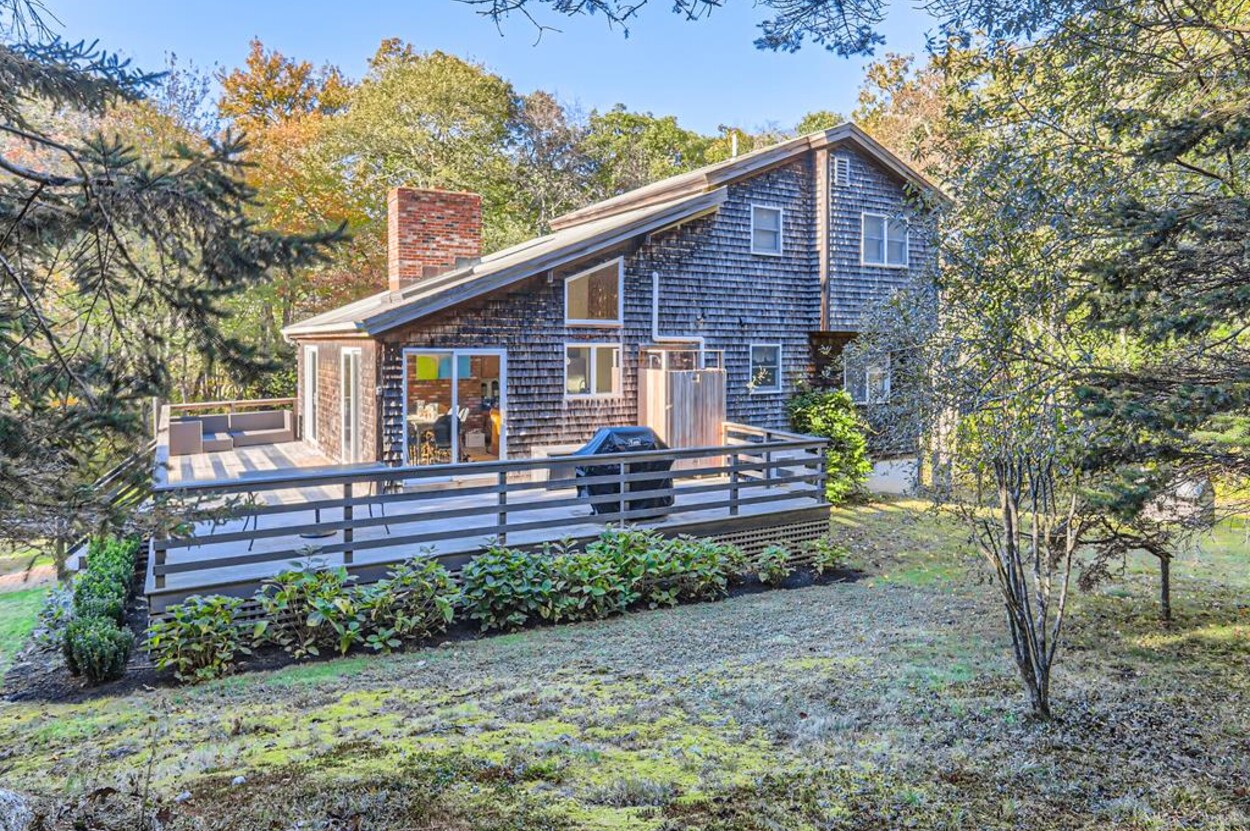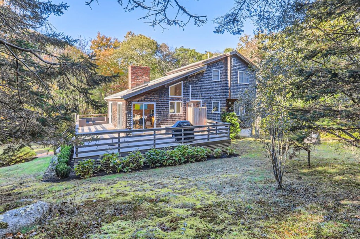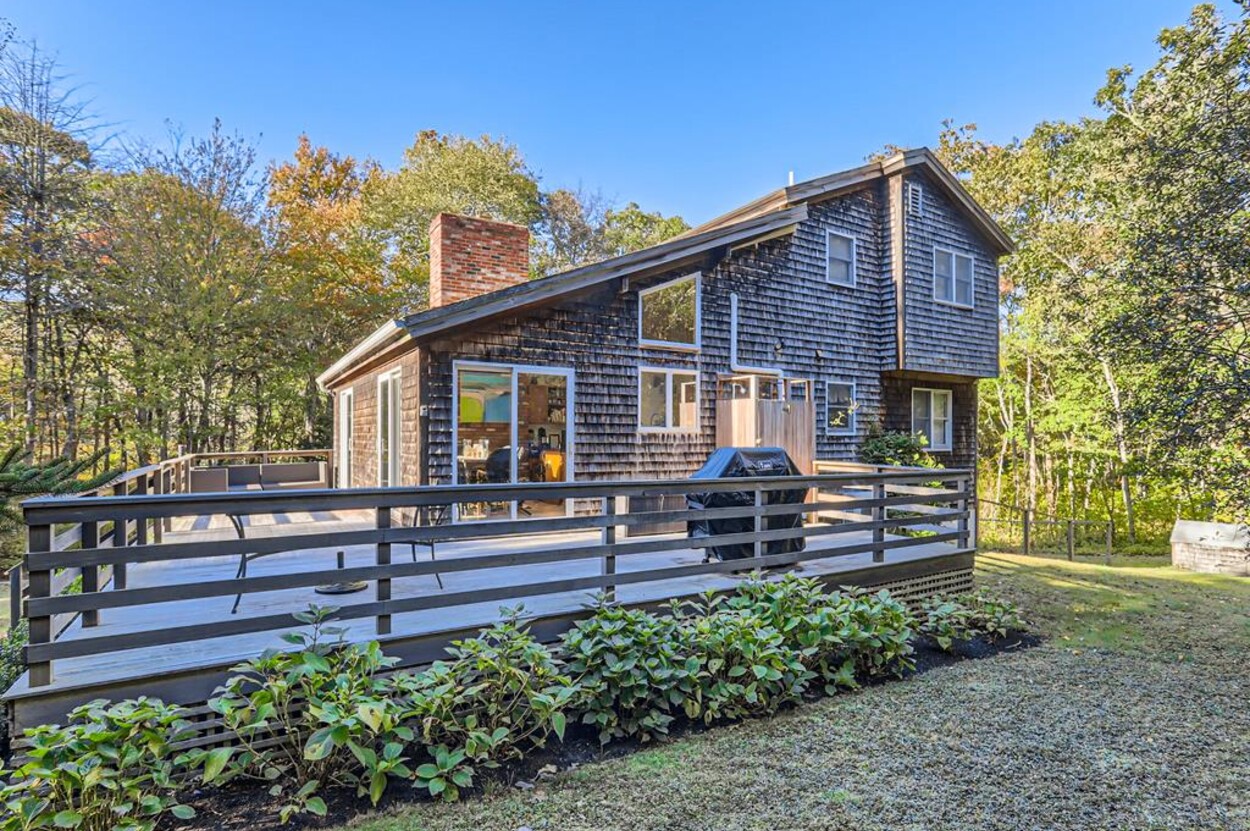 This is a lovely 3 bedroom Chilmark home off North Road. The first floor layout is comprised of a large eat in kitchen and separate living room, with small screened deck and first floor bedroom and bath. Upstairs you will find two further bedrooms and a shared bath. There is a nice wrap around deck off the kitchen and outdoor shower. Mini split AC and pets considered on a case by case basis.