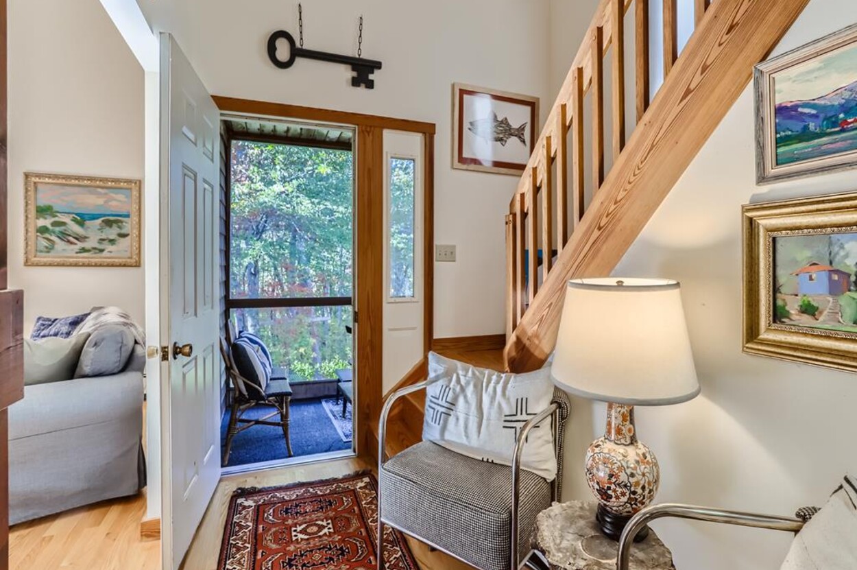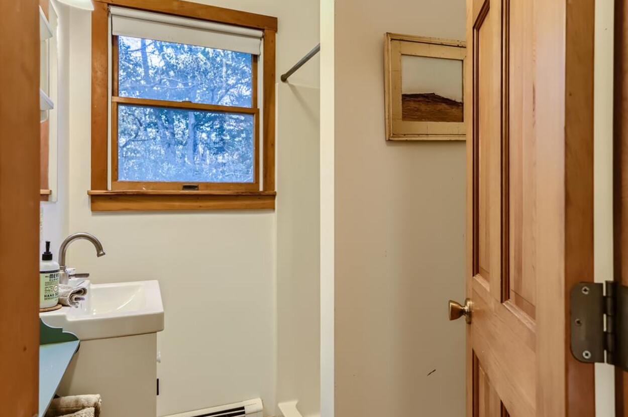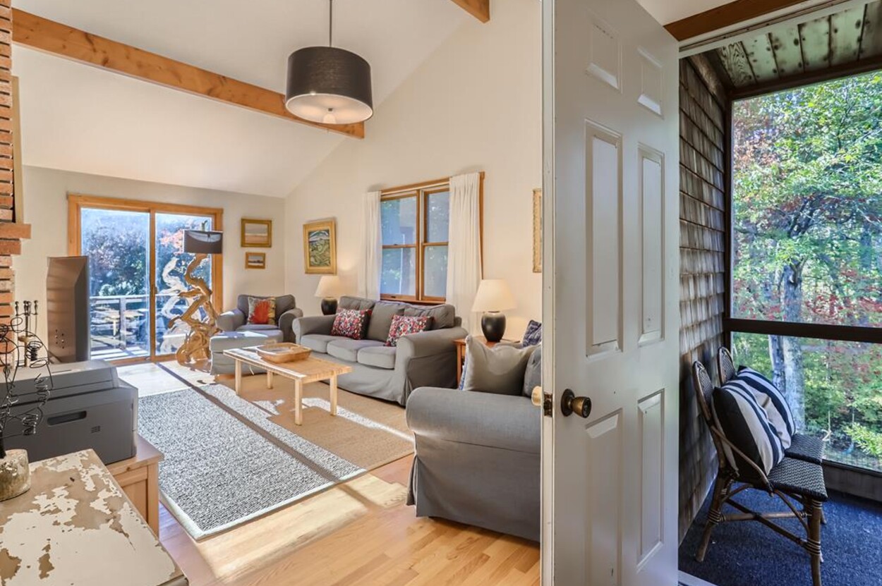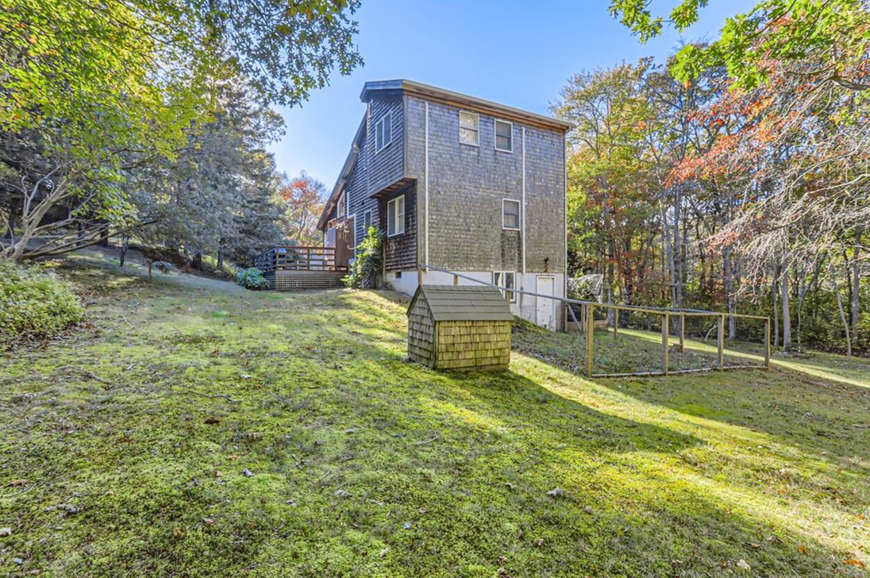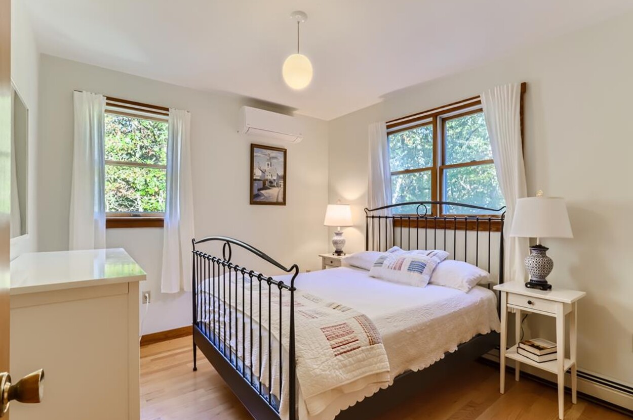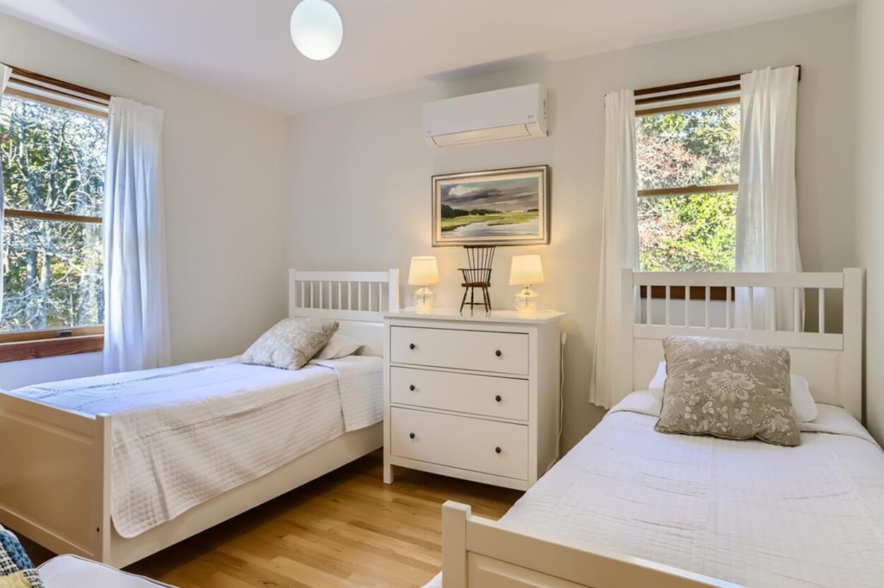 This is a lovely 3 bedroom Chilmark home off North Road. The first floor layout is comprised of a large eat in kitchen and separate living room, with small screened deck and first floor bedroom and bath. Upstairs you will find two further bedrooms and a shared bath. There is a nice wrap around deck off the kitchen and outdoor shower. Mini split AC and pets considered on a case by case basis.