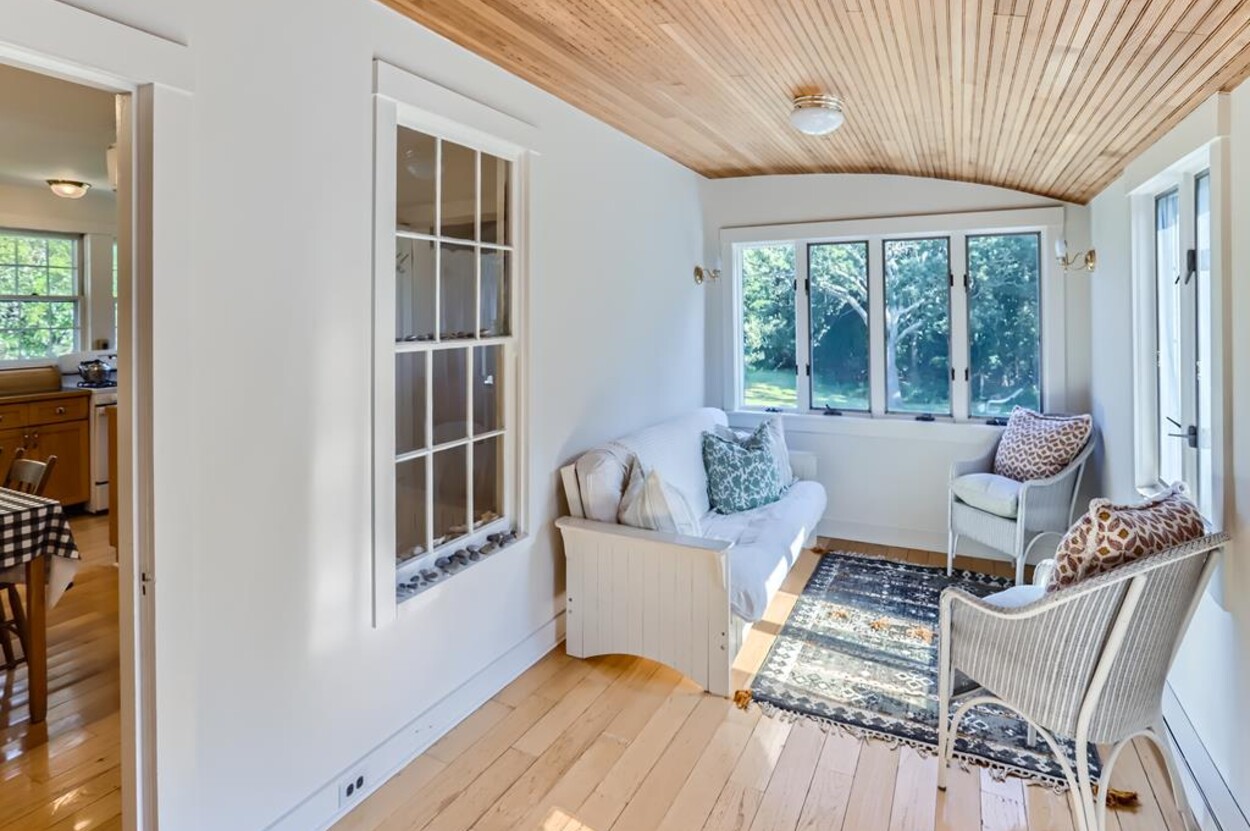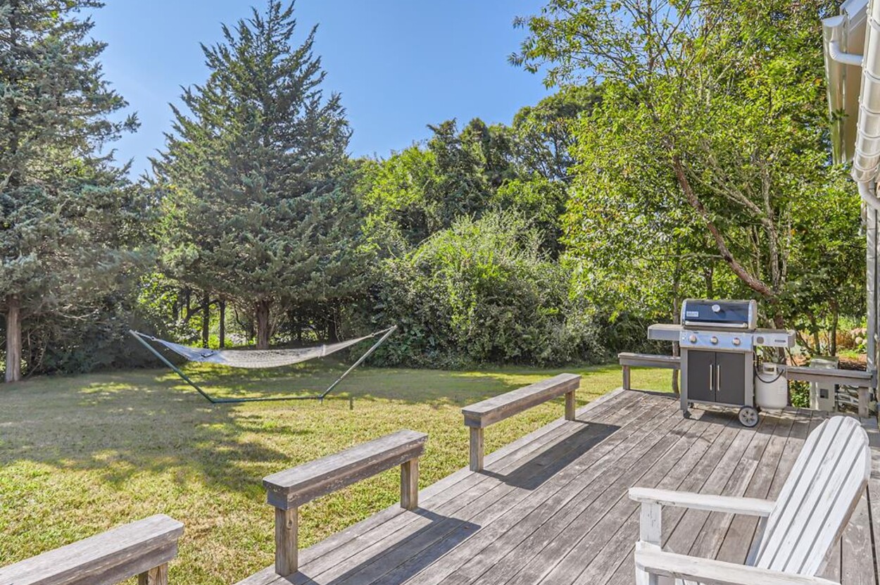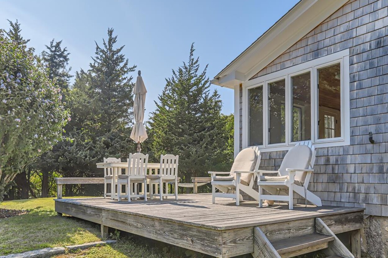 Quaint Chilmark cottage is just minutes from Menemsha. You'll enjoy vacationing at this charming renovated three bedroom antique cottage with the comforts of AC, a screened-in porch, and an expansive lawn with views over a small pond. The classic home combines the old world charm of the original wood floors and curved ceiling in the sunroom, with the convenience of easy accessibility to Menemsha Village, and Beetlebung Corners where you'll find the Chilmark General Store, Library, Tavern and Community Center. The deck off the sunroom looks out to the beautifully landscaped yard which rolls down to the pond and is complete with a delightful outdoor shower.