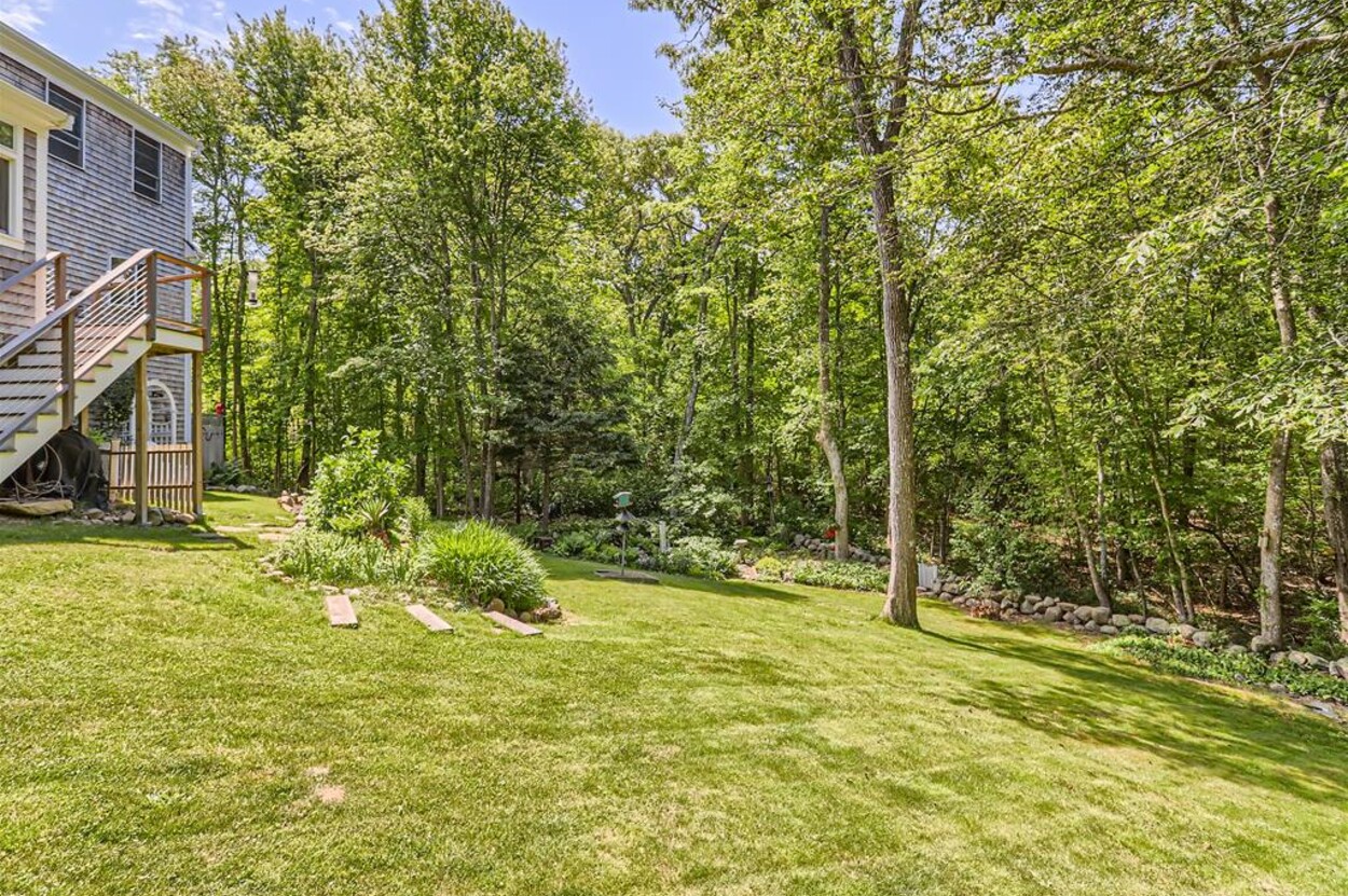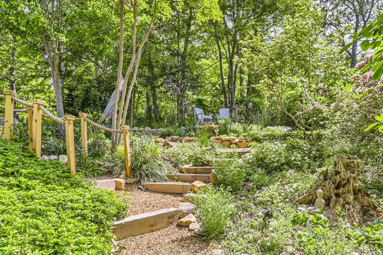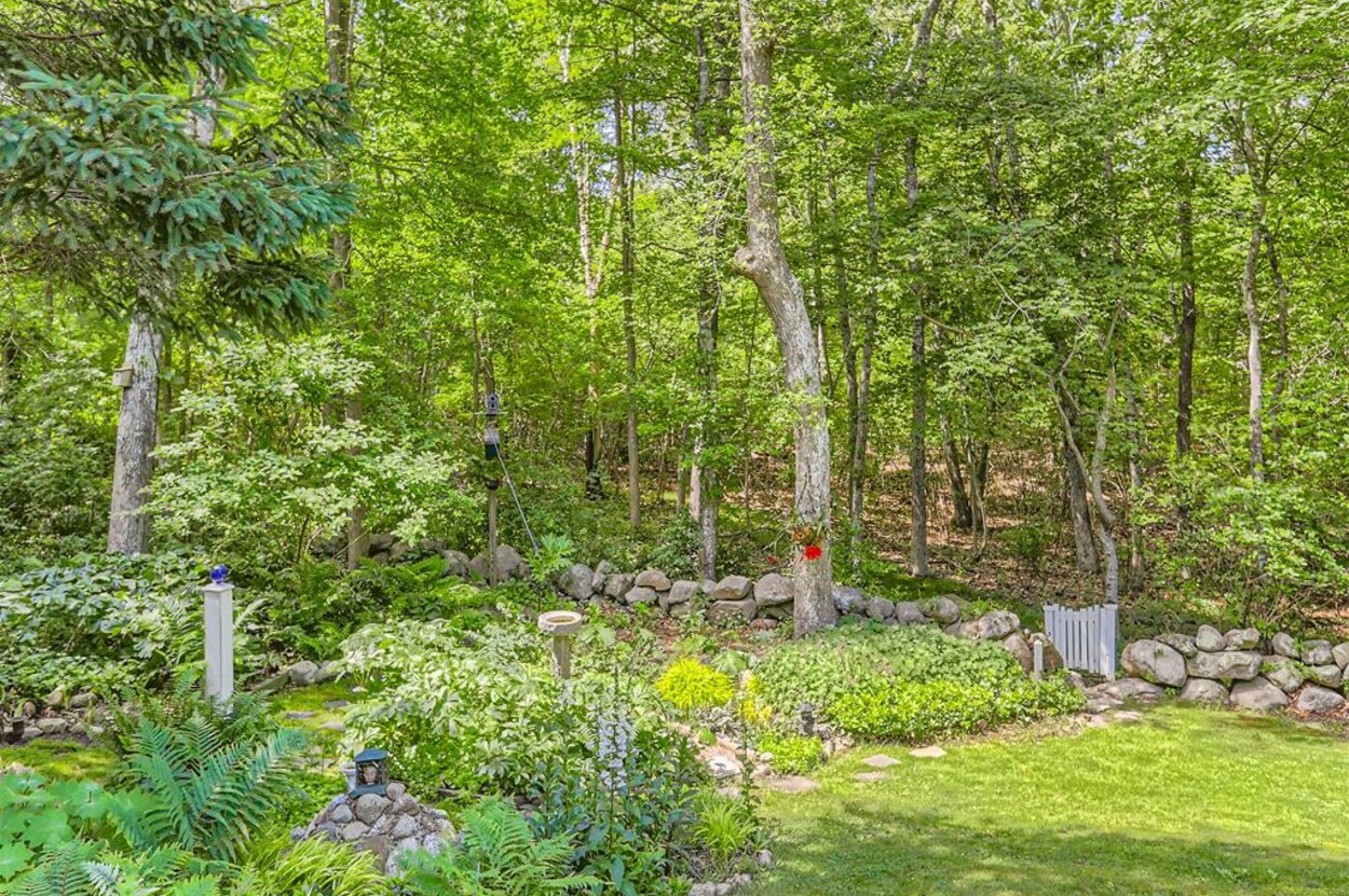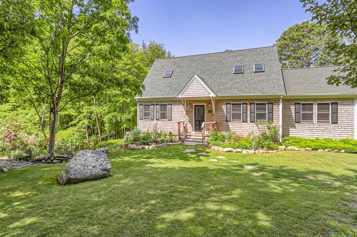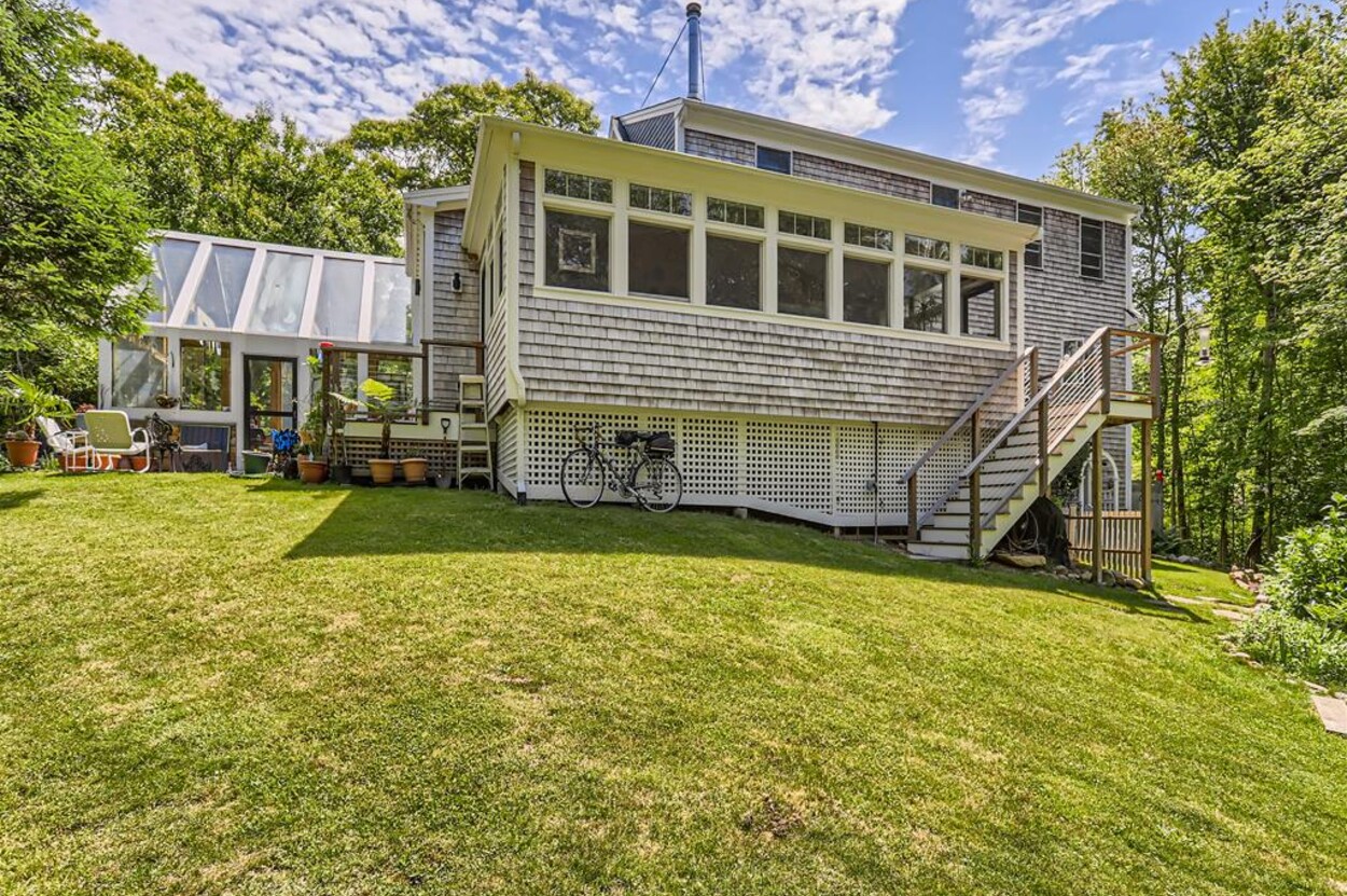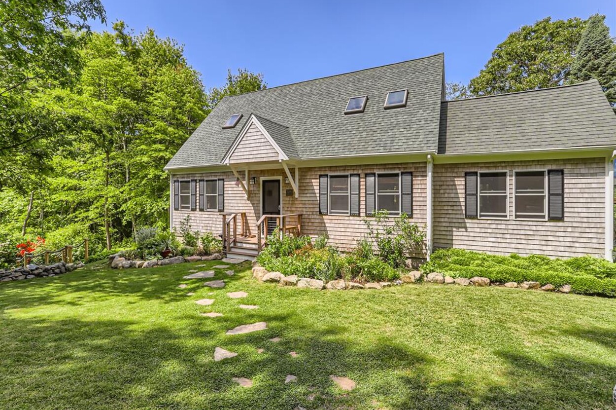 Tucked away on 2.1 private wooded acres, you'll enjoy beautifully landscaped gardens and stone walls, backing on a forested conservation area. This charming Lambert’s Cove home offers three bedrooms, two baths, an outdoor shower, and a magical greenhouse. The house features an all-new (2024) kitchen and new bathrooms, central AC, two cable TV’s, washer/dryer, outdoor gas grill, as well as a pass to nearby Lambert’s Cove Beach, with Ice House Pond a five-minute walk. There’s an enormous screened porch and a deck for enjoying sunsets, your morning coffee or bird watching (the house attracts lots of them), plus a library/office. With a first-floor bedroom and bath, two bedrooms and a bath upstairs, and a home gym with a treadmill & weights/TV room in the basement, this is a house that appeals to all ages. Flexible on turnover day. Inquire about off-season rates and availability.