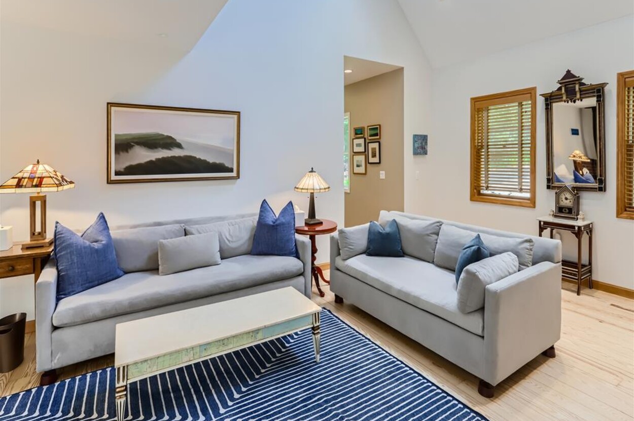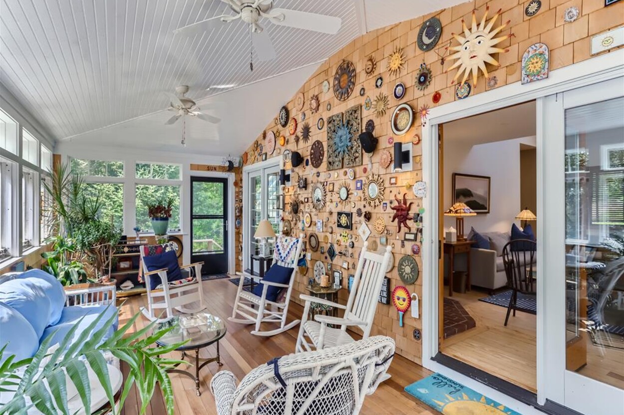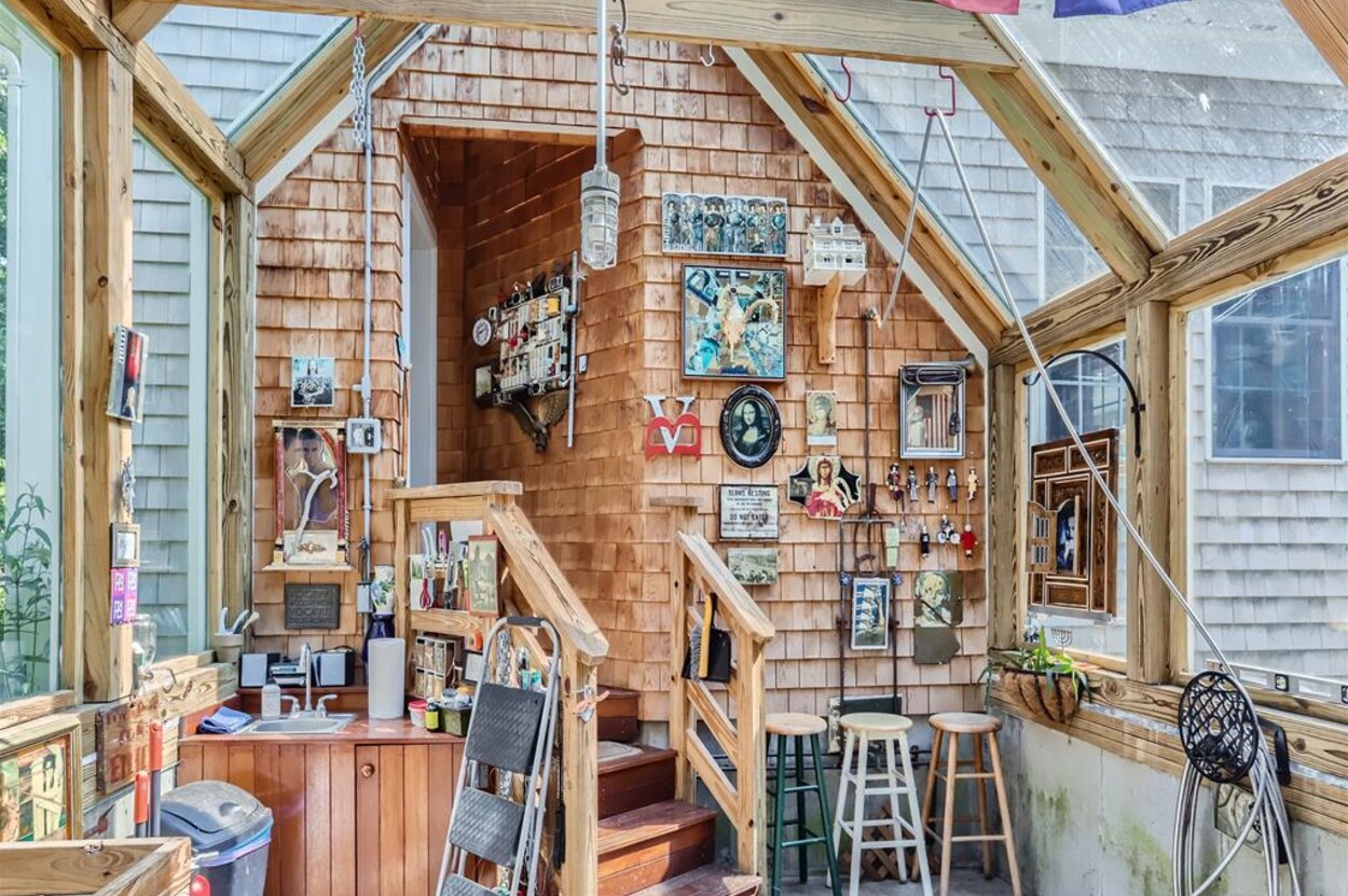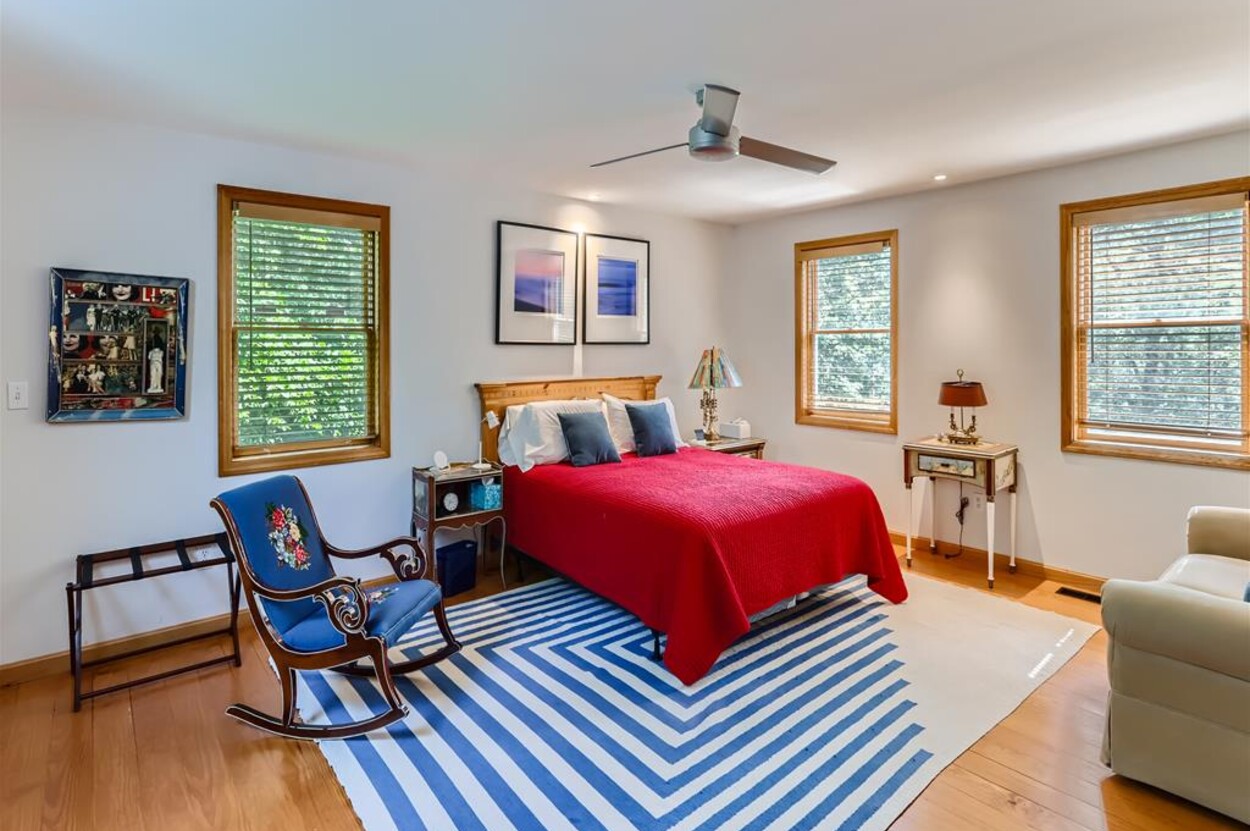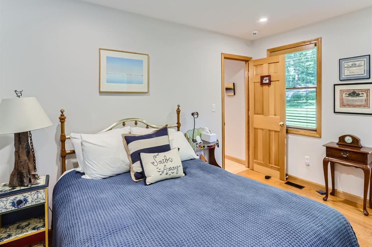 Tucked away on 2.1 private wooded acres, you'll enjoy beautifully landscaped gardens and stone walls, backing on a forested conservation area. This charming Lambert’s Cove home offers three bedrooms, two baths, an outdoor shower, and a magical greenhouse. The house features an all-new (2024) kitchen and new bathrooms, central AC, two cable TV’s, washer/dryer, outdoor gas grill, as well as a pass to nearby Lambert’s Cove Beach, with Ice House Pond a five-minute walk. There’s an enormous screened porch and a deck for enjoying sunsets, your morning coffee or bird watching (the house attracts lots of them), plus a library/office. With a first-floor bedroom and bath, two bedrooms and a bath upstairs, and a home gym with a treadmill & weights/TV room in the basement, this is a house that appeals to all ages. Flexible on turnover day. Inquire about off-season rates and availability.