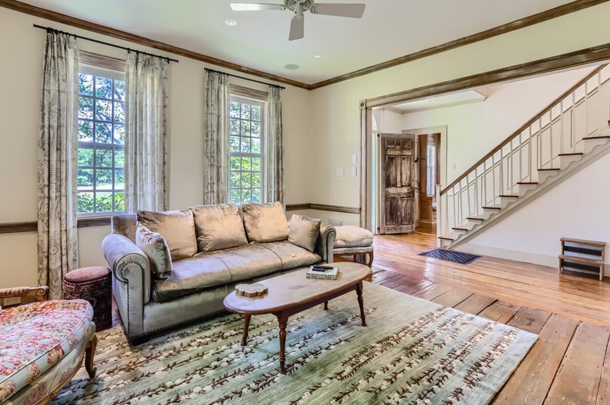 A comfy living room provides a separate space to watch a movie or relax with a book.