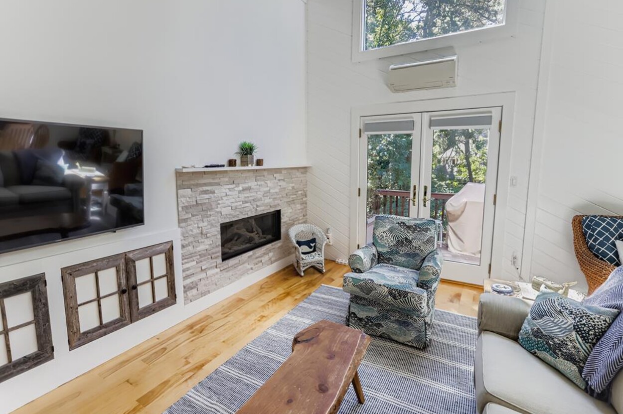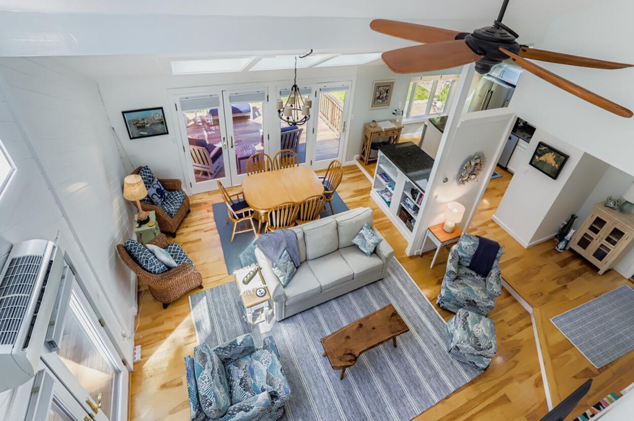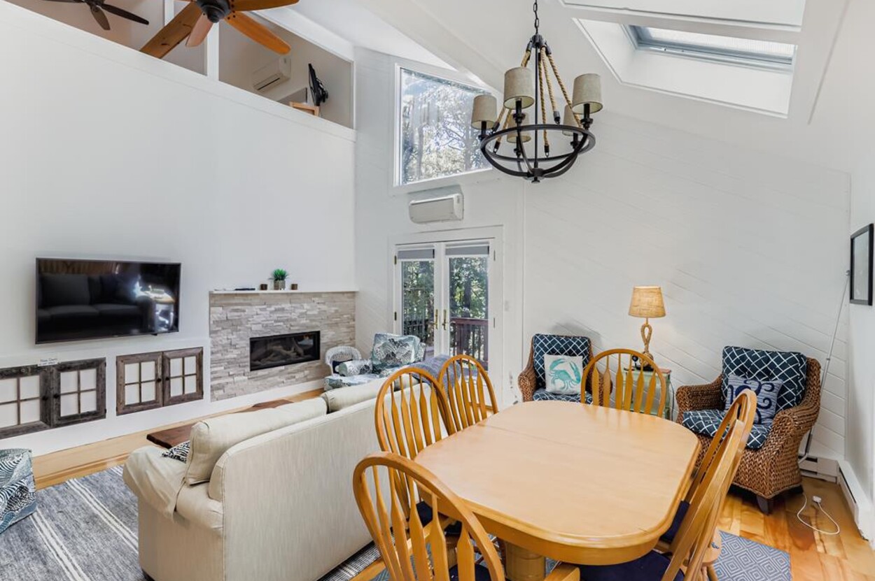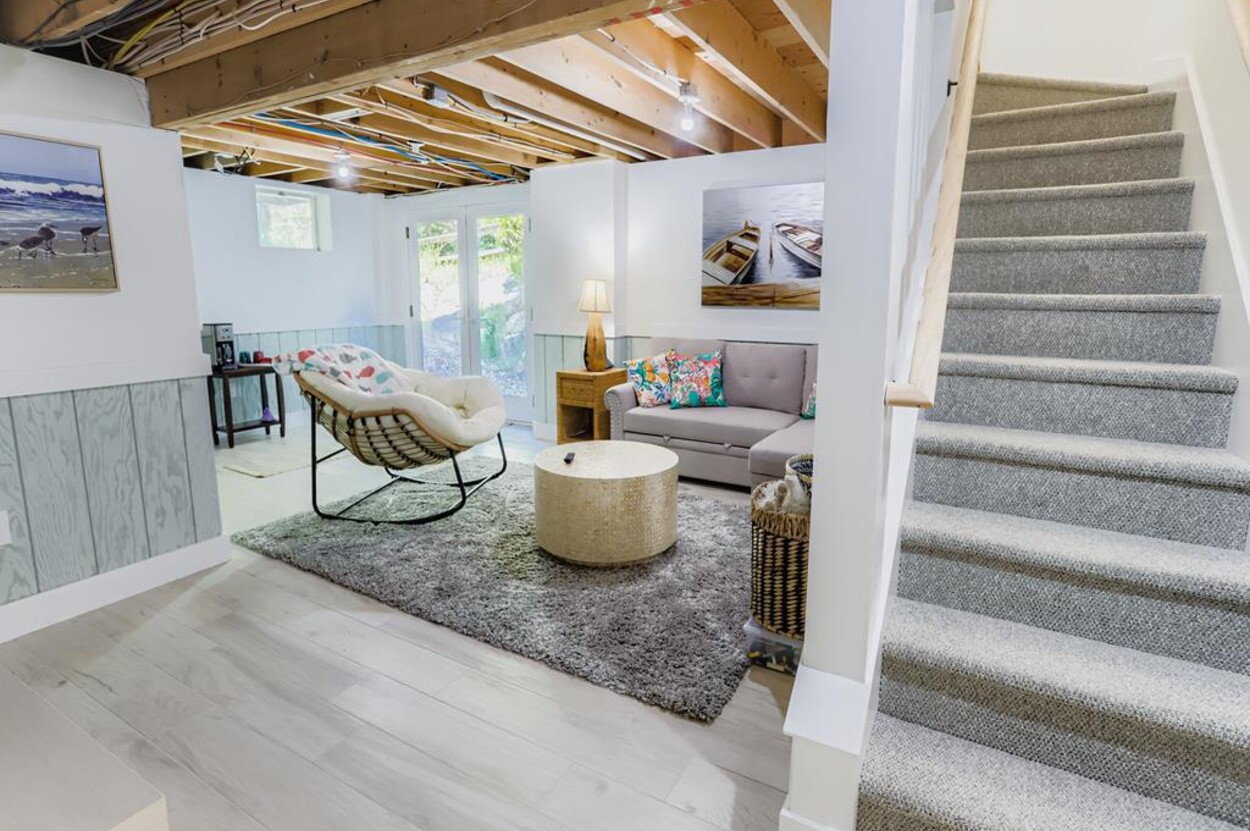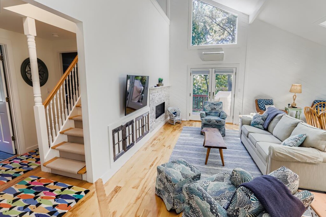 Open living kitchen dining room. Private lower level living room great for overflow or watching a movie.