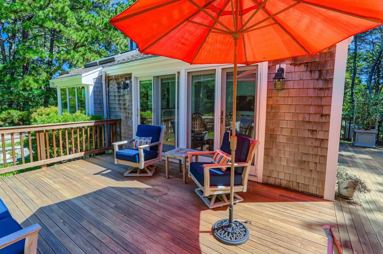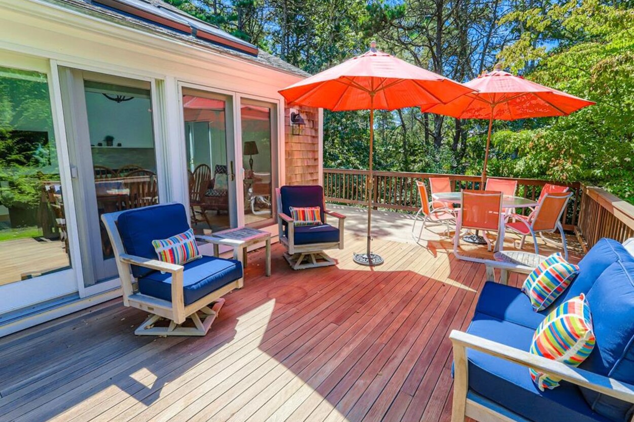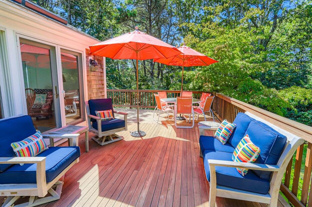Large comfortable deck with plenty of seating and dining space. Adjacent to the long point trustees of renovations conservation land where you can bike or walk for miles. easy access to all of the paved bike trails.