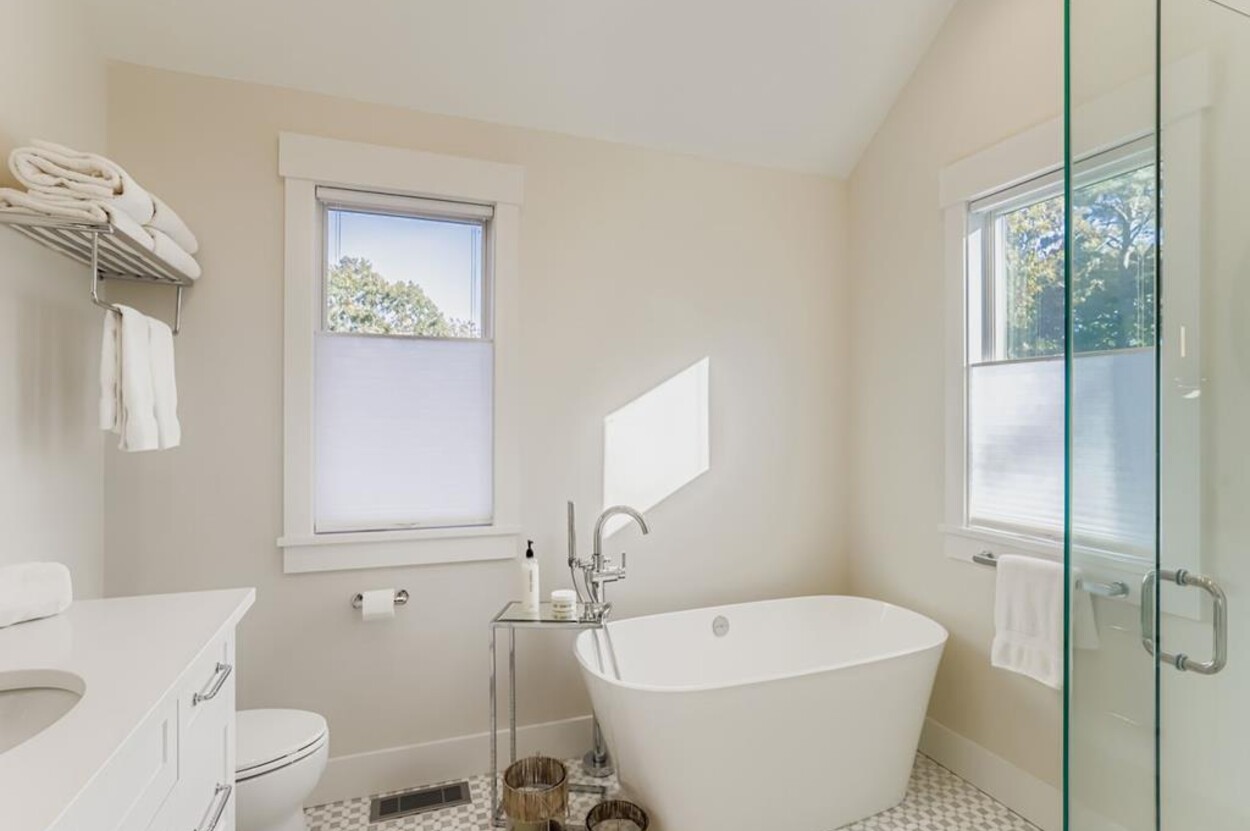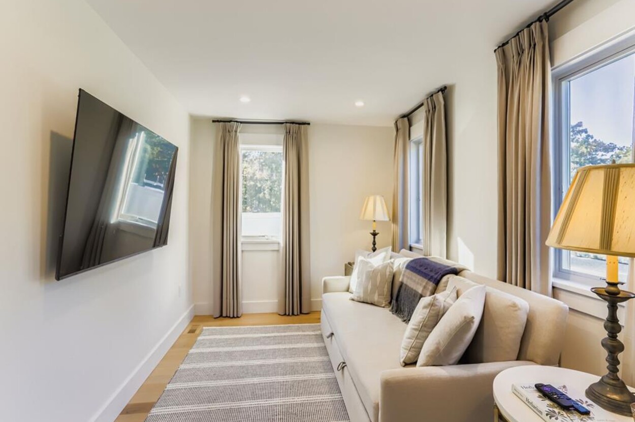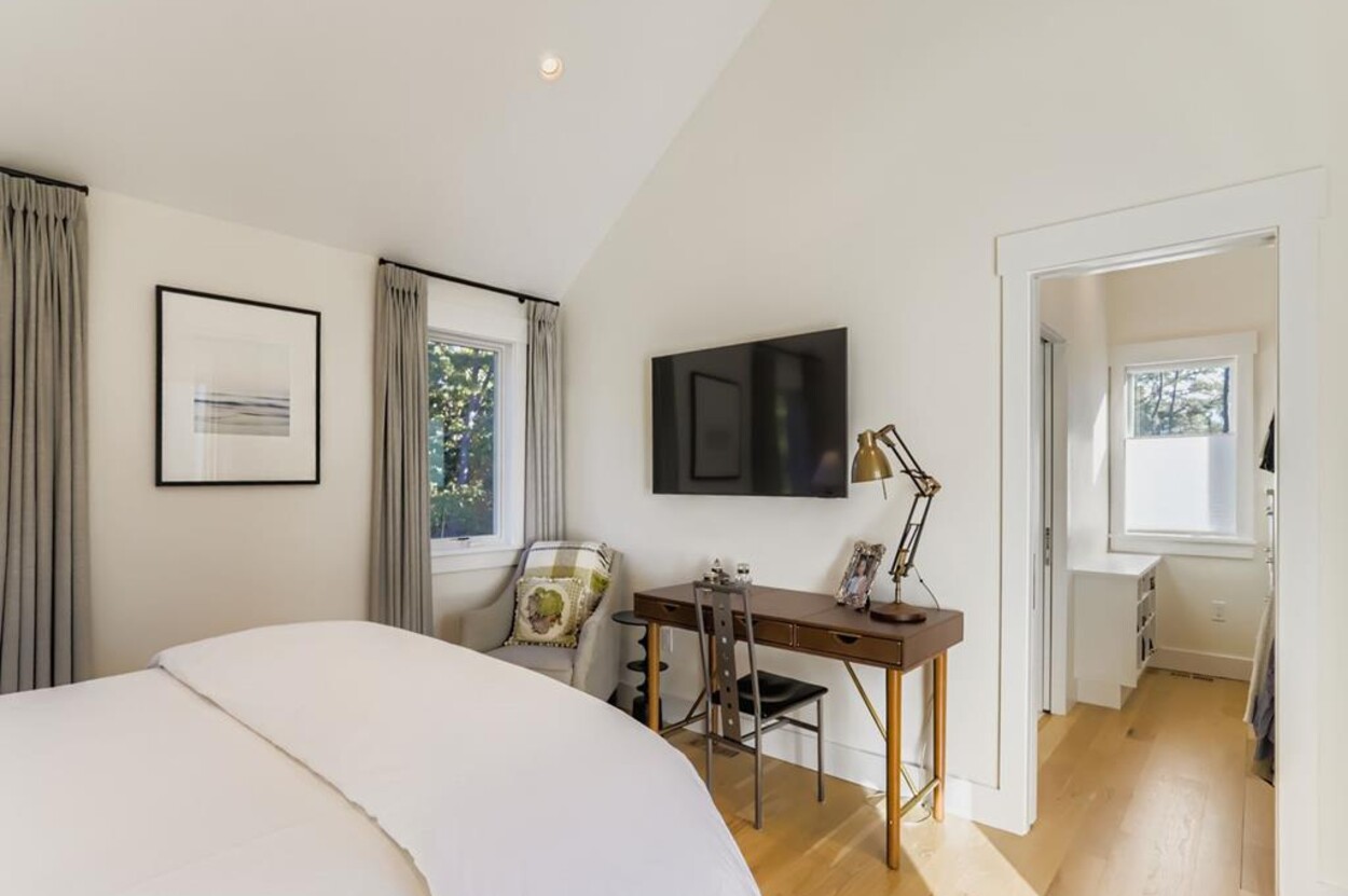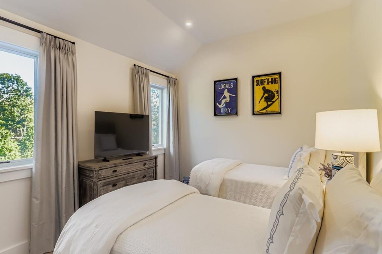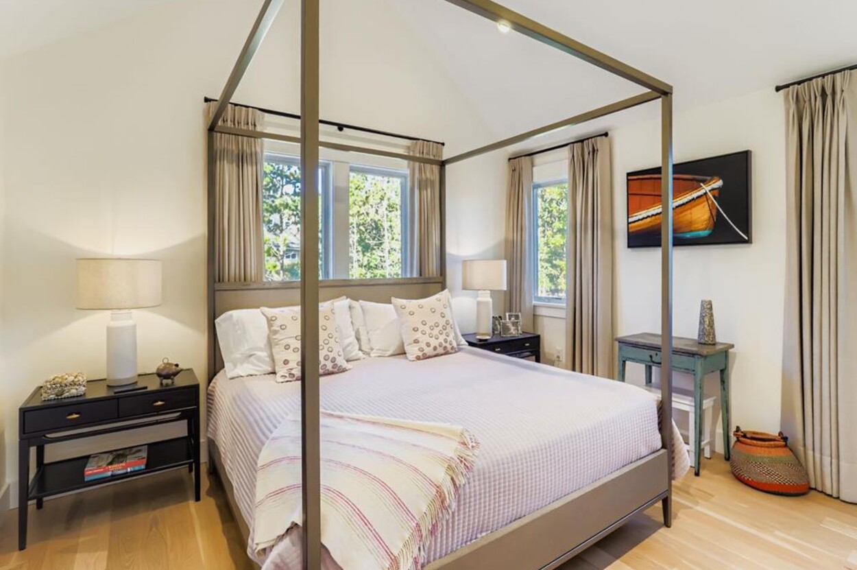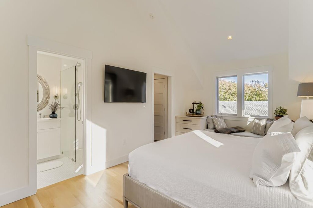 Welcome to your perfect Martha’s Vineyard getaway! This bright and brand new (2025) 6-bedroom, 5-bath home is filled with natural light and designed for comfort and style. Four luxurious en suite bedrooms and two more that share a bathroom. The bedroom suites are located at either side of the central living room, so this is great for two families wanting privacy. Enjoy the open living room/ dining room, a gourmet kitchen, and seamless indoor-outdoor flow to the large deck with dining table and outdoor seating. There's also a small TV room off the main living area with a pull out for occasional extra sleeping space. Sleep 12 comfortably. No TV in the main room, but each of the bedrooms has their own TV. Whether you’re gathering with loved ones, hosting friends, or simply relaxing, this custom-built retreat on over an acre in West Tisbury offers the ideal setting for your island stay. Located equal distance between Edgartown and West Tisbury this offer easy access to all the island towns. Long Point beach is your closest beach and West Tisbury residents have access to Lambert's Cove beach on the north shore too!