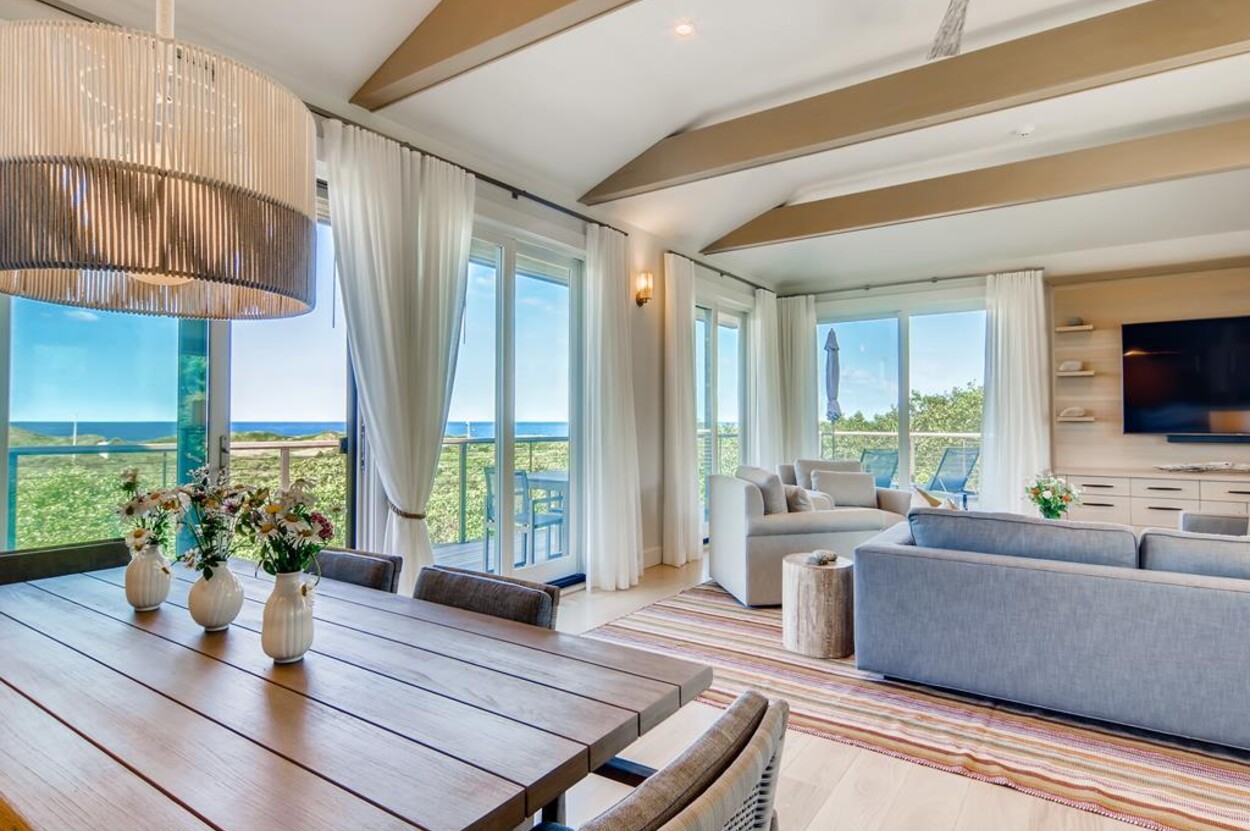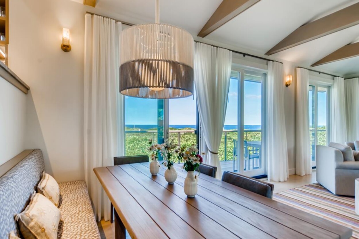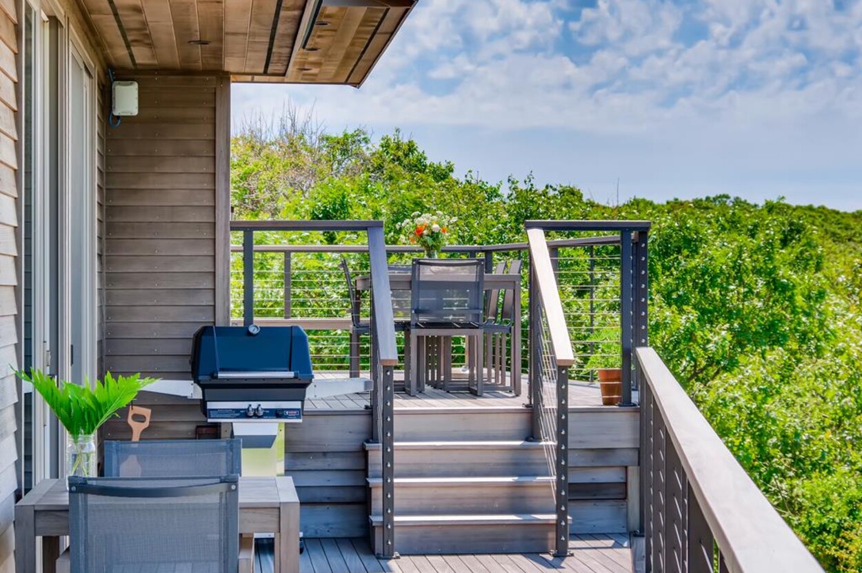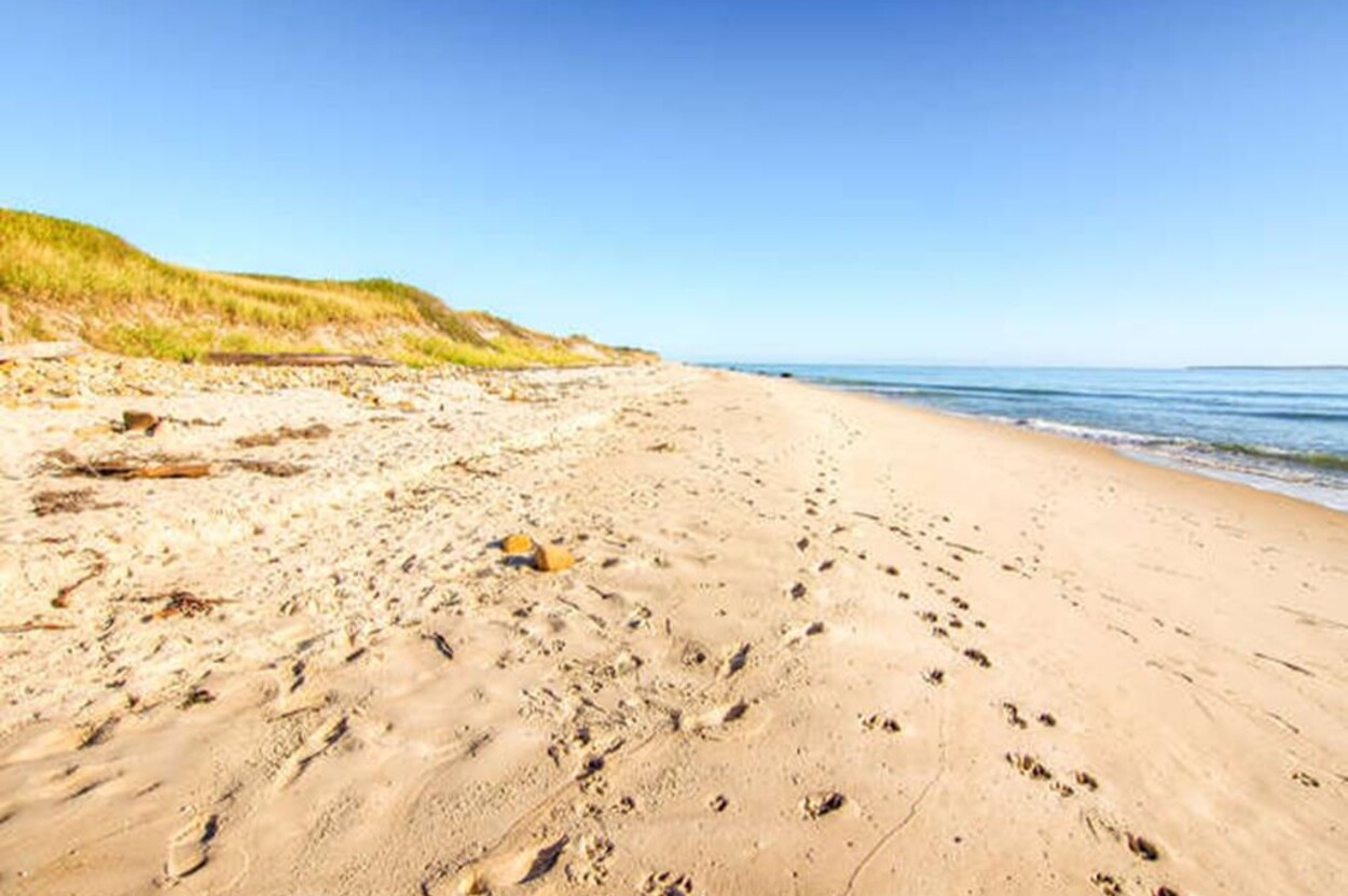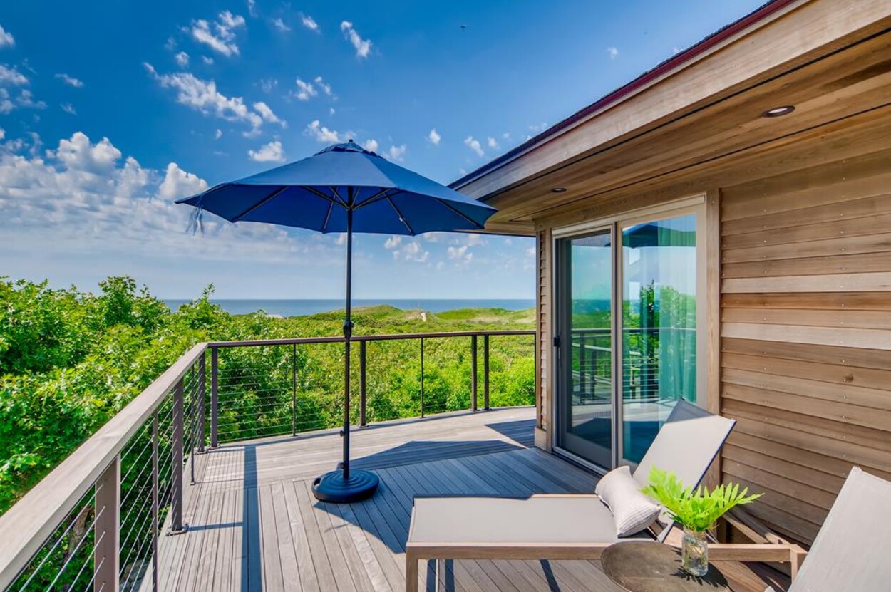 Set in the dreamy dunes of Moshup Trail with panoramic water views, this is a contemporary beach house featuring a greatroom which is open to the kitchen at the center of the house plus four bedroom suites, a separate family/media room, wrap around decks and beautiful finishes throughout. This house comes with access to a wonderful private South shore beach just across the street and over the sandy path - approximately 5-minute walk - in addition to all the other Aquinnah beaches and pond access points. This is one of the most tranquil locations on the island, with stunning views, privacy, and lovely indoor and outdoor living spaces. Please note total renovation of interior and exterior completed Dec 2019. House offers electric vehicle charging station in driveway.