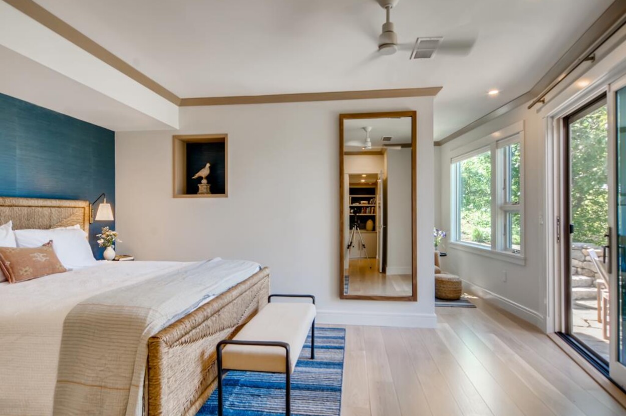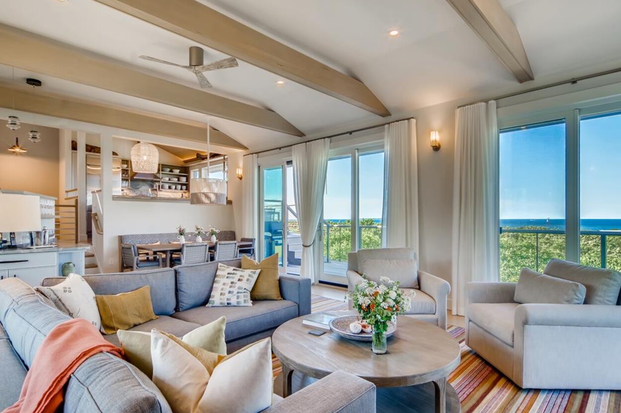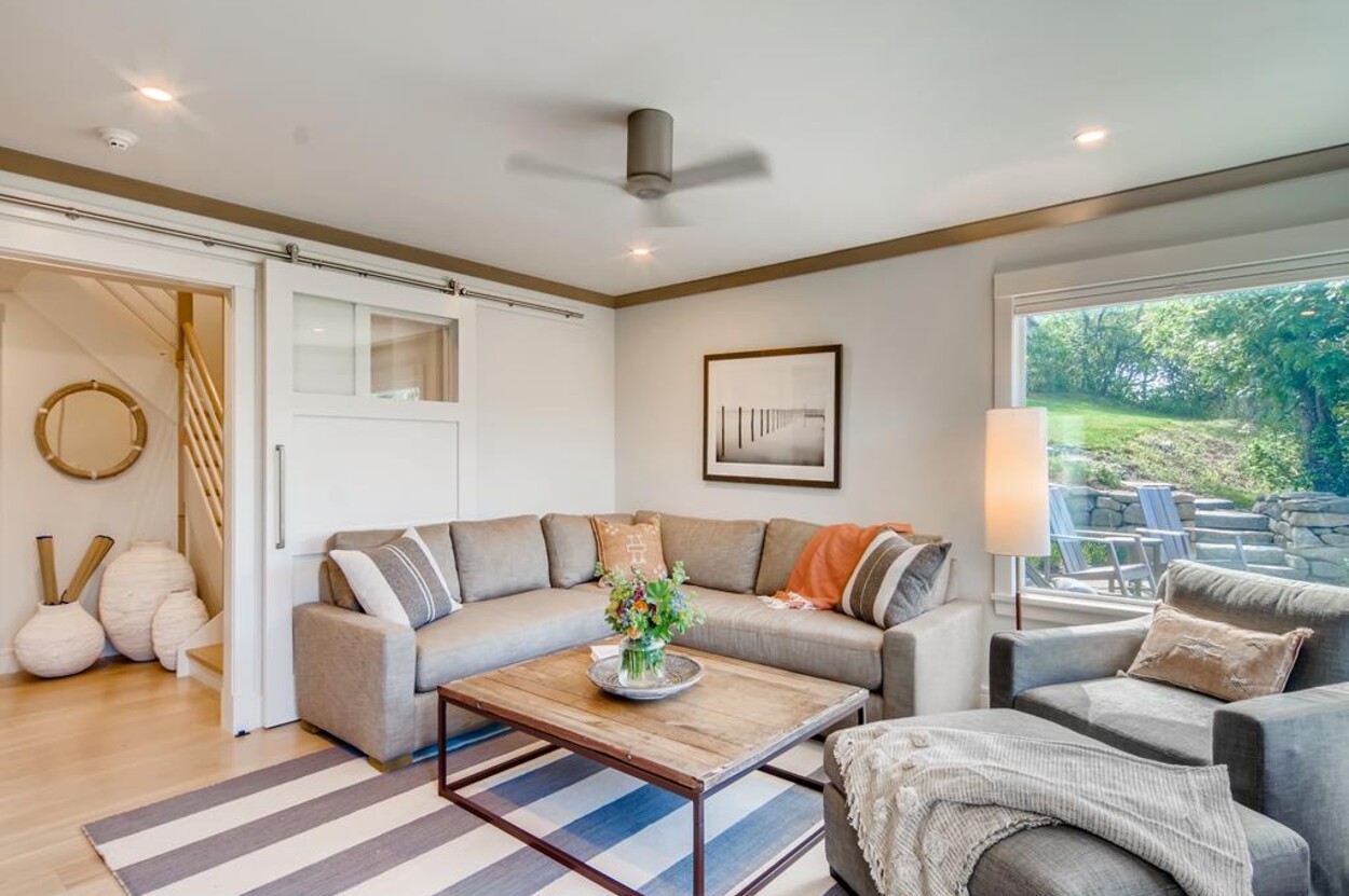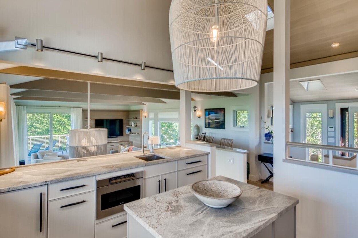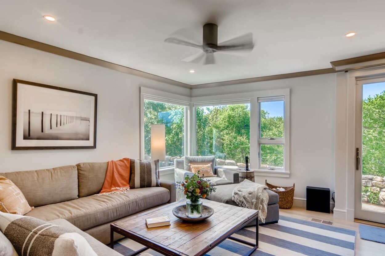 Set in the dreamy dunes of Moshup Trail with panoramic water views, this is a contemporary beach house featuring a greatroom which is open to the kitchen at the center of the house plus four bedroom suites, a separate family/media room, wrap around decks and beautiful finishes throughout. This house comes with access to a wonderful private South shore beach just across the street and over the sandy path - approximately 5-minute walk - in addition to all the other Aquinnah beaches and pond access points. This is one of the most tranquil locations on the island, with stunning views, privacy, and lovely indoor and outdoor living spaces. Please note total renovation of interior and exterior completed Dec 2019. House offers electric vehicle charging station in driveway.